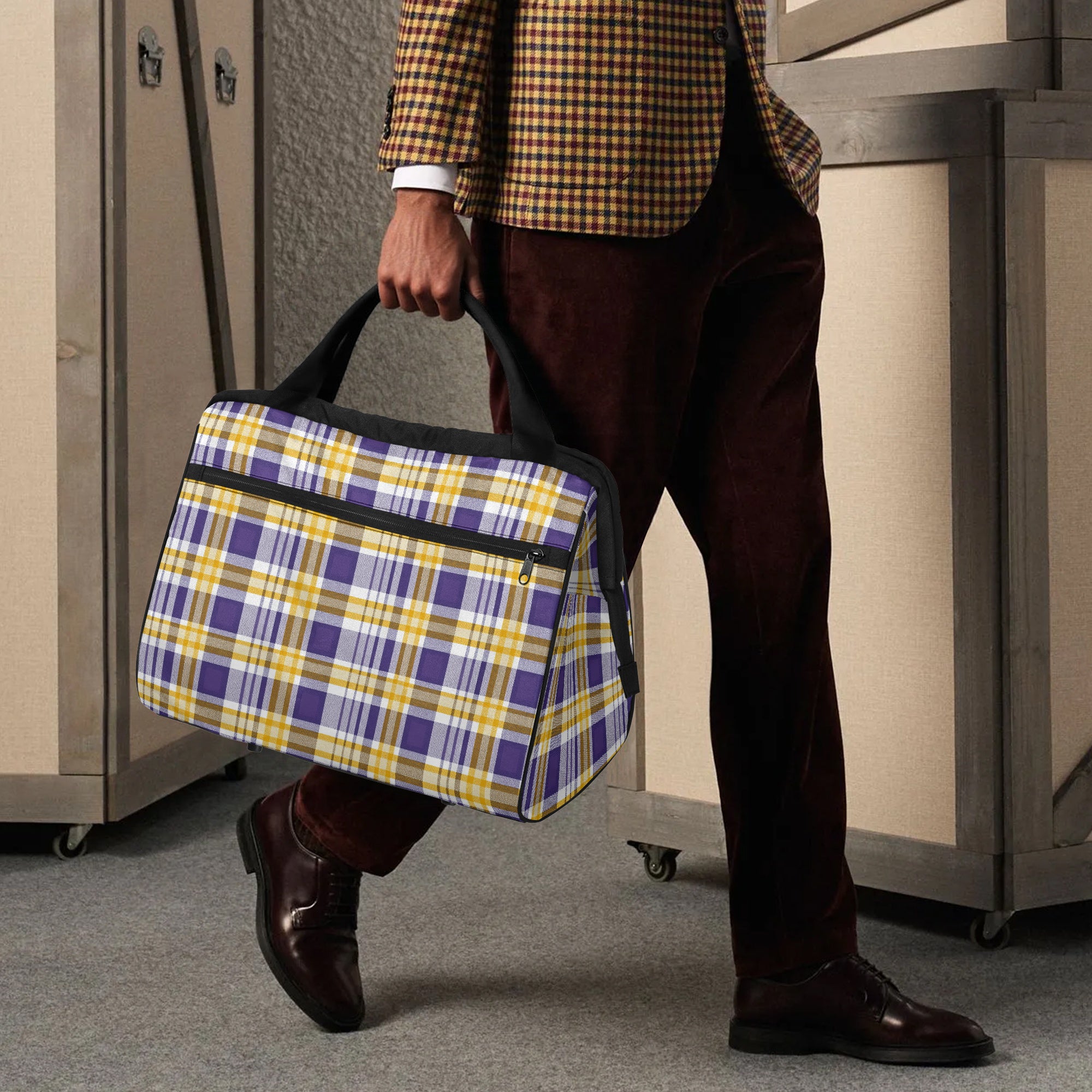 Louisiana Plaid Canvas Duffle Travel Bag – Durable & Spacious for Short Trips