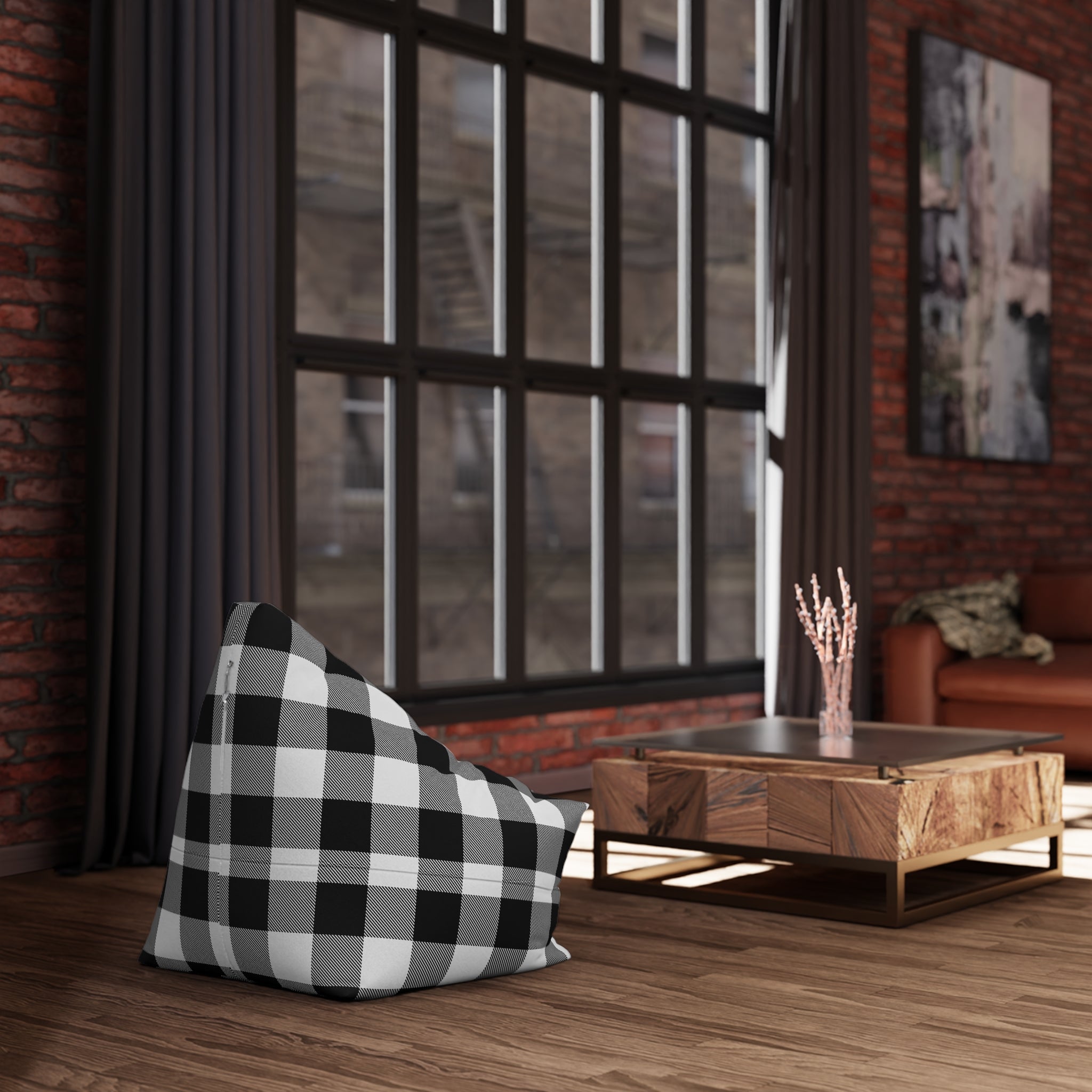 Black and White Buffalo Plaid Bean Bag Chair Cover
