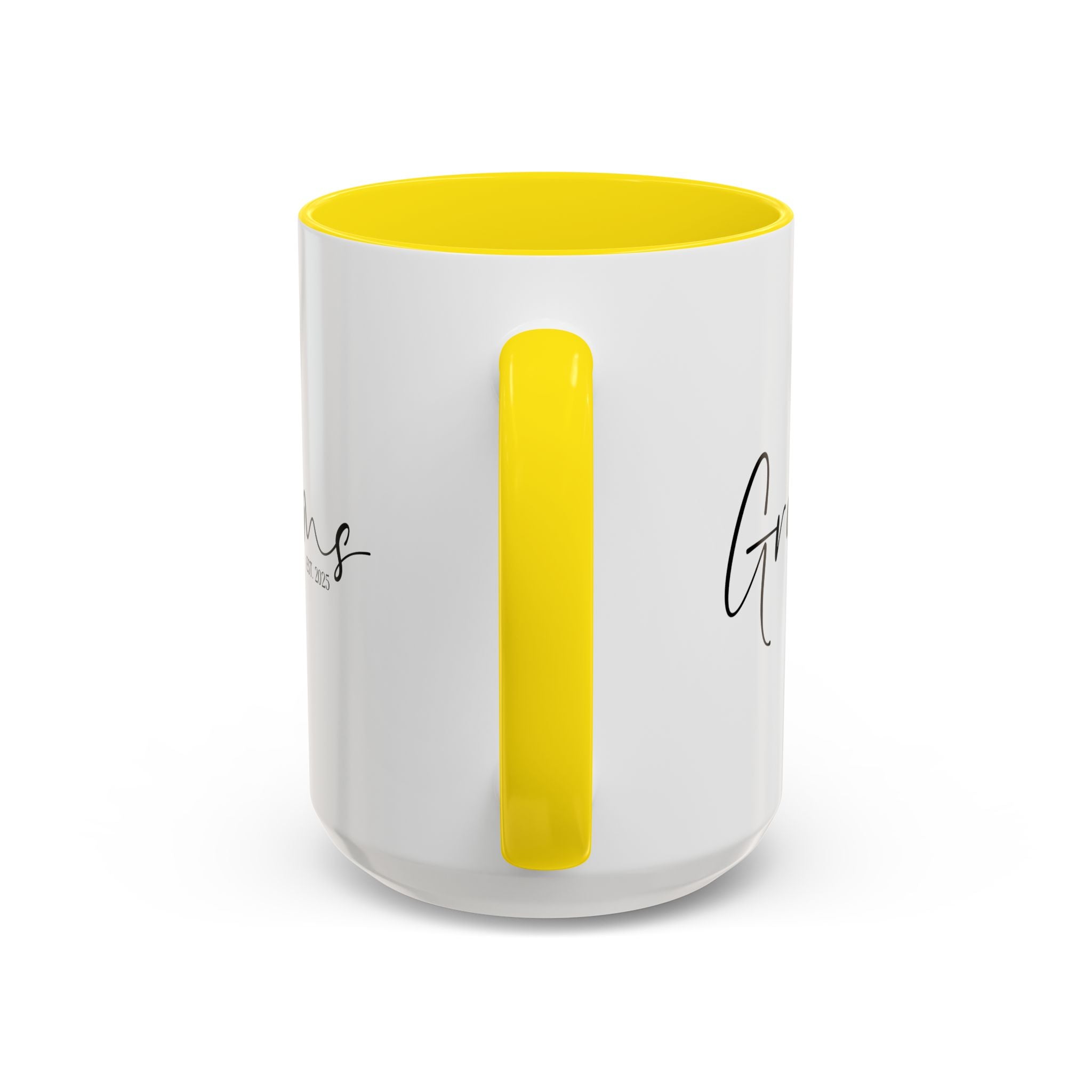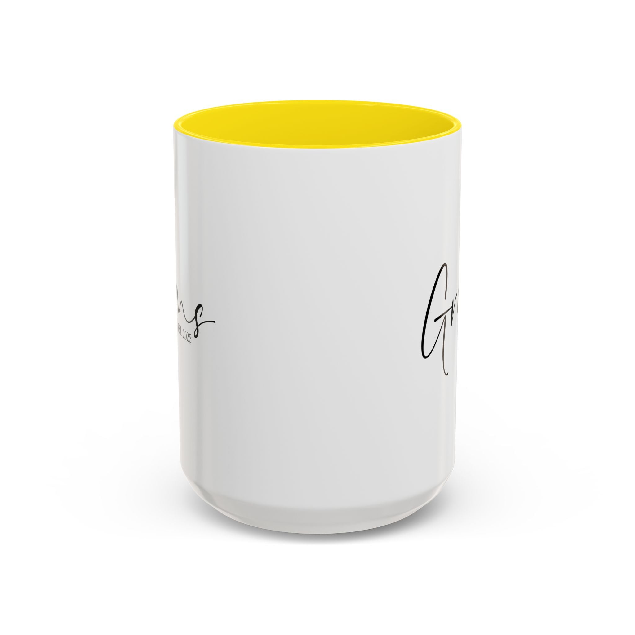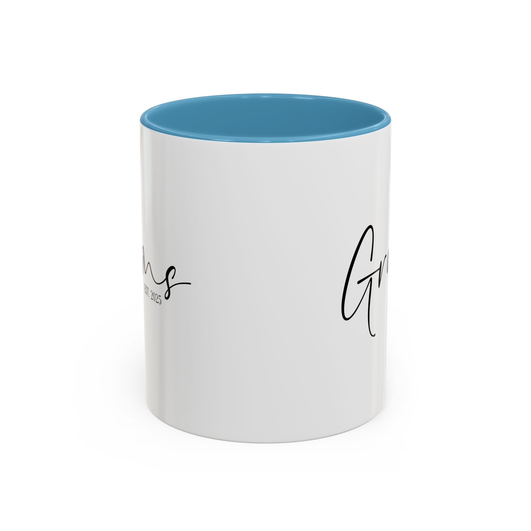 A vibrant and stylish Grams Est 2025 Coffee Mug design on both sides, perfect for enjoying your favorite hot beverages. This mug is microwave and dishwasher safe, making it convenient for everyday use. With eye-catching color contrast and a glossy finish, this mug is a great gift for coffee or tea lovers. Relevant for birthdays, holidays, or any special occasion.