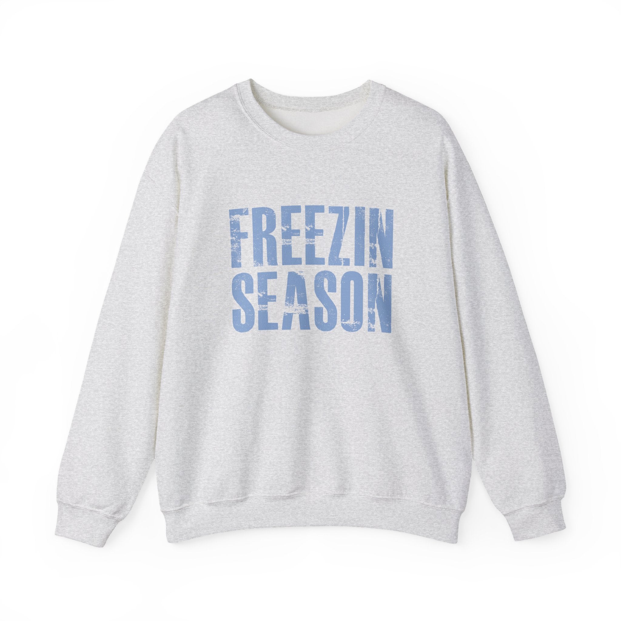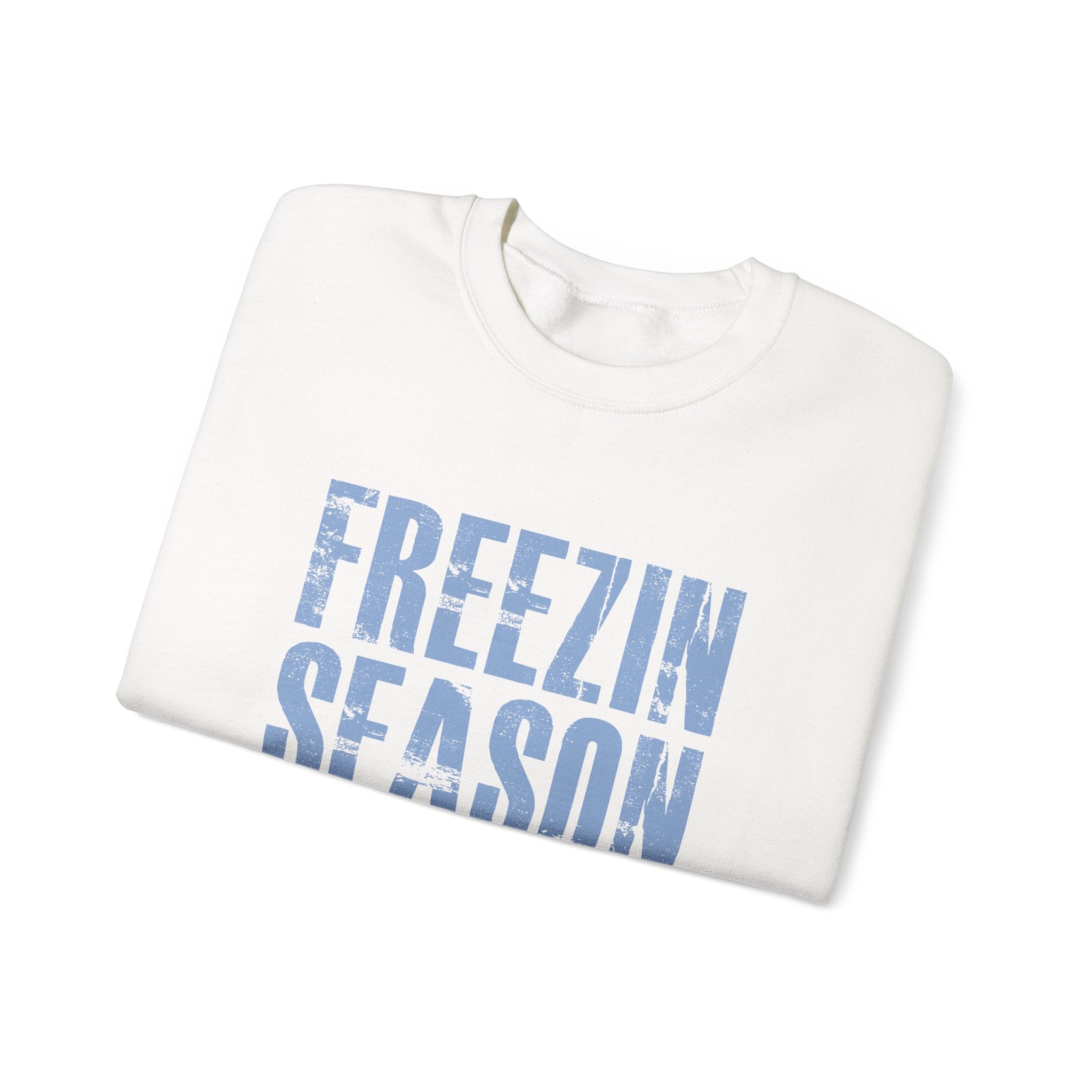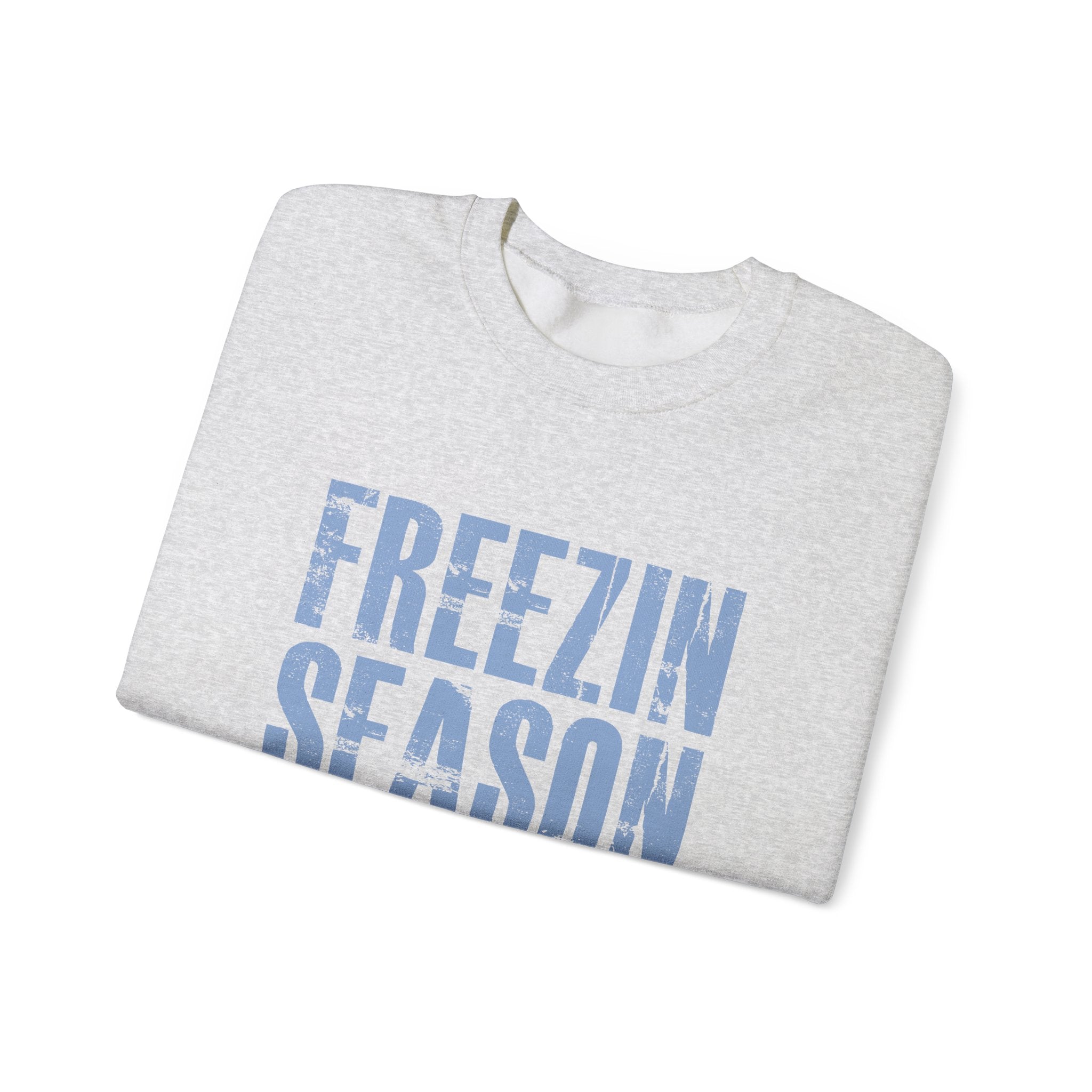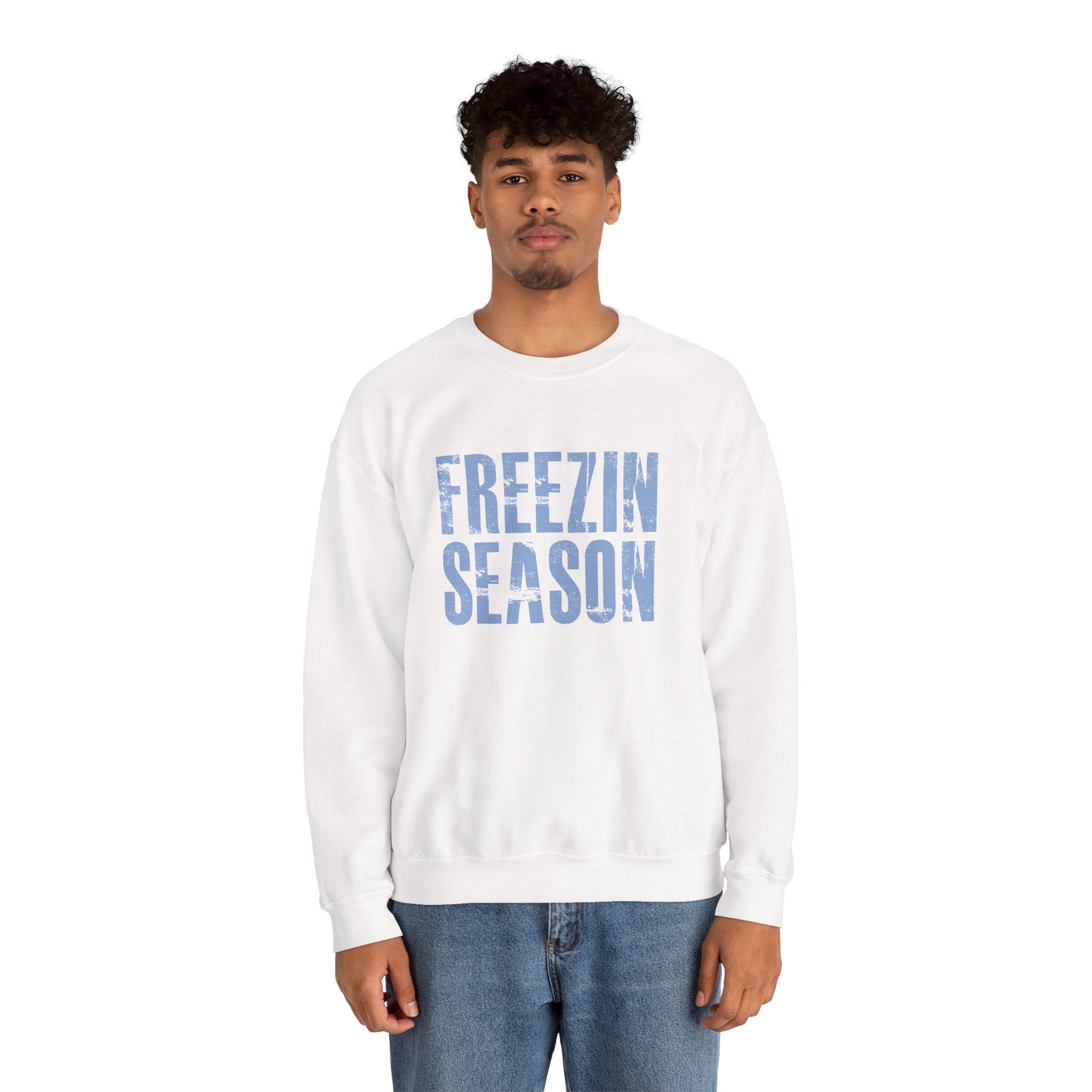 Introducing a cozy Unisex Heavy Blend™ Crewneck Sweatshirt that perfectly captures the essence of winter vibes! This sweatshirt features a striking design with the phrase 'FREEZIN SEASON' prominently displayed, making a bold statement during the colder months. Ideal for lounging at home, running errands, or gathering with friends around a warm fire, this versatile piece fits seamlessly into any casual wardrobe. Whether you're shopping for yourself or seeking the perfect gift, this sweatshirt is tailored for anyone who embraces the chill of winter. Perfect for cozy holiday gatherings, festive celebrations, or simply enjoying the magic of the season, let this sweatshirt be your go-to cozy companion during the frostier months! Gildan 1800