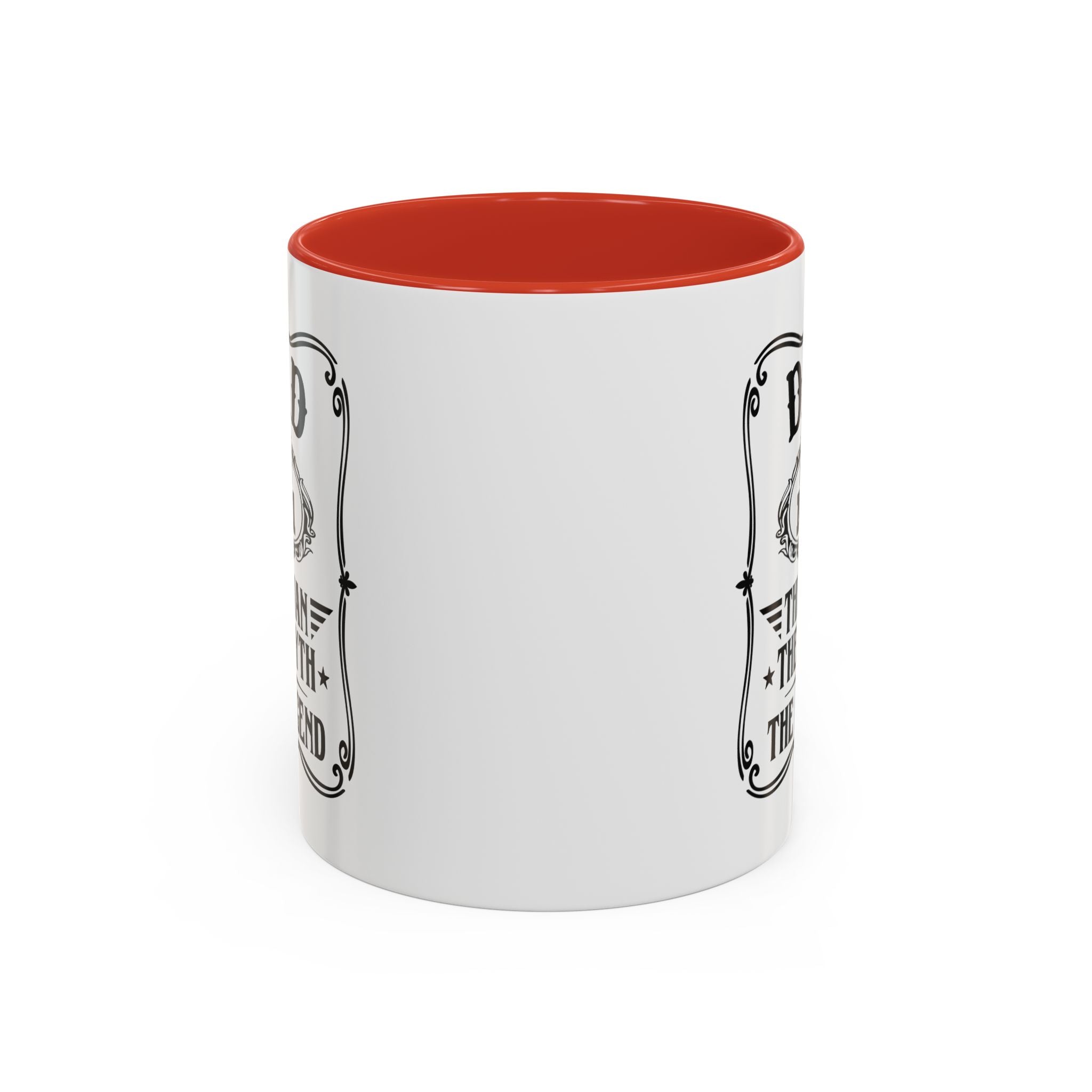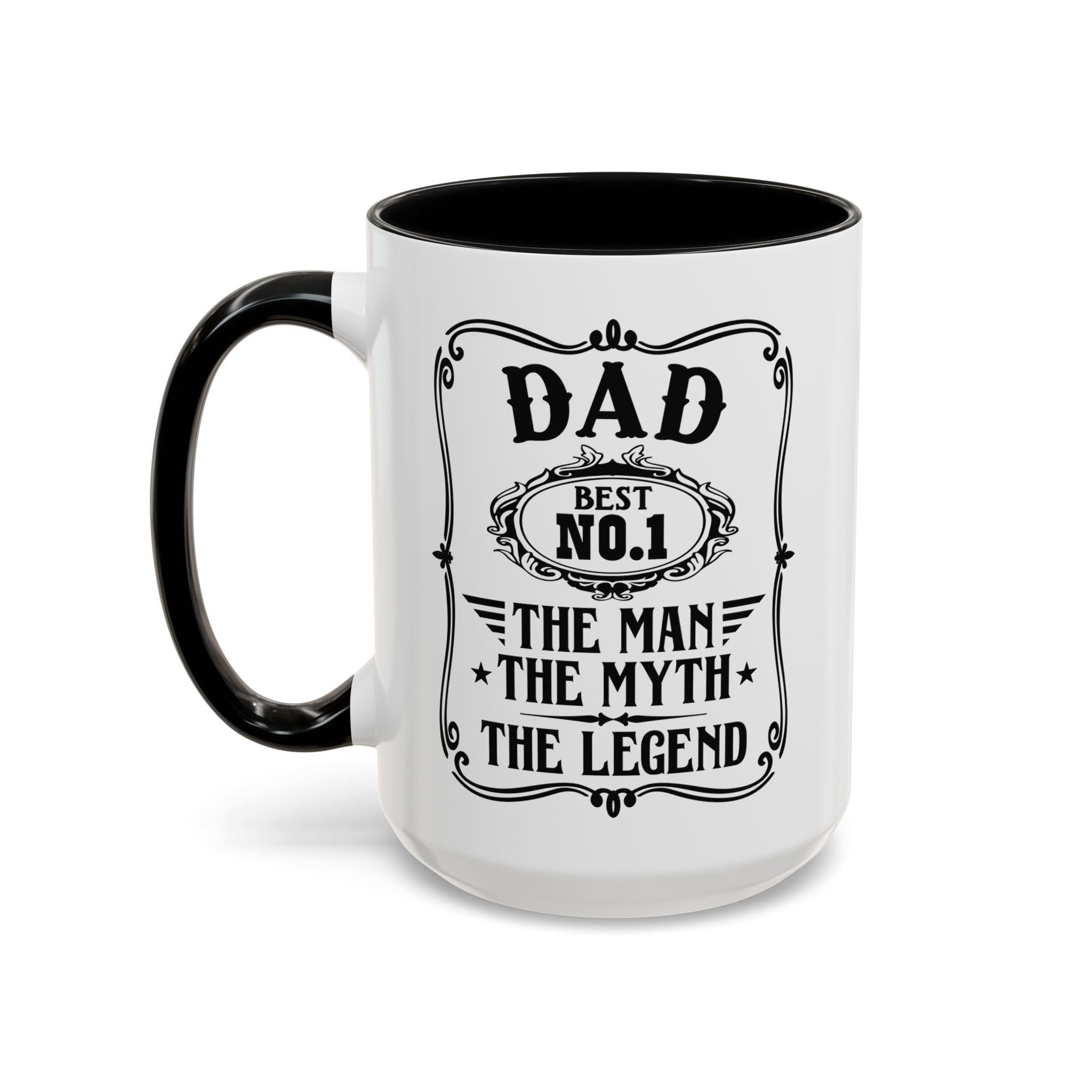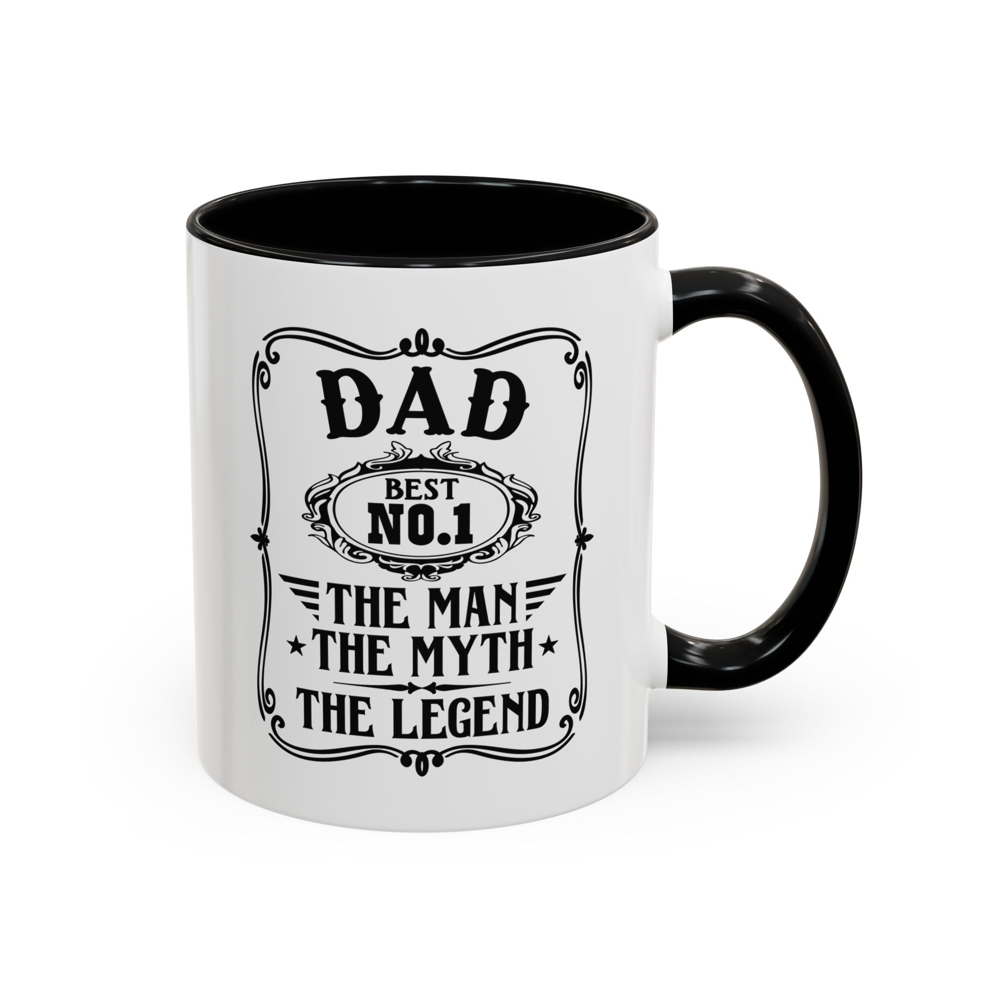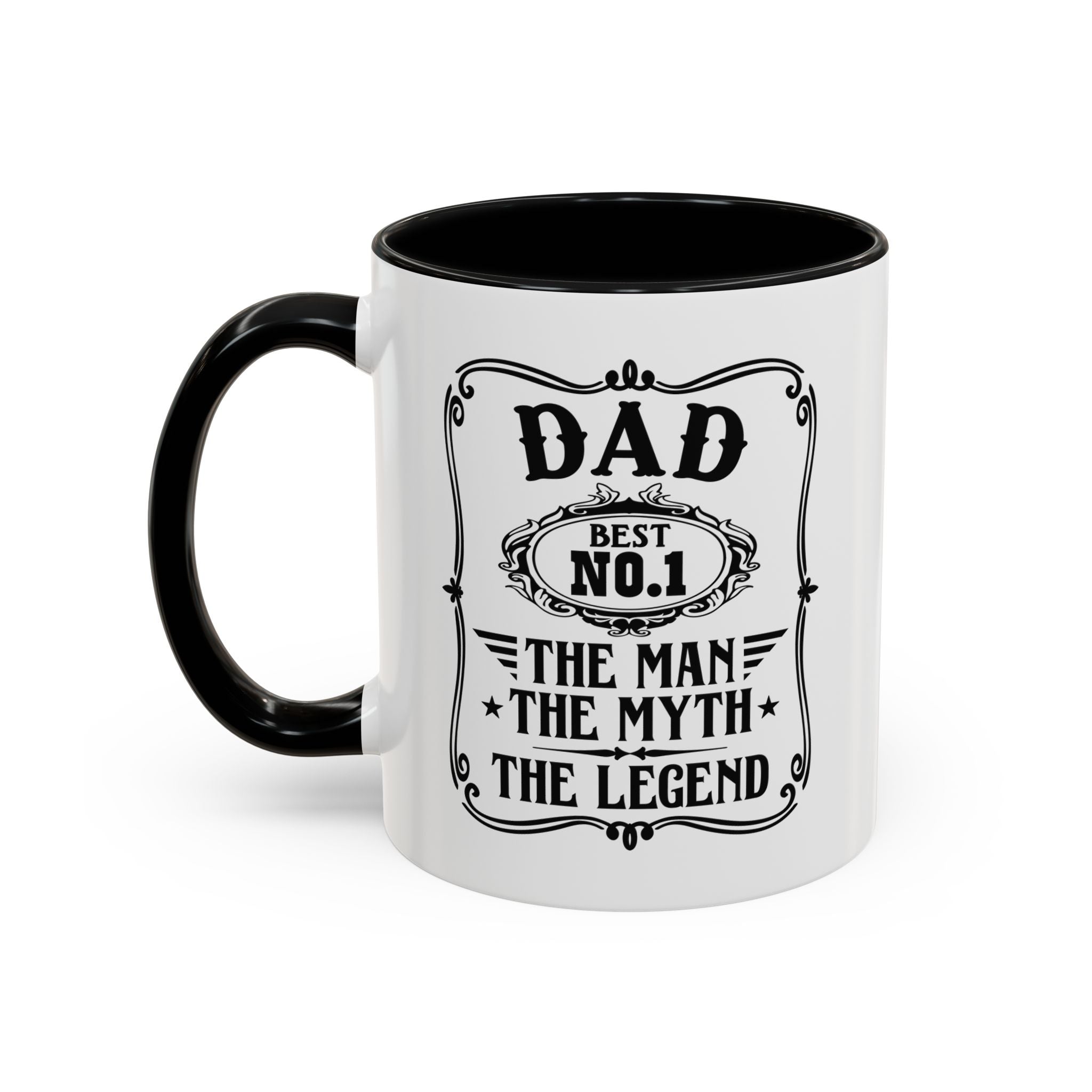 This Dad Mug is a perfect gift for Father's Day or any occasion to celebrate the special man in your life. With the funny quote 'Dad The Man The Myth The Legend', this Accent Coffee Mug brings a cheerful vibe to your morning routine. The vibrant colors and eye-catching color contrast make it a standout piece in any kitchen. Relevant to fathers, dads, and anyone looking for a humorous gift for a loved one.