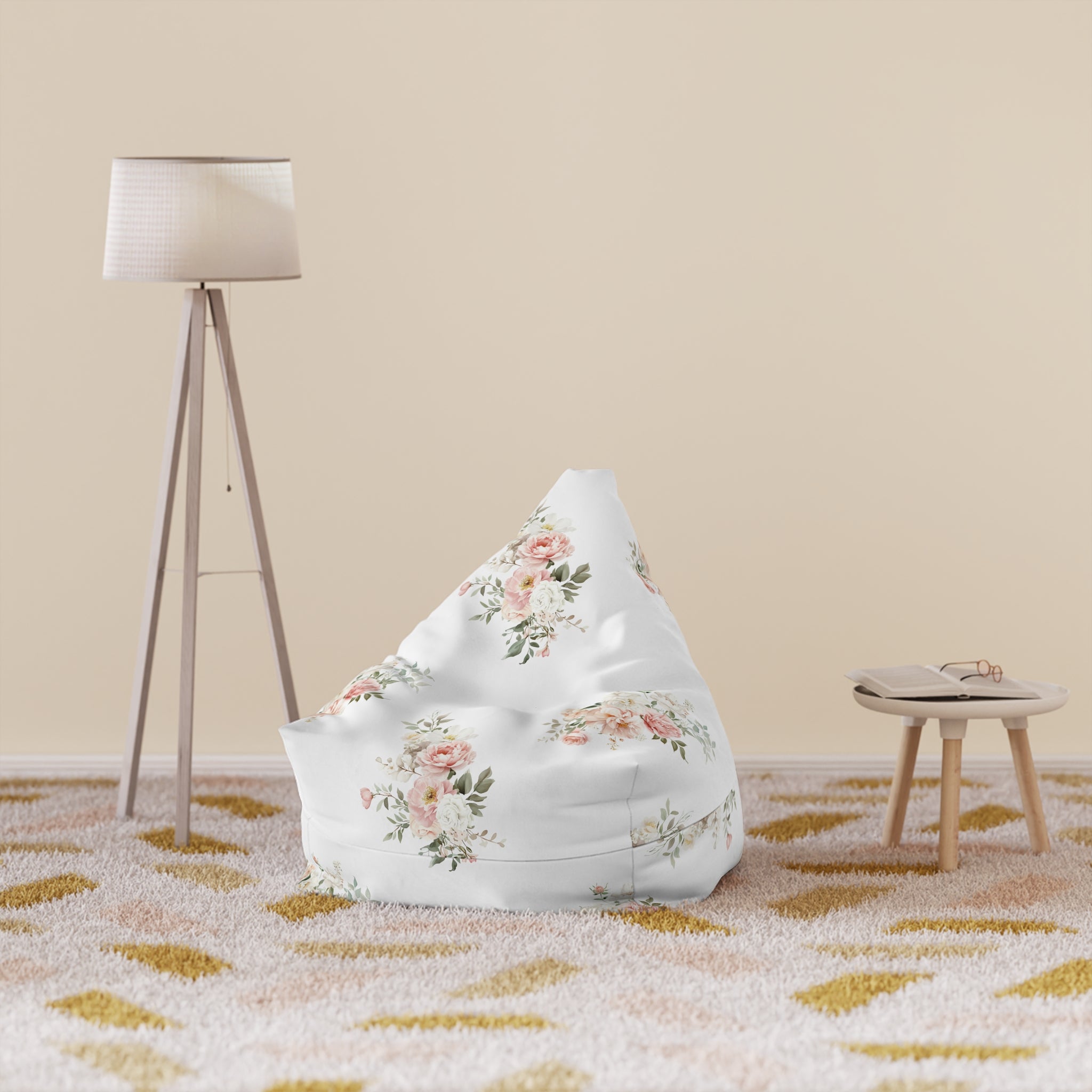 Elegant Coral Floral Bean Bag Chair Cover