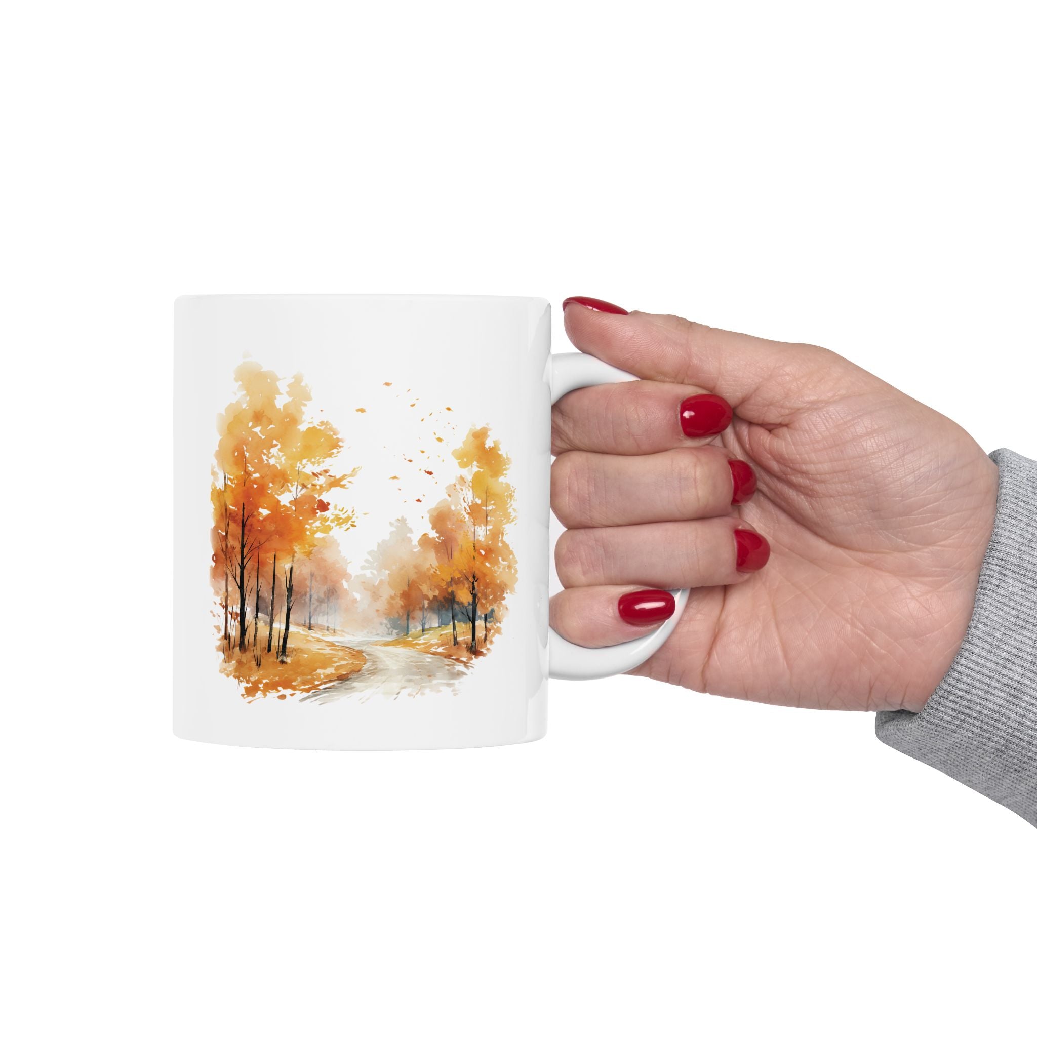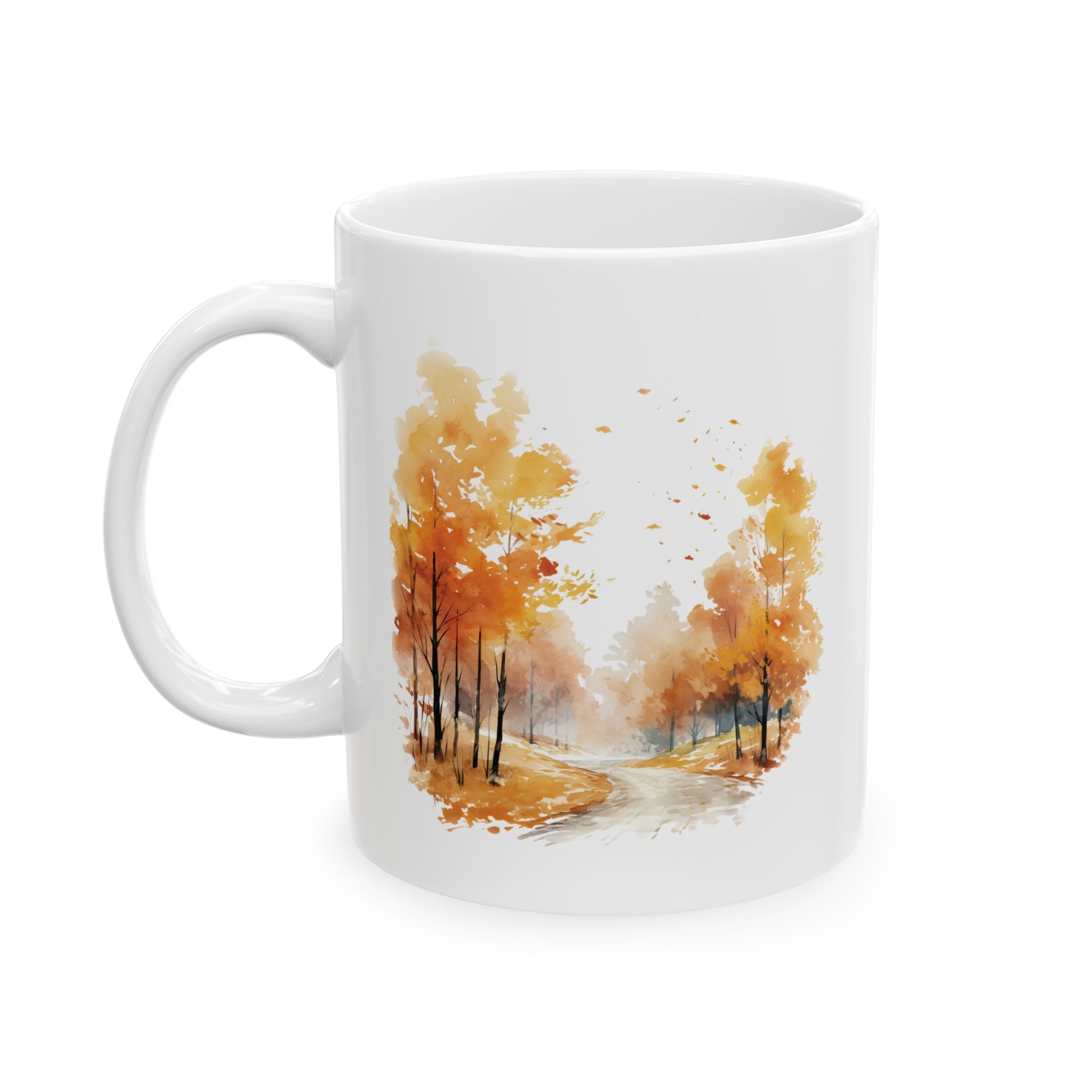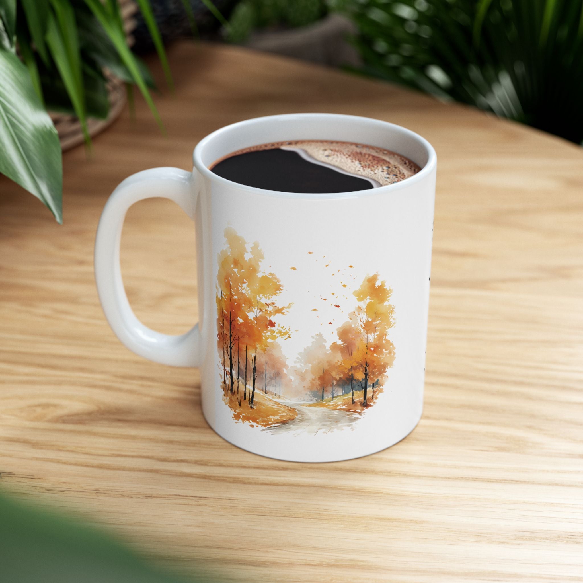 Embrace the cozy vibes of autumn with this stunning ceramic mug. Perfect for sipping your favorite hot beverages, this mug features a delightful design that brings the beauty of fall to your daily routine. With its vibrant colors and glossy finish, this mug is not just functional but also a lovely decorative piece for your kitchen. Ideal for coffee lovers, tea enthusiasts, or anyone wanting to enjoy a moment of warmth. This mug serves as a thoughtful gift for family and friends, especially during fall festivities, Thanksgiving gatherings, or just as a seasonal treat for yourself. It’s perfect for cozy evenings, crisp mornings, or winter holidays where warmth and comfort are essential.
