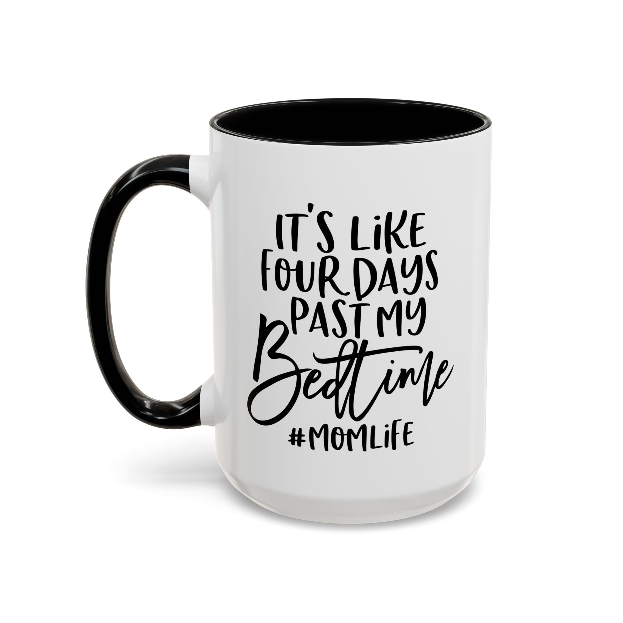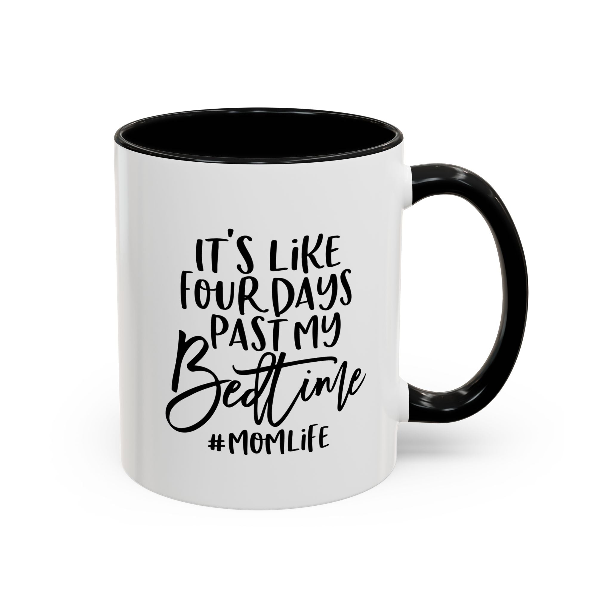 This funny accent coffee mug is the perfect Mother's Day gift for moms. With the quote 'It's like four days past my bedtime #Momlife', this mug captures the chaotic and humorous side of motherhood. Suitable for daily use and sure to bring a smile to any mom's face, this mug is a great addition to any kitchen. Ideal for Mother's Day, birthdays, or just because gifts for moms.