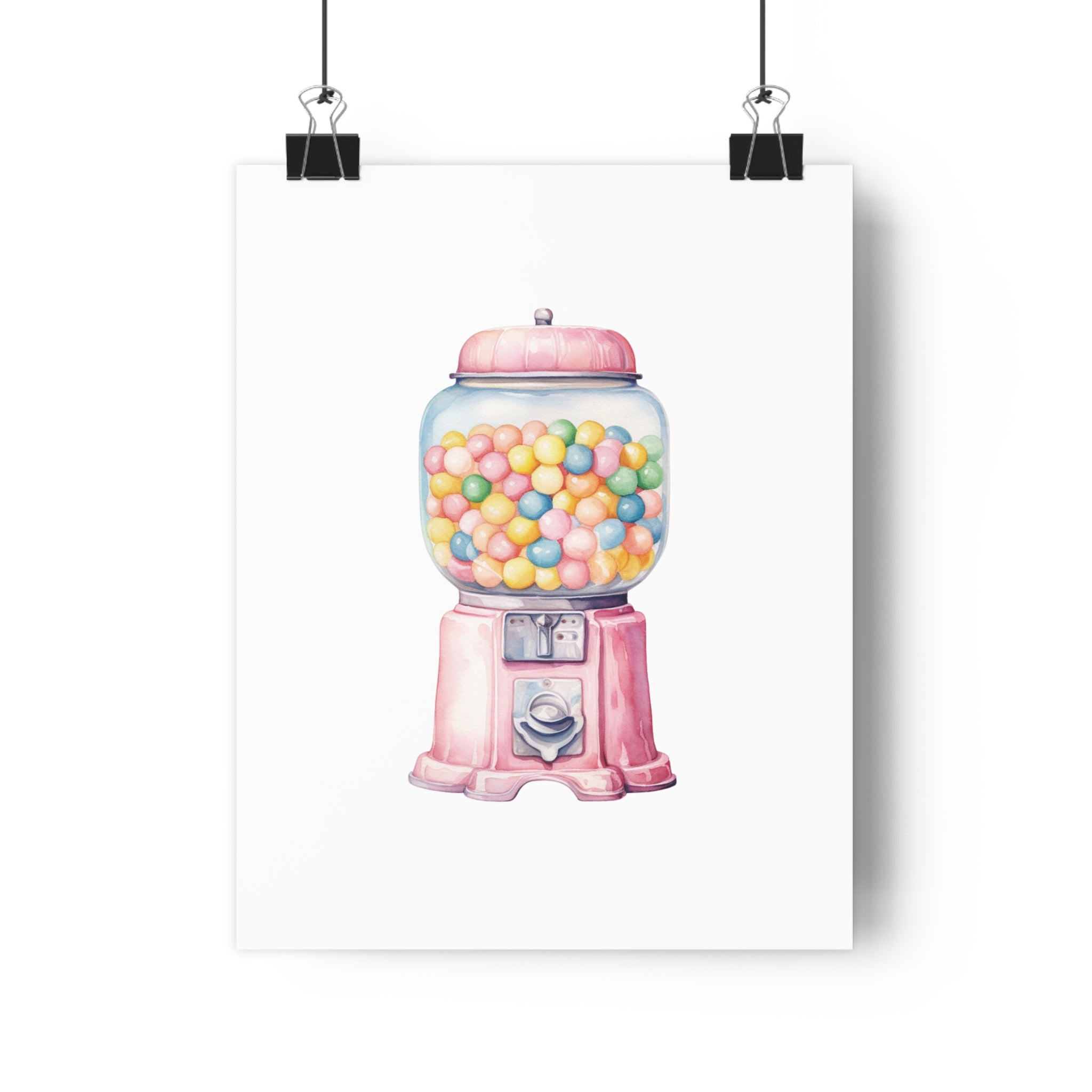 Giclée Art Print Watercolor Candy Land Gum Ball Machine 1