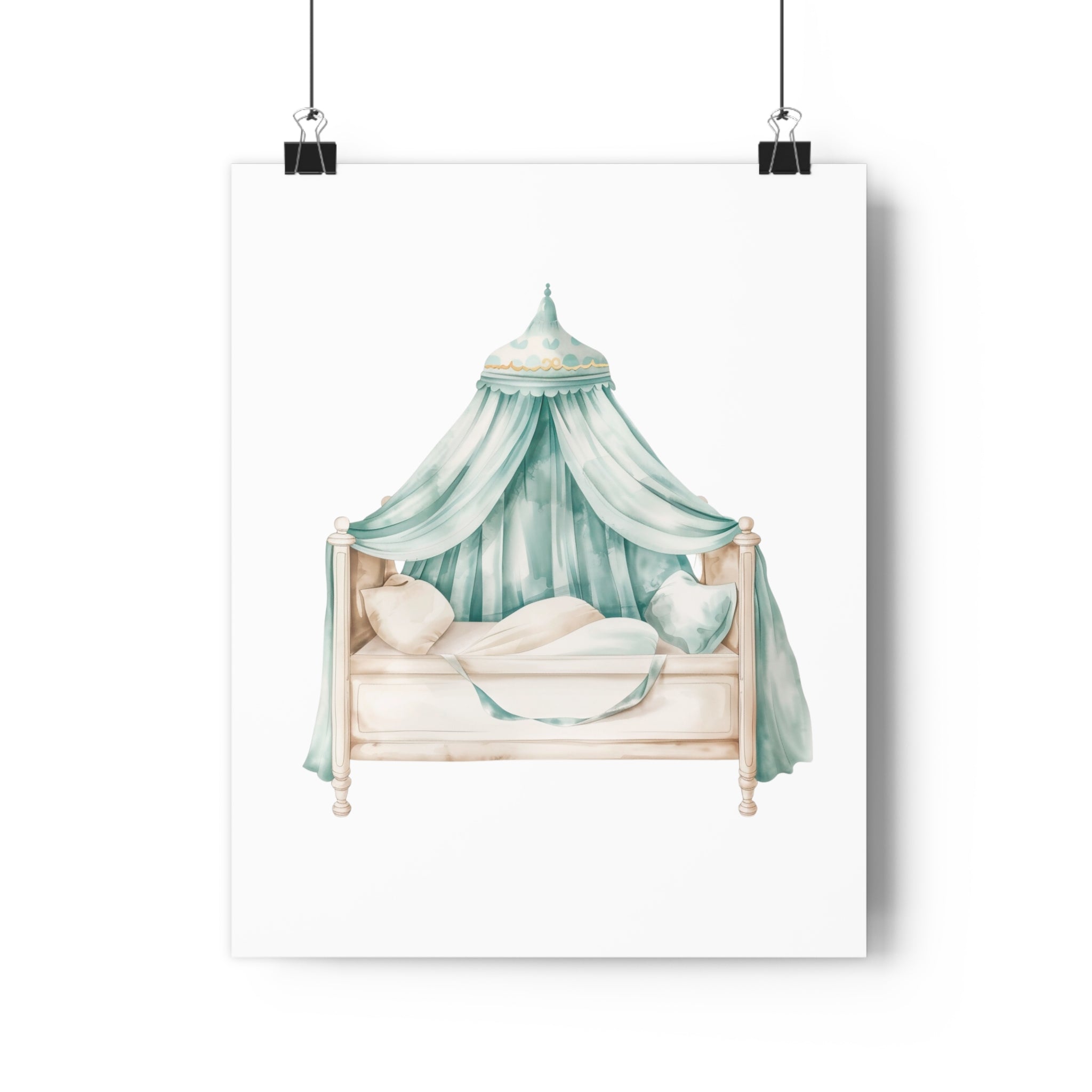 Giclée Art Print Watercolor Teal Princess Canopy Bed
