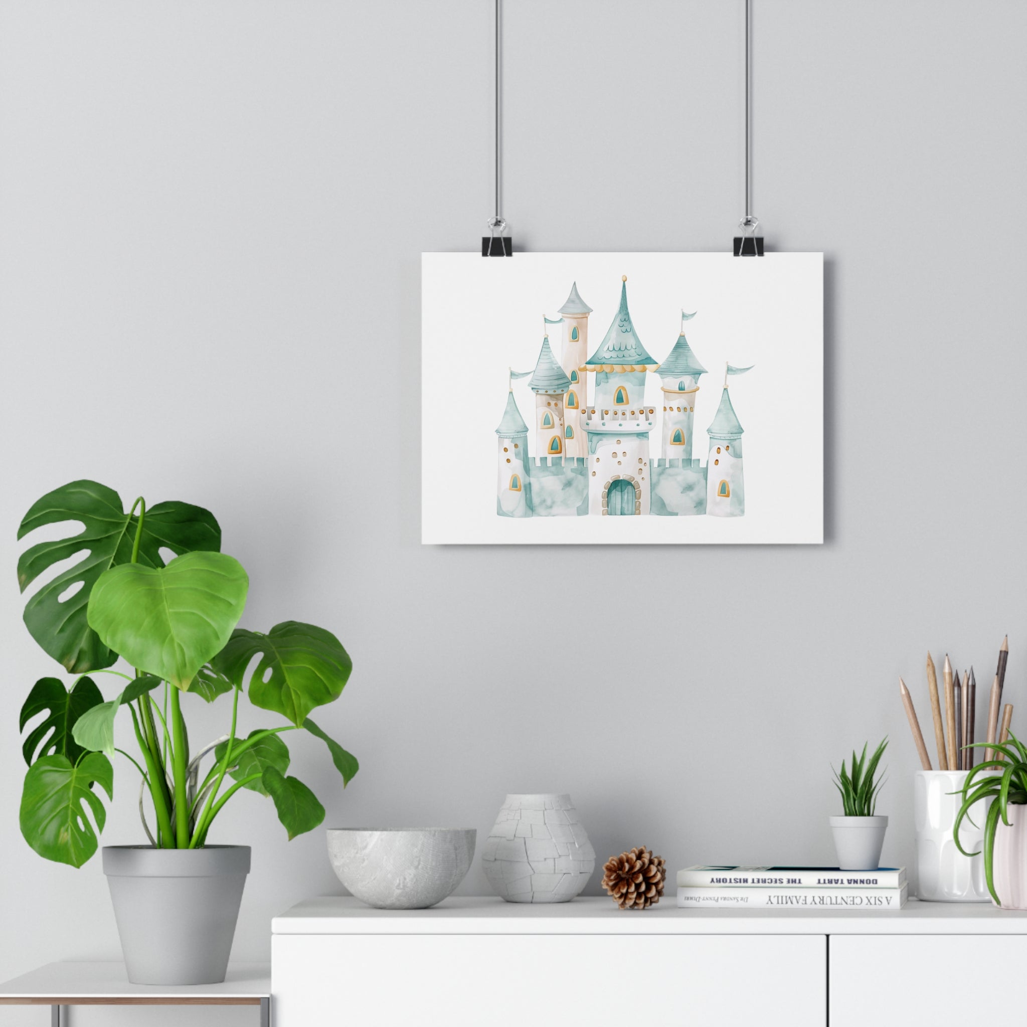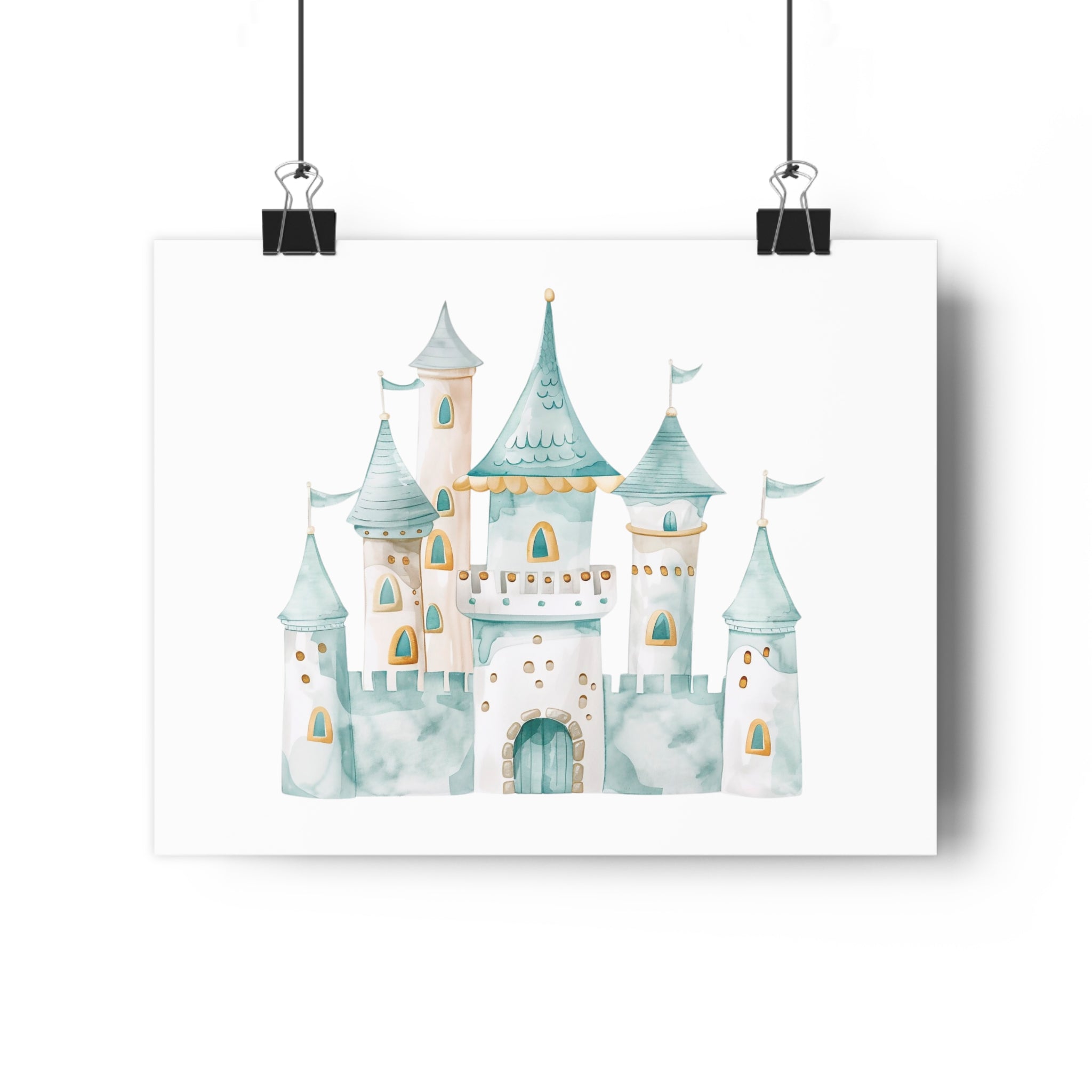 Giclée Art Print Watercolor Teal Princess Castle 1