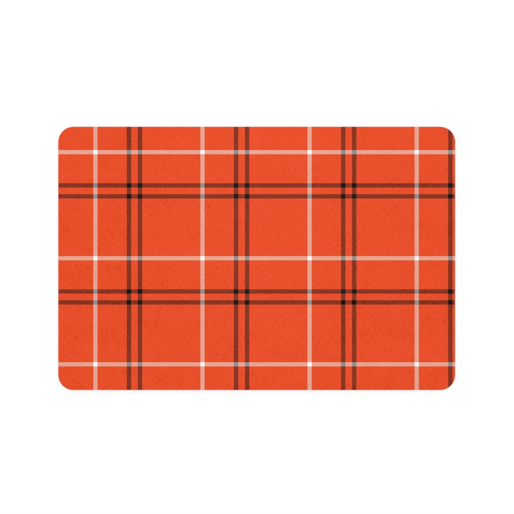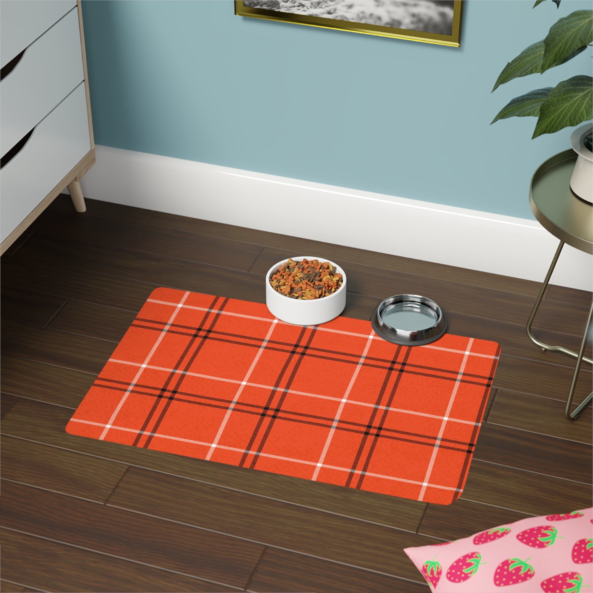 Stylish and modern pet food mat with a Halloween Tartan Plaid design, perfect for dog and cat owners looking to add a touch of style to their kitchen decor. Easy to clean and durable, this pet mat adds a fun and festive vibe to mealtime for your furry friends. Ideal for pet owners celebrating Halloween or looking to add a pop of color to their home.
