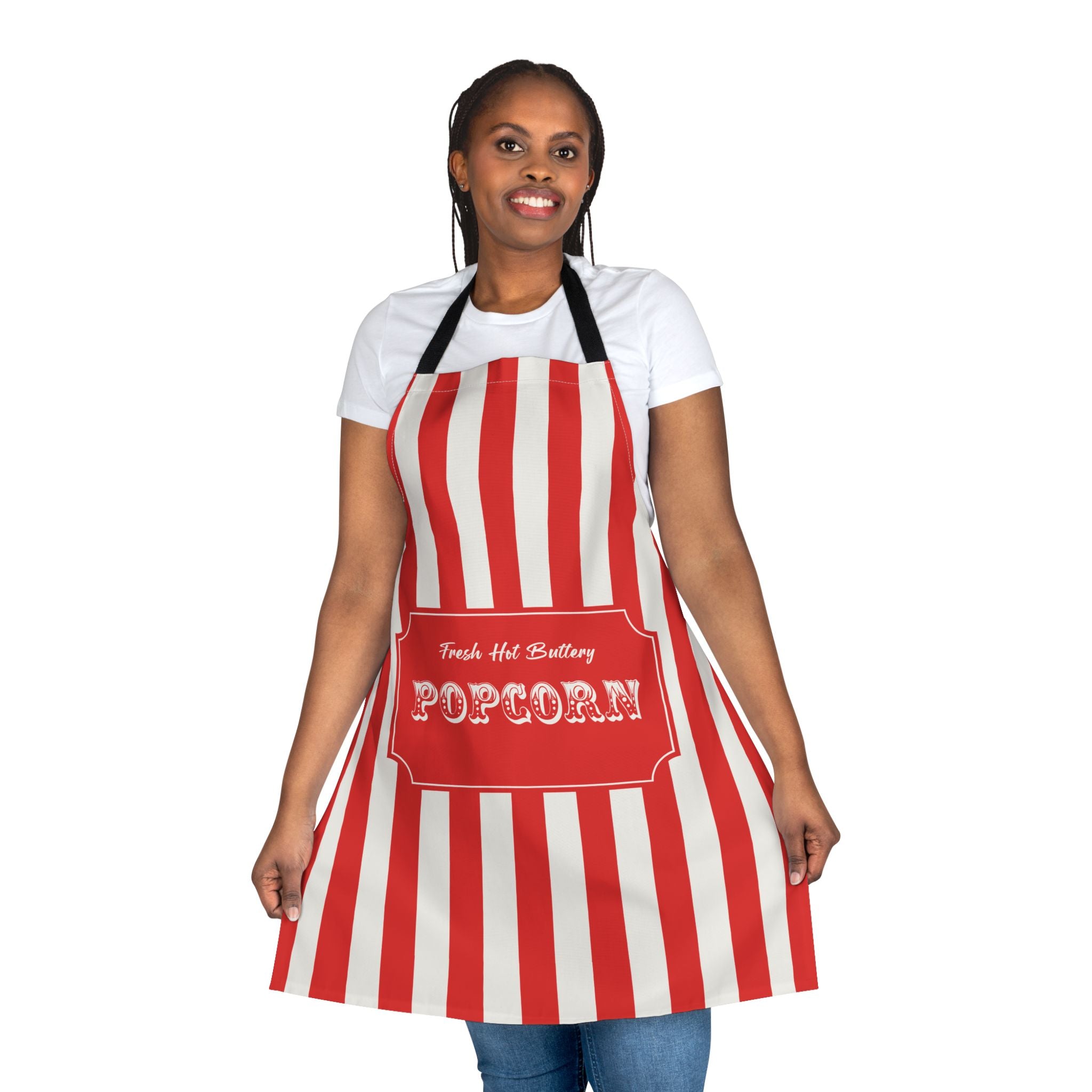 Introducing a vibrant and playful apron that transforms your cooking experience into a fun adventure! Perfect for kitchen enthusiasts, this apron brings a lively atmosphere with its eye-catching red and white striped design, complete with a whimsical popcorn graphic. Ideal for anyone who enjoys cooking or baking, this apron is not just practical but also adds a splash of joy to any culinary task.