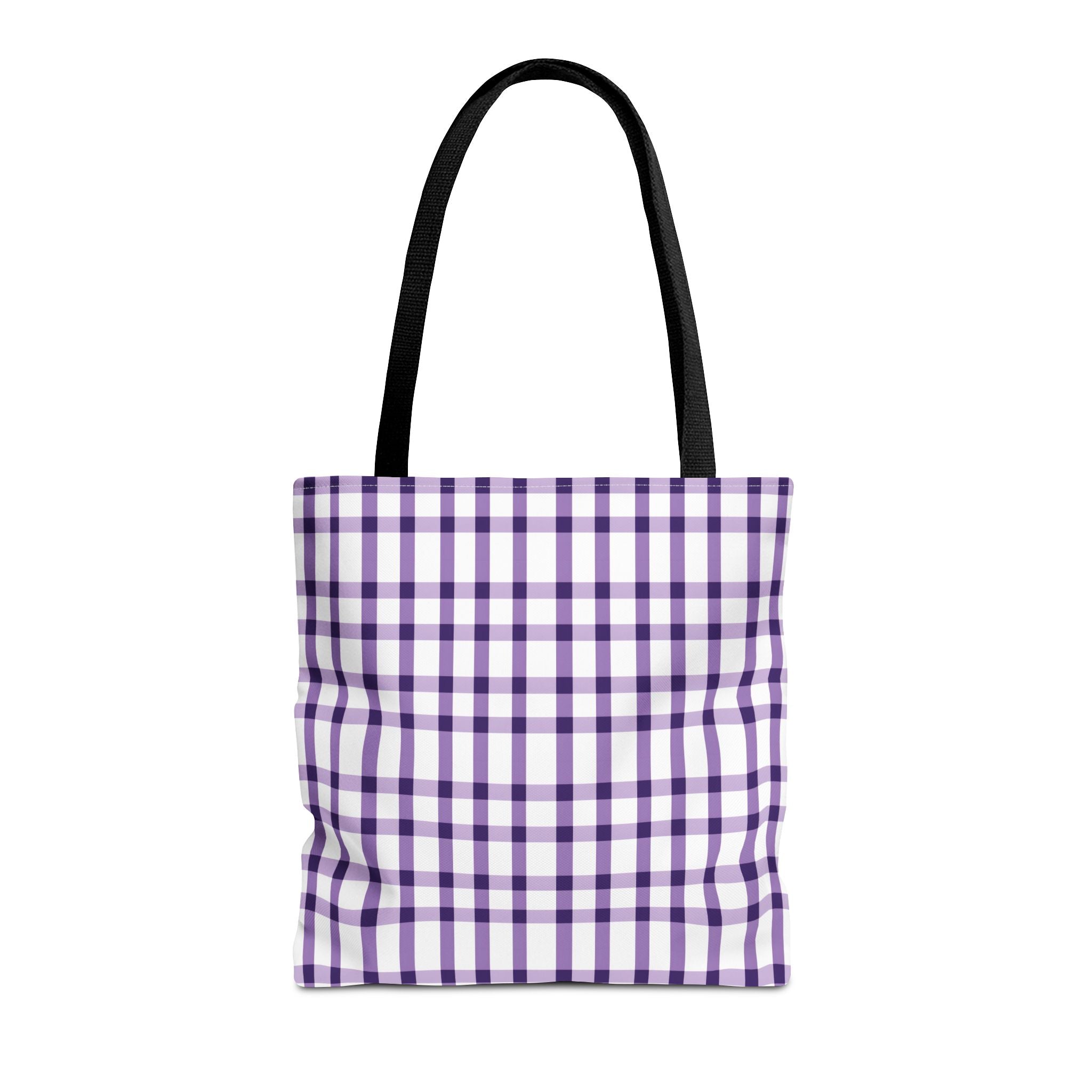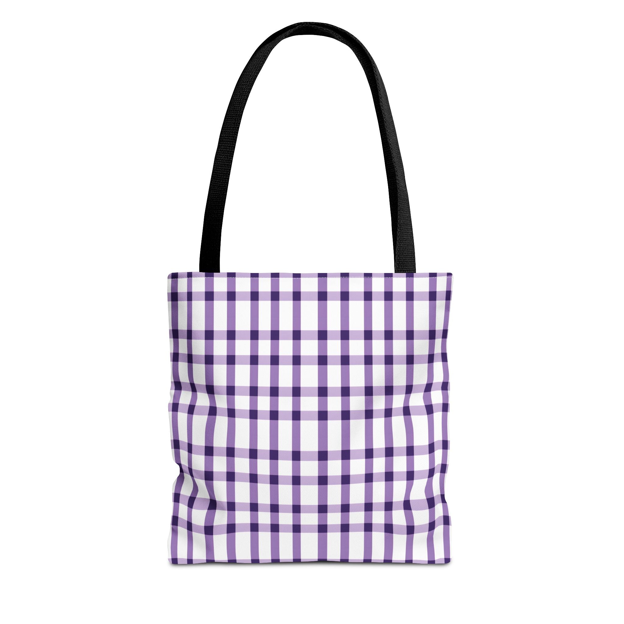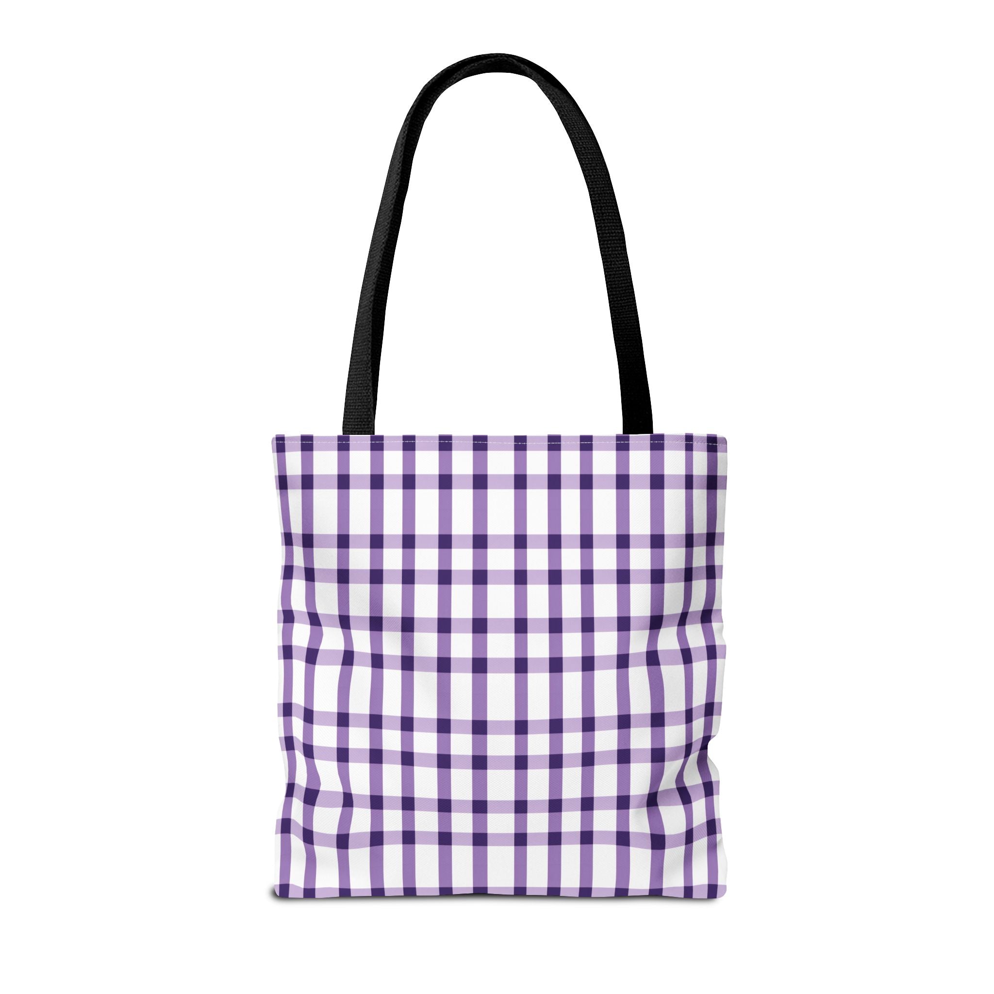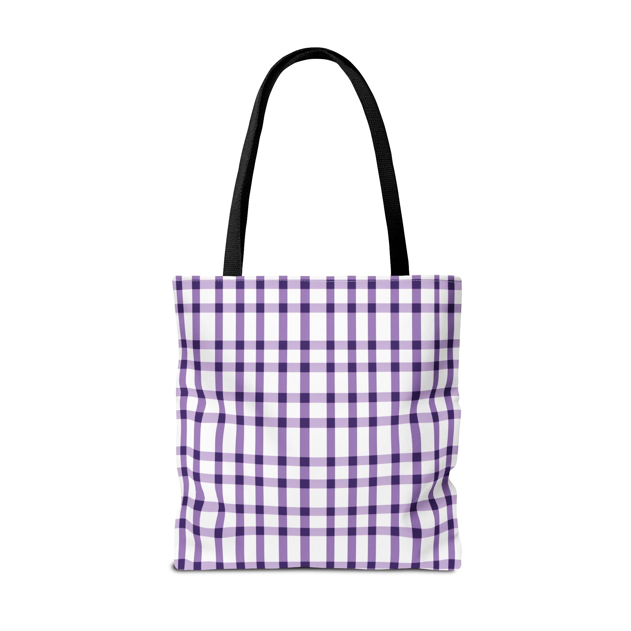 This purple plaid tote bag is perfect for those who want a durable and stylish bag for everyday use. The seamless thread color and reinforced stitching on handles add to its strength and longevity. The boxed corners create extra room for your items. With 3 size choices, there's a perfect tote bag for everyone.