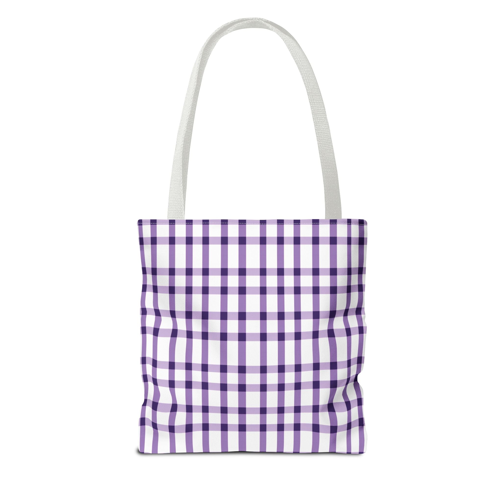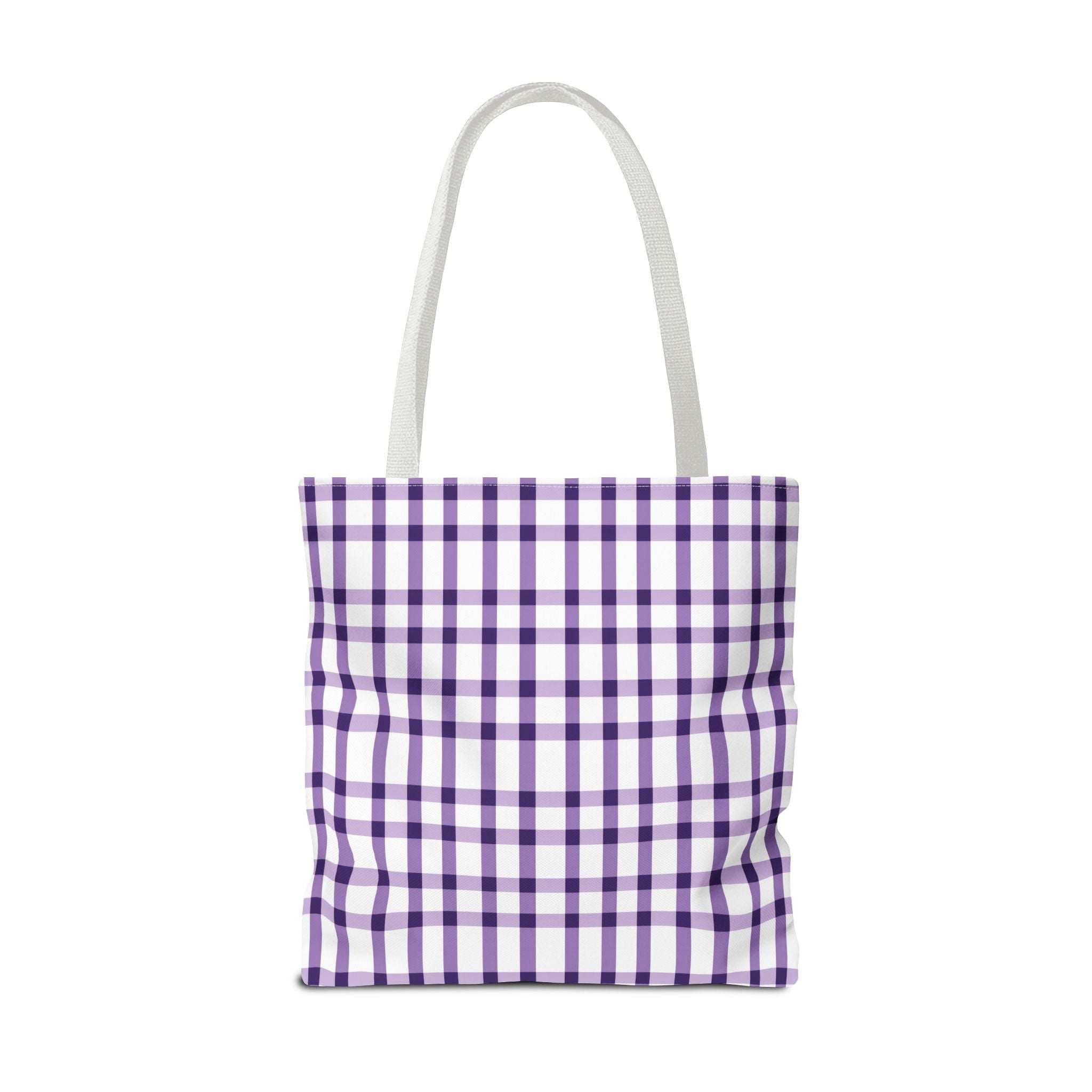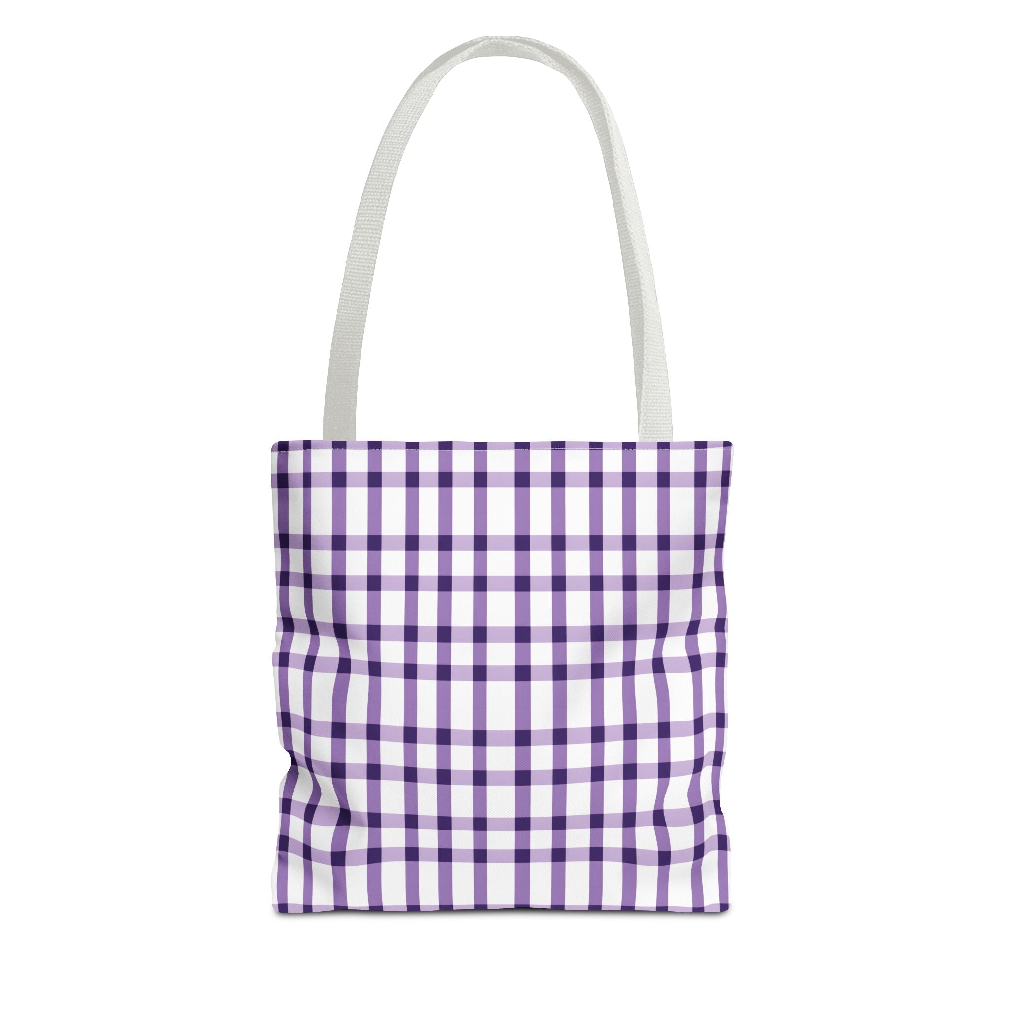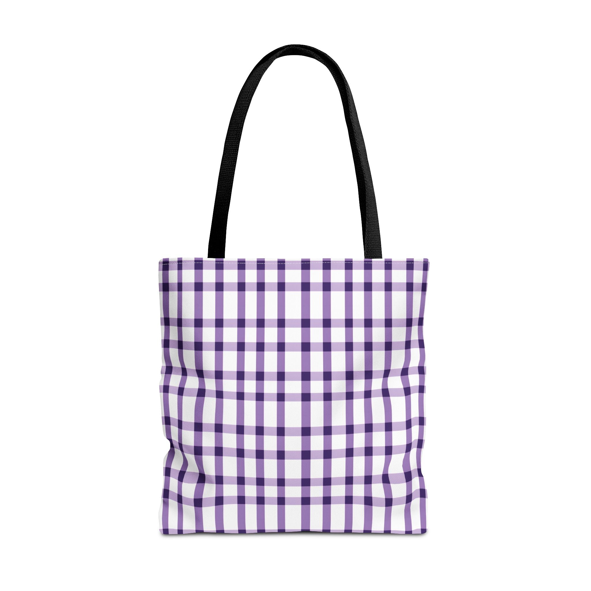This purple plaid tote bag is perfect for those who want a durable and stylish bag for everyday use. The seamless thread color and reinforced stitching on handles add to its strength and longevity. The boxed corners create extra room for your items. With 3 size choices, there's a perfect tote bag for everyone.