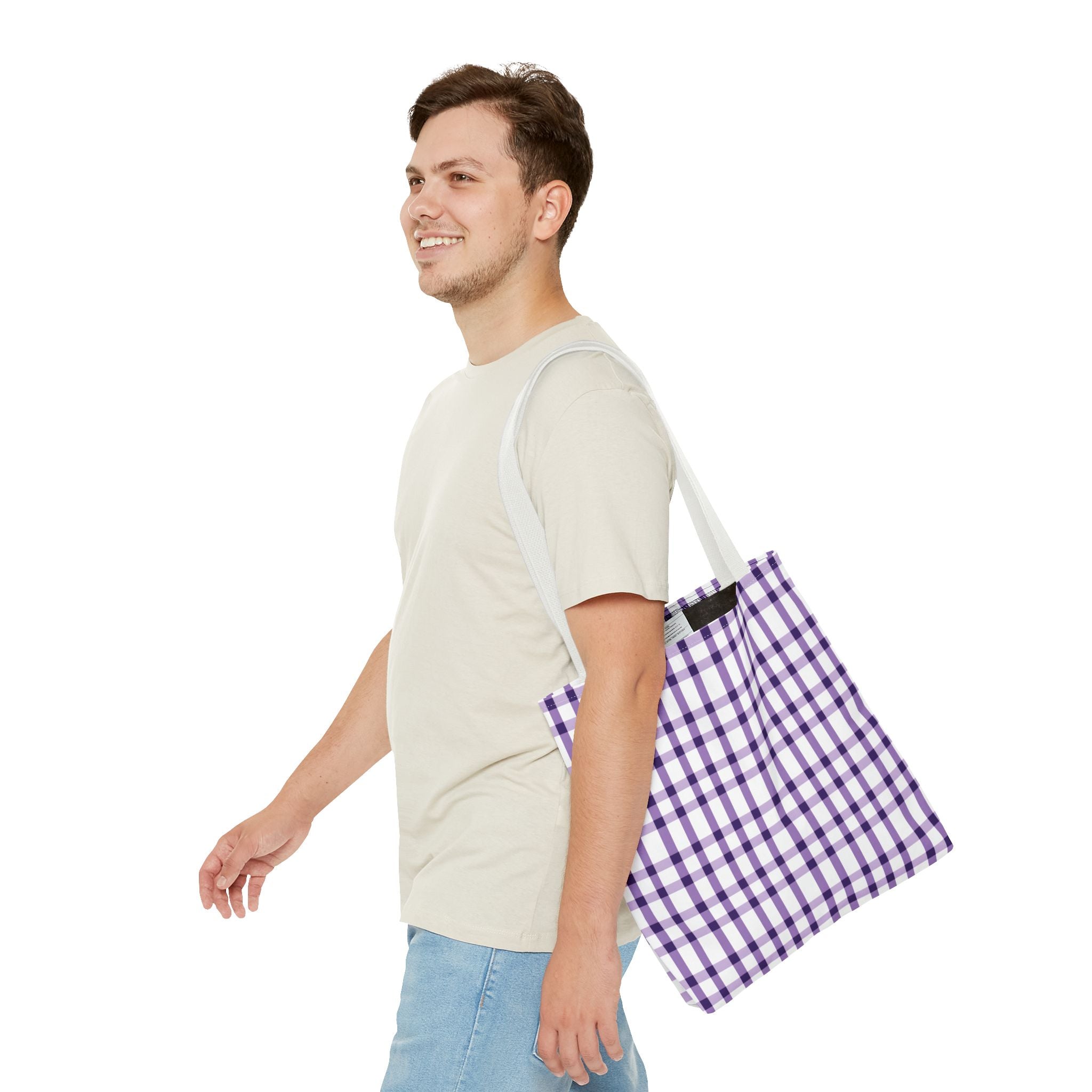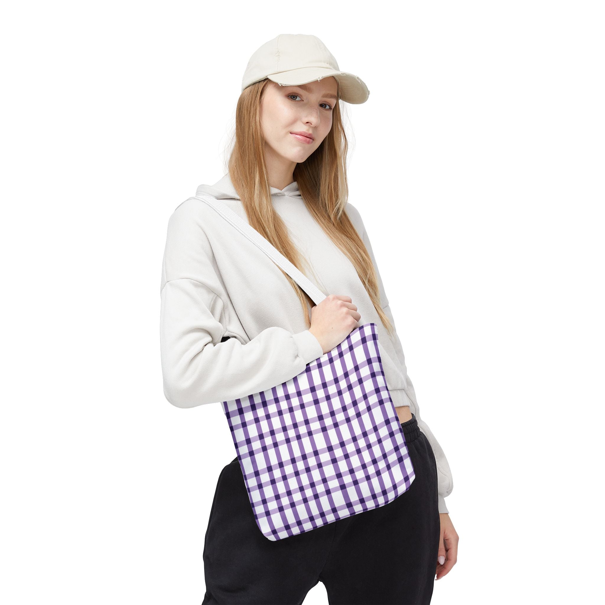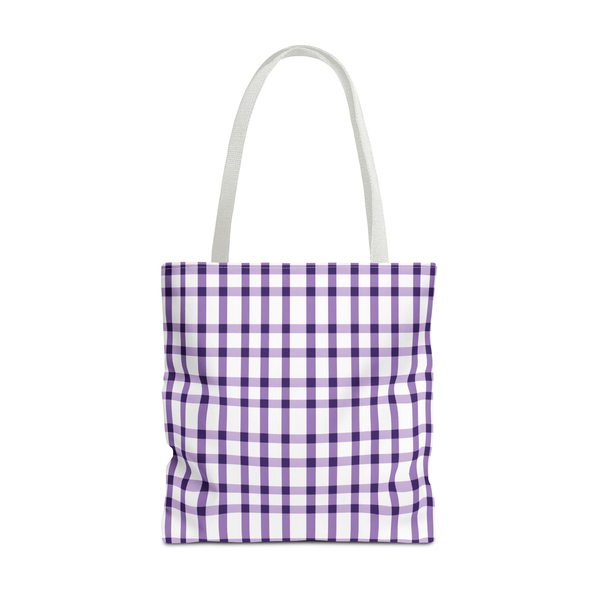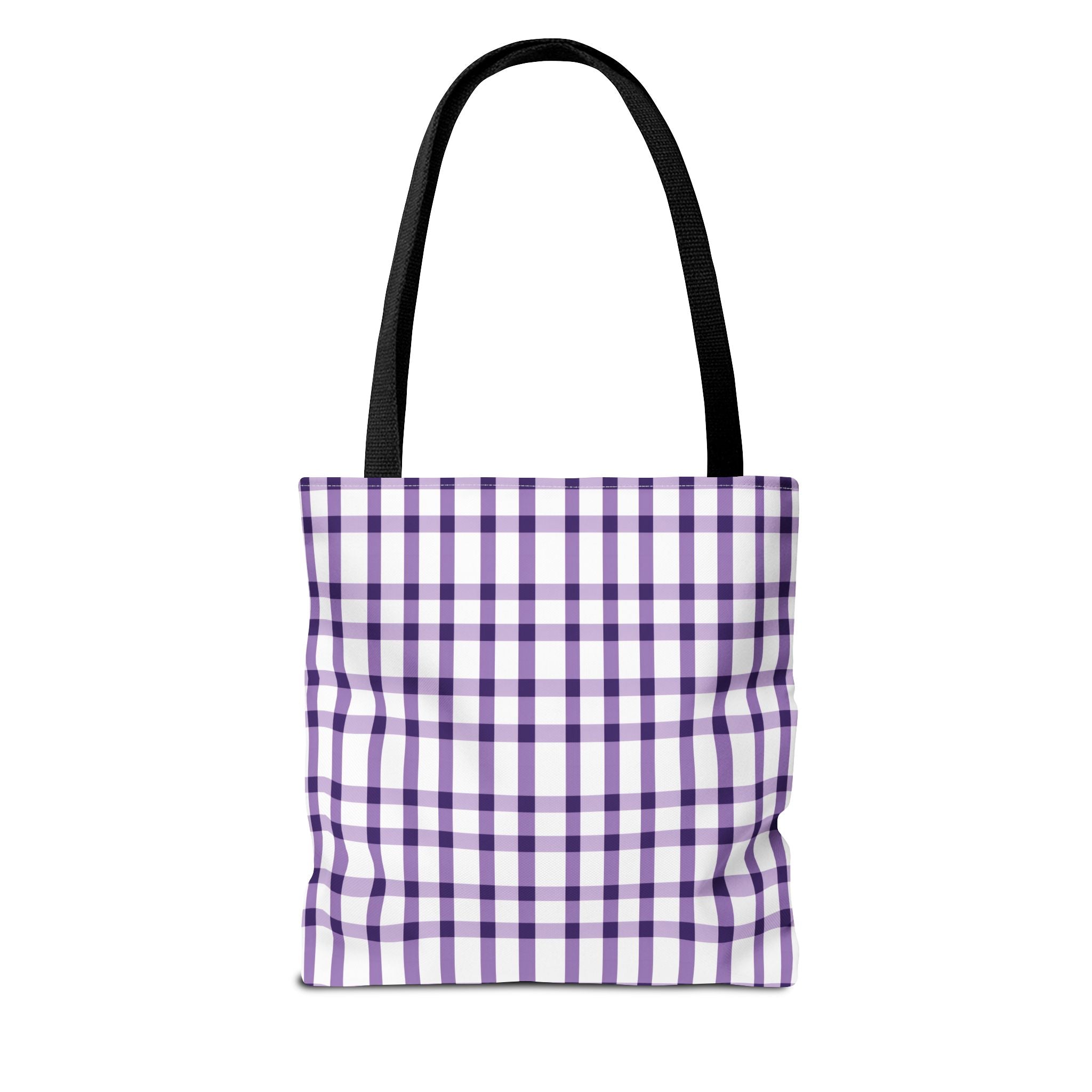This purple plaid tote bag is perfect for those who want a durable and stylish bag for everyday use. The seamless thread color and reinforced stitching on handles add to its strength and longevity. The boxed corners create extra room for your items. With 3 size choices, there's a perfect tote bag for everyone.