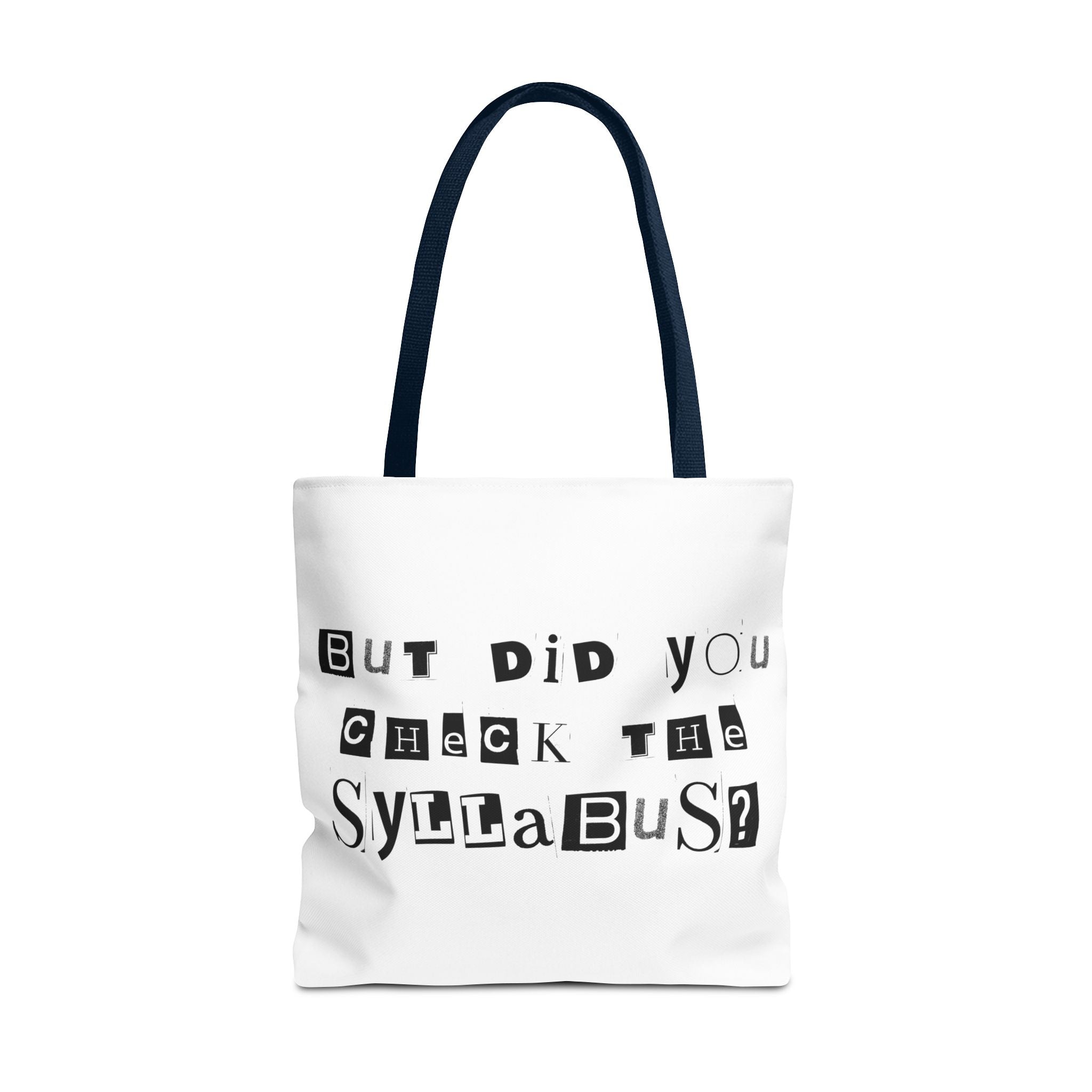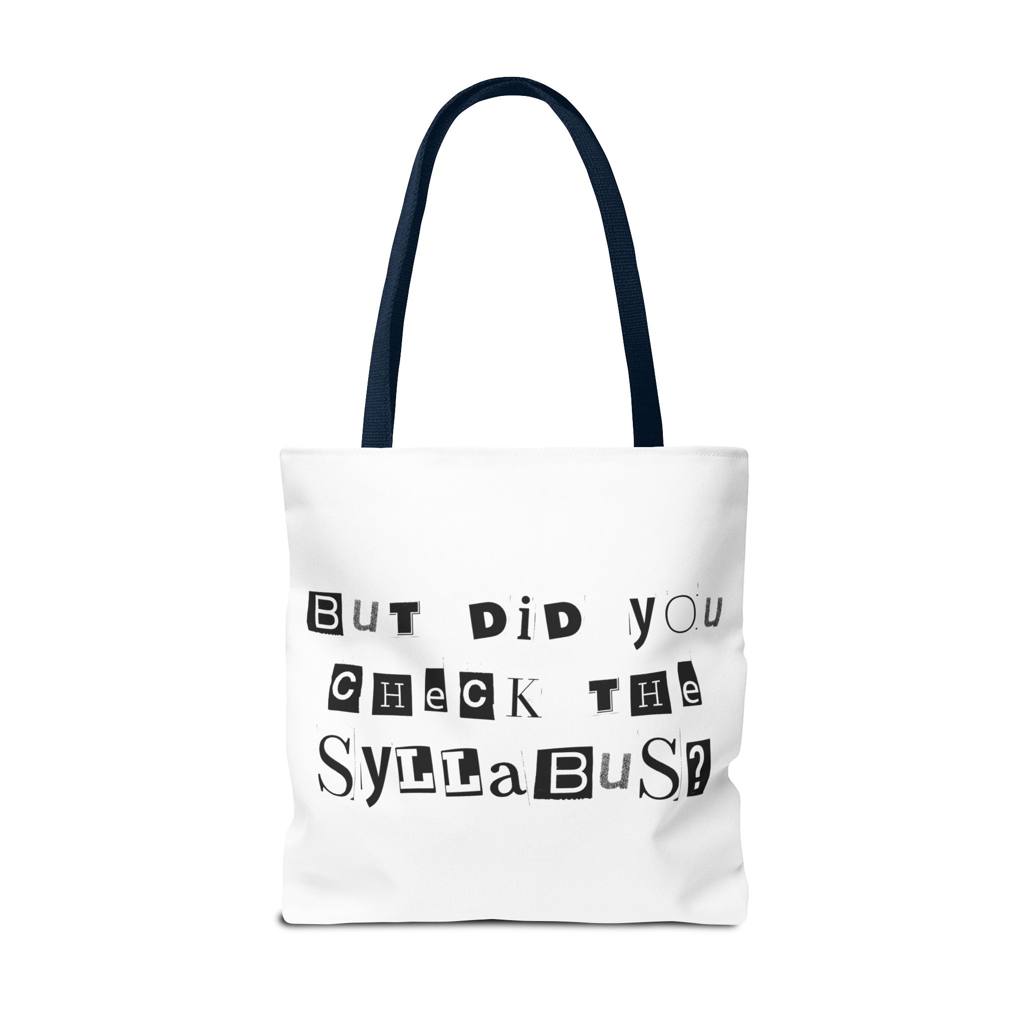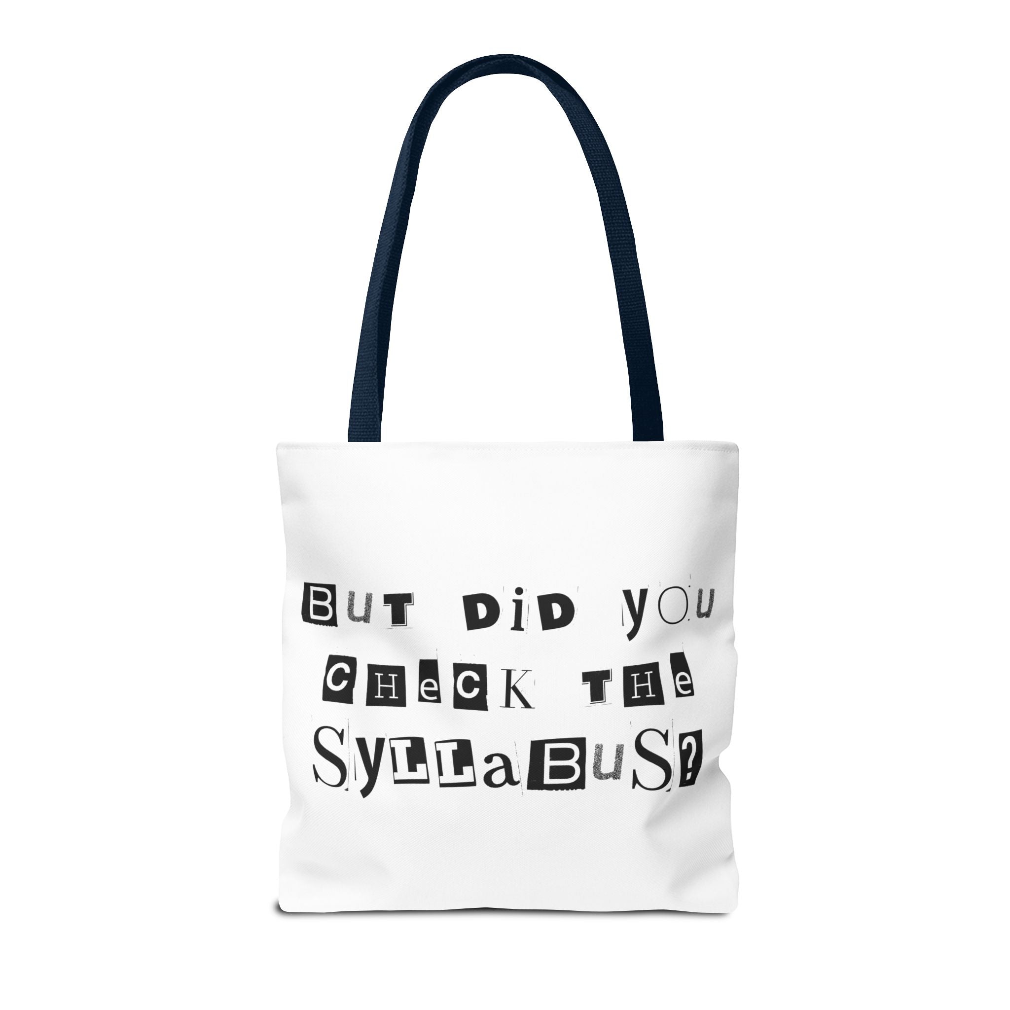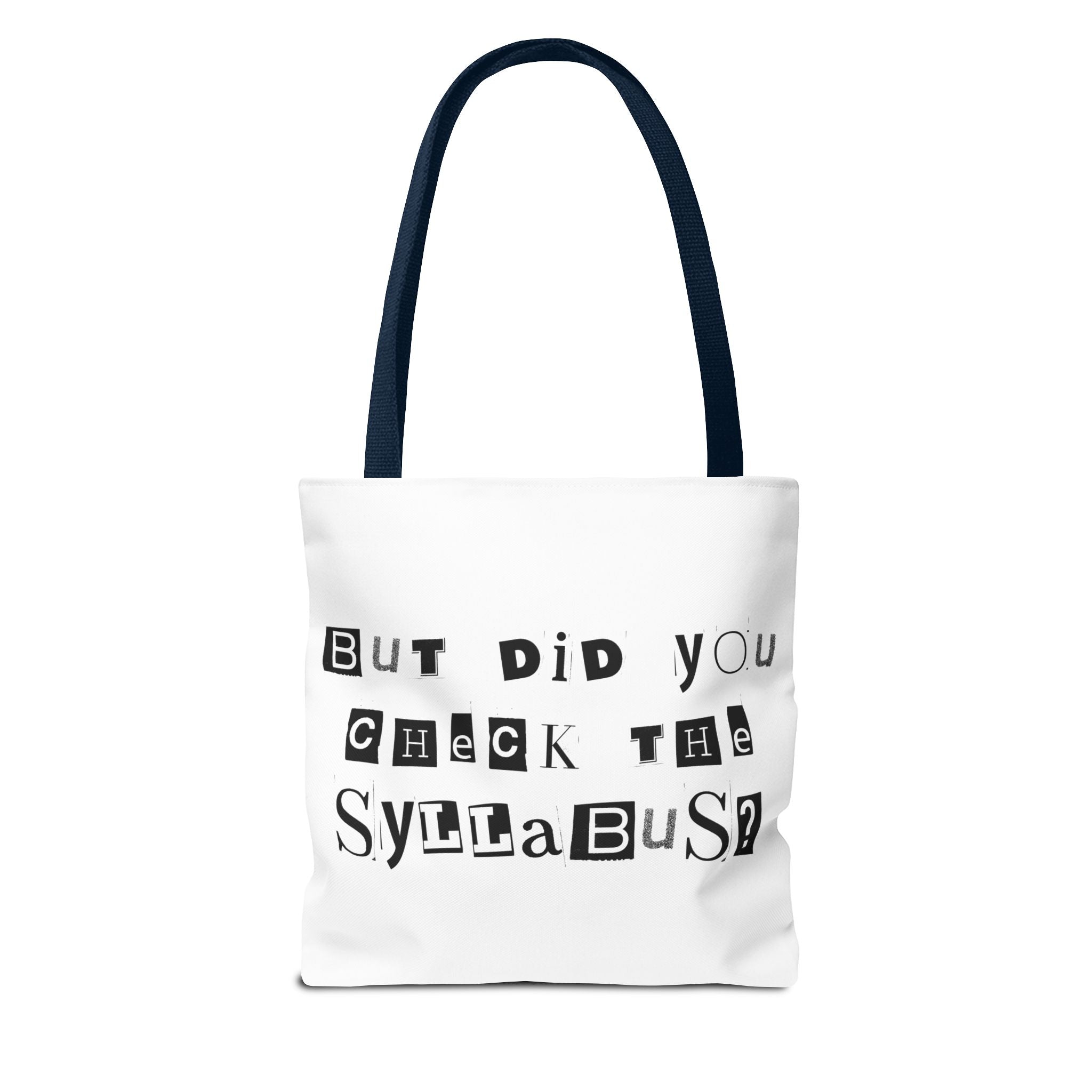 SAYINGS: Funny Tote Bag, "But did you check the syllabus?"