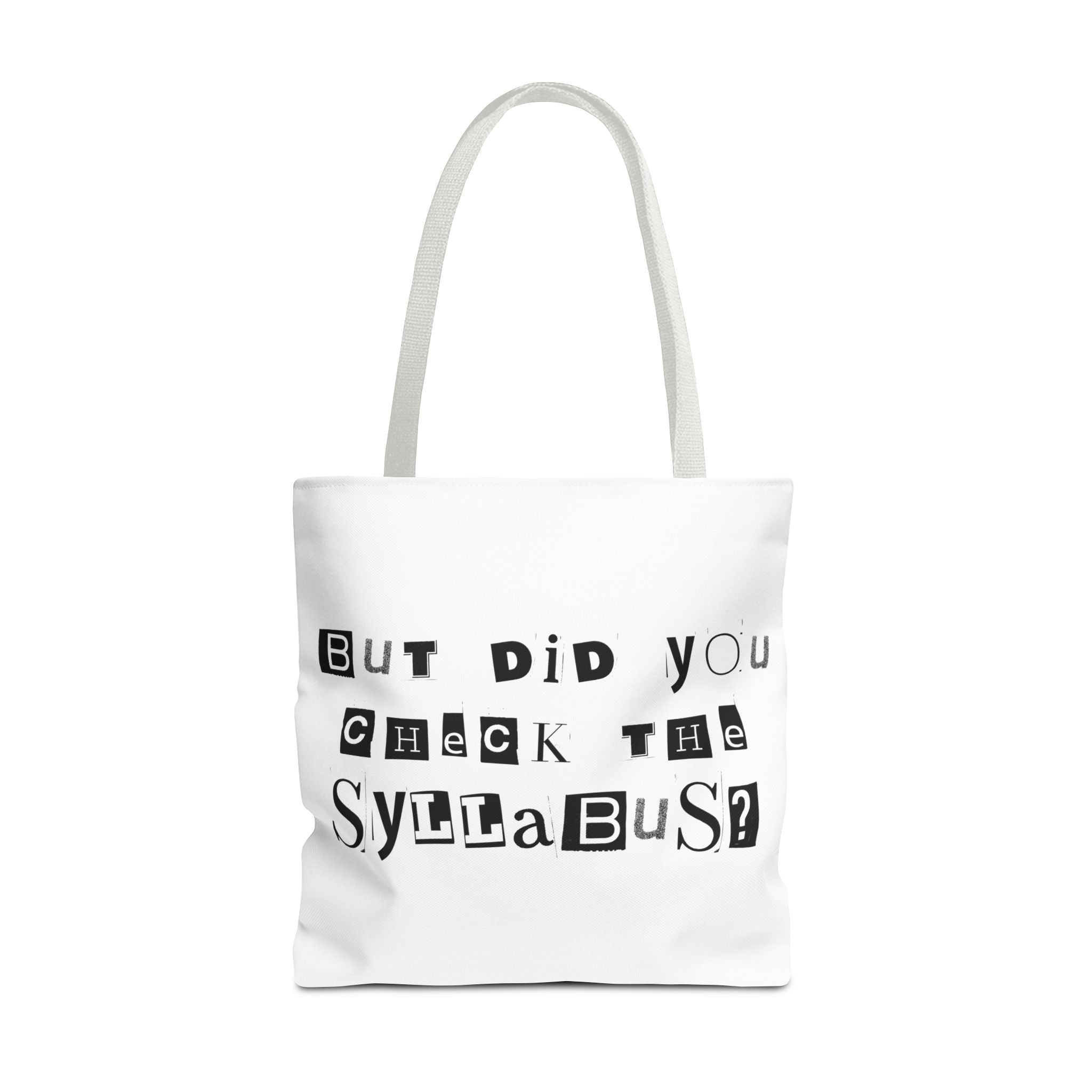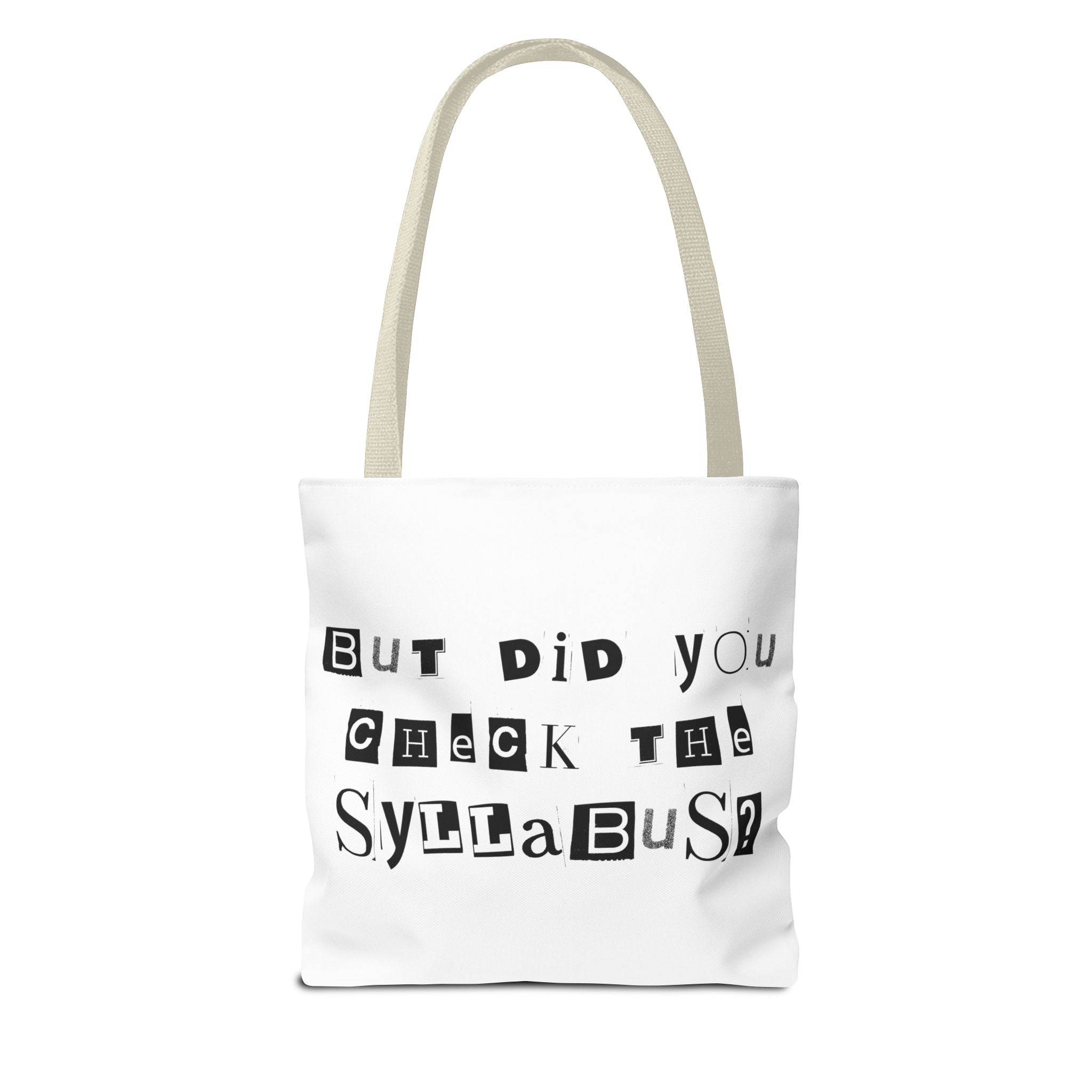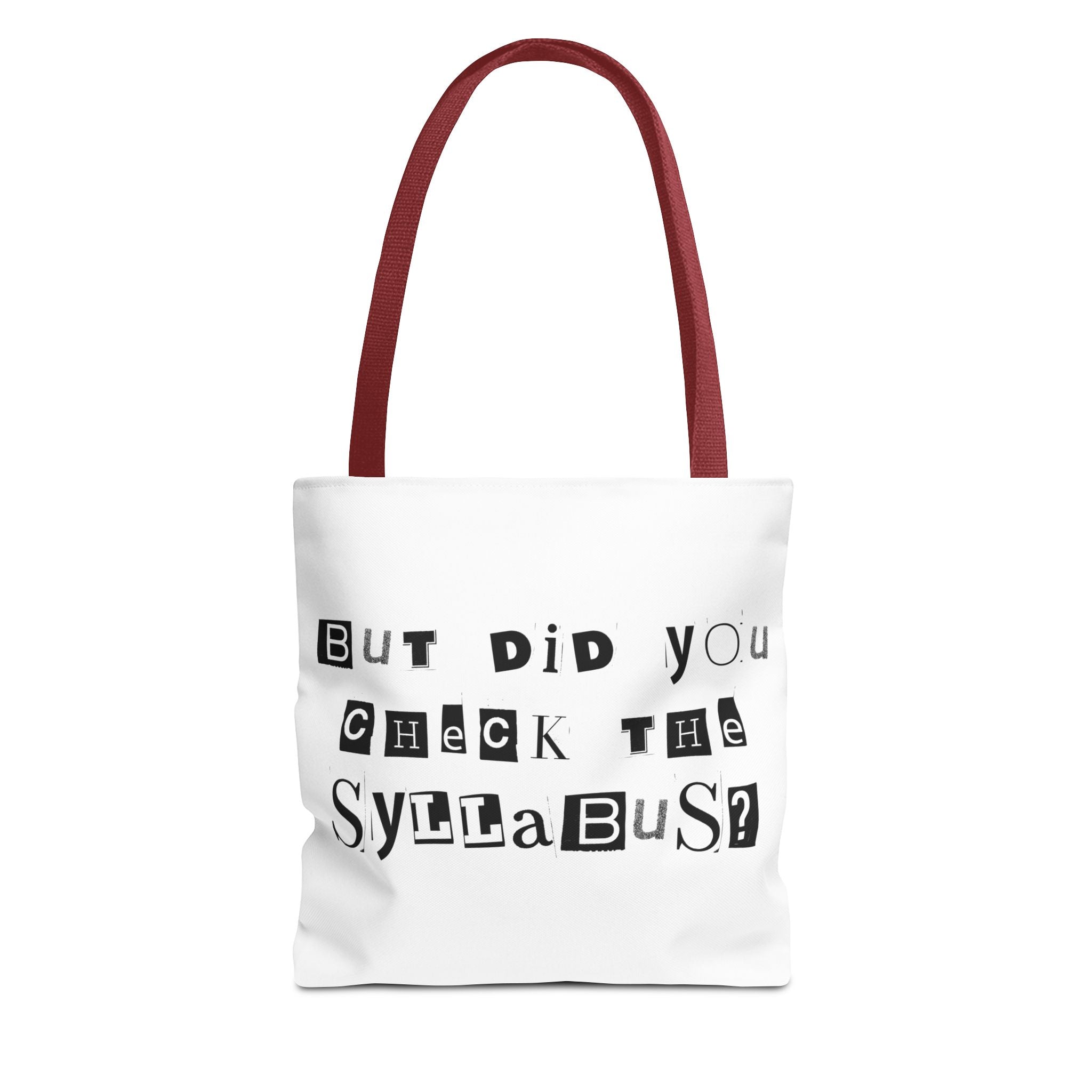 SAYINGS: Funny Tote Bag, "But did you check the syllabus?"
