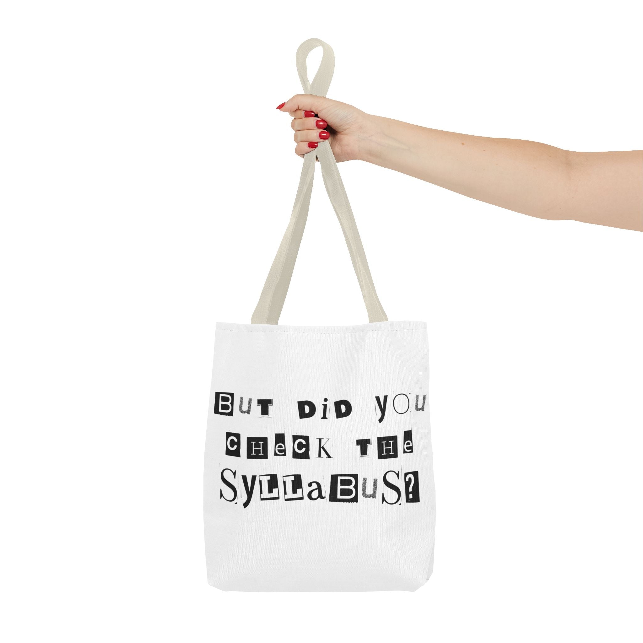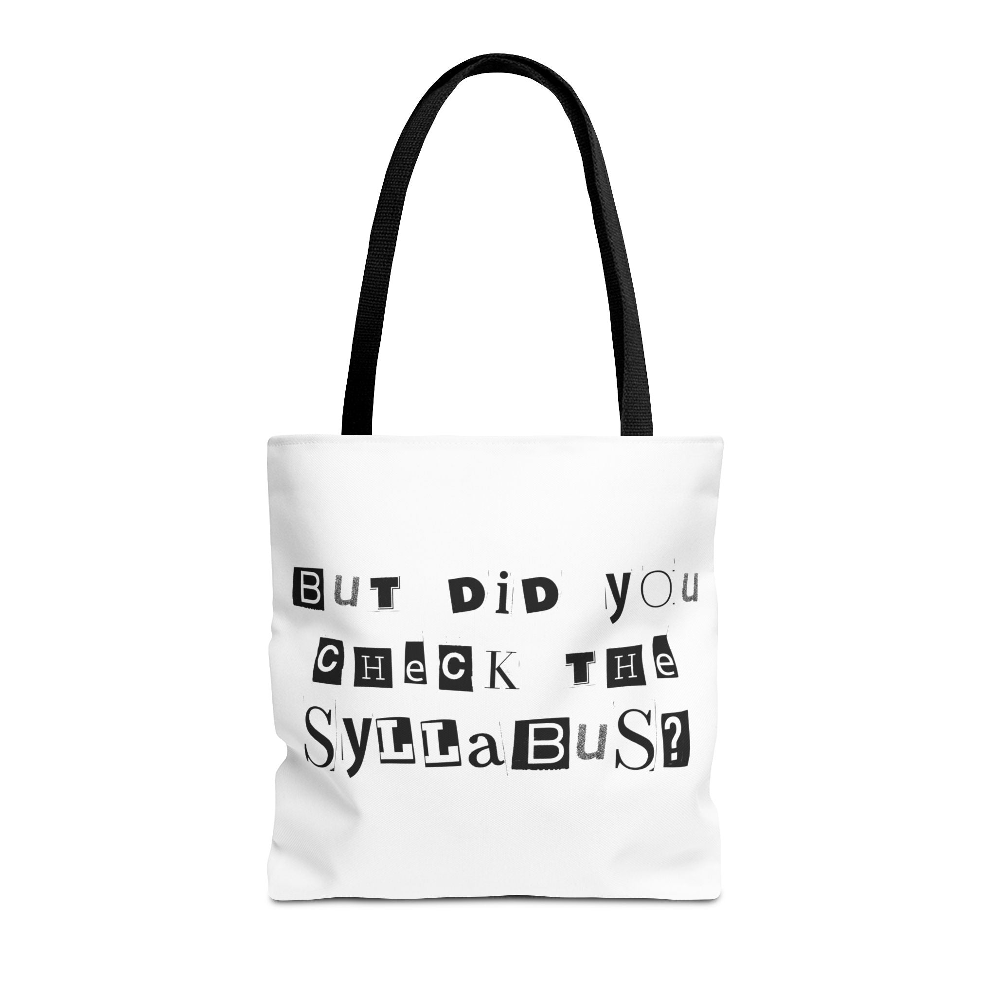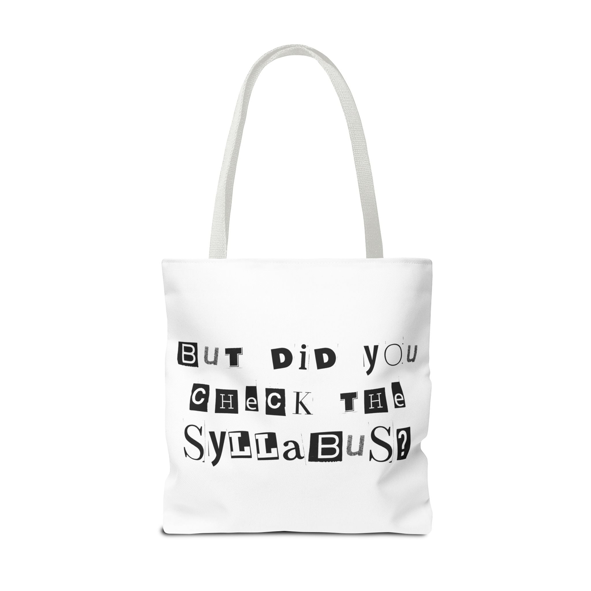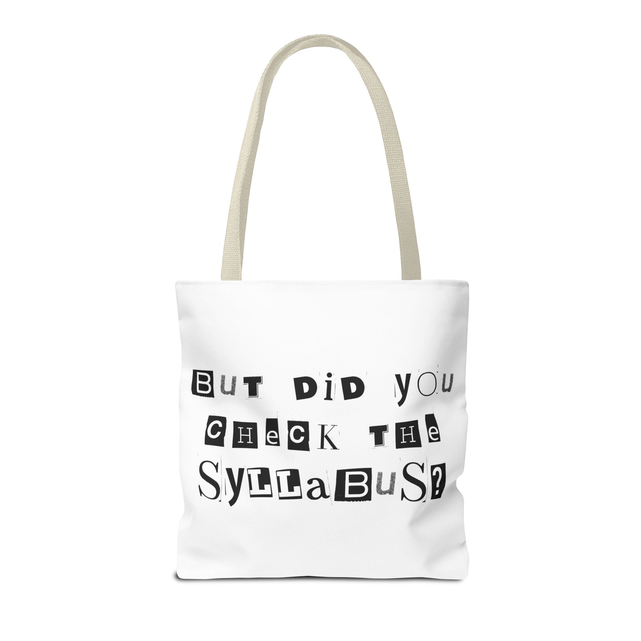 SAYINGS: Funny Tote Bag, "But did you check the syllabus?"