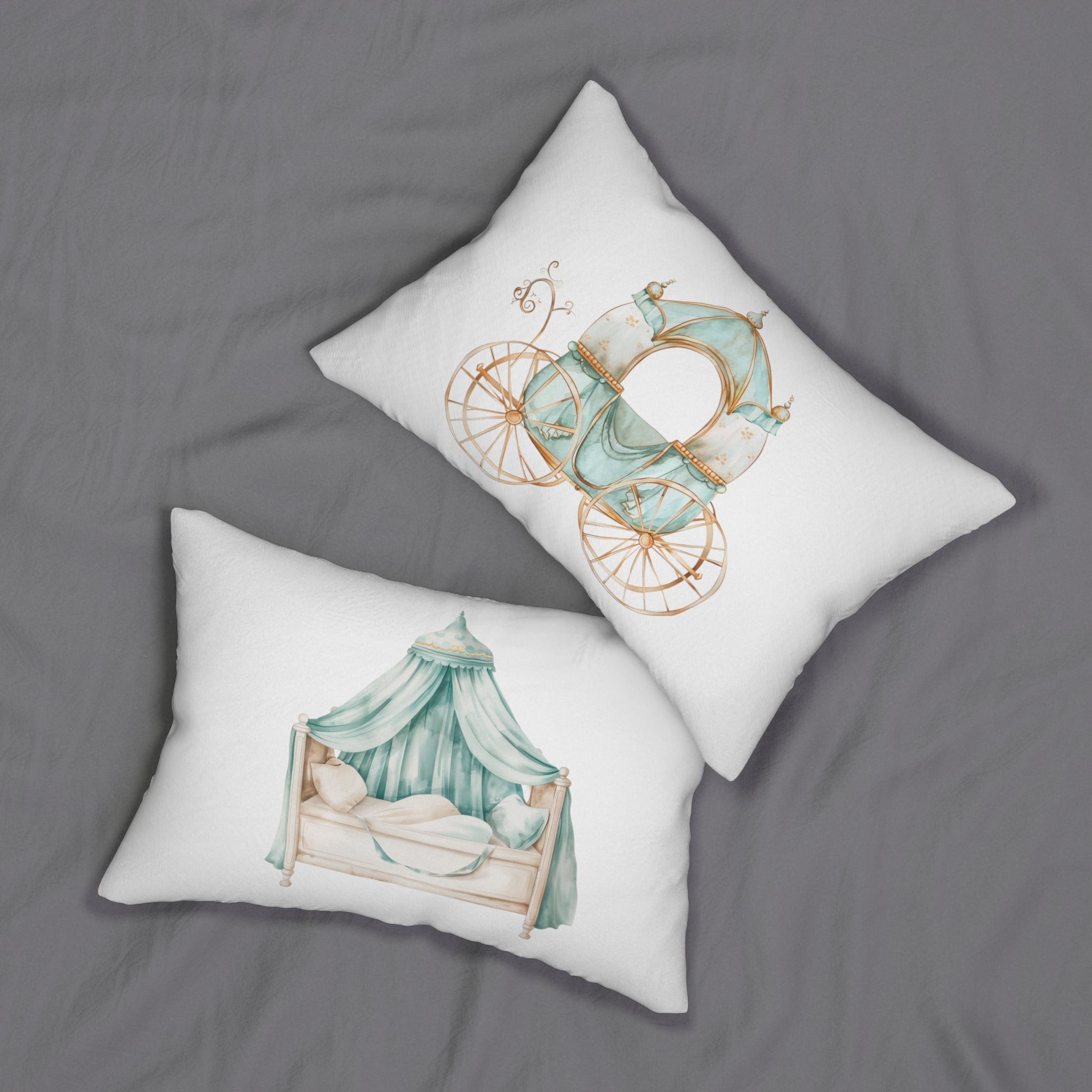 Spun Polyester Lumbar Pillow with Removable Cover Teal Princess Carriage Canopy Bed