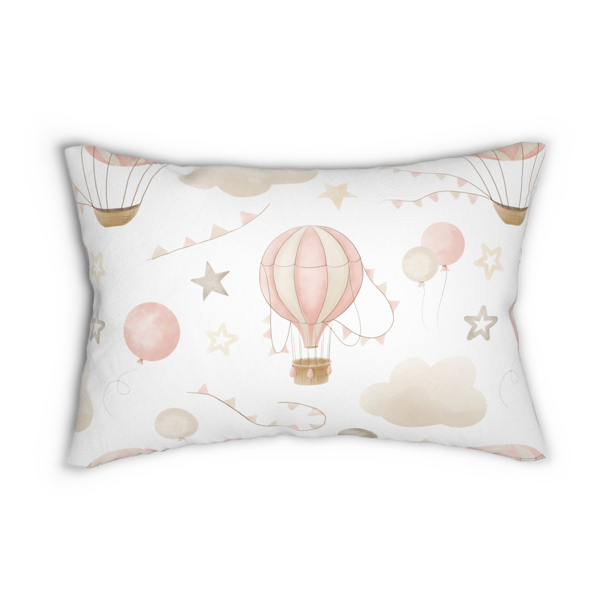 Spun Polyester Lumbar Pillow with Removable Cover Watercolor Balloon Clouds Pink