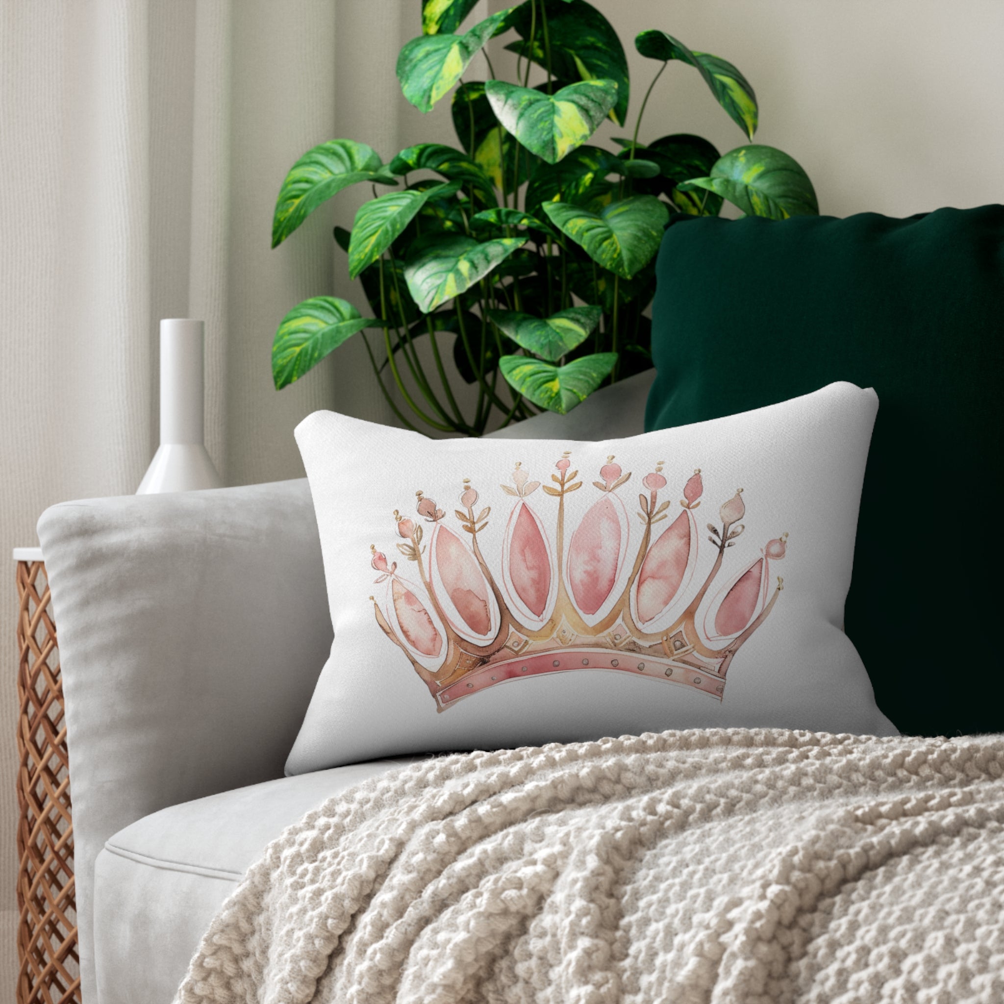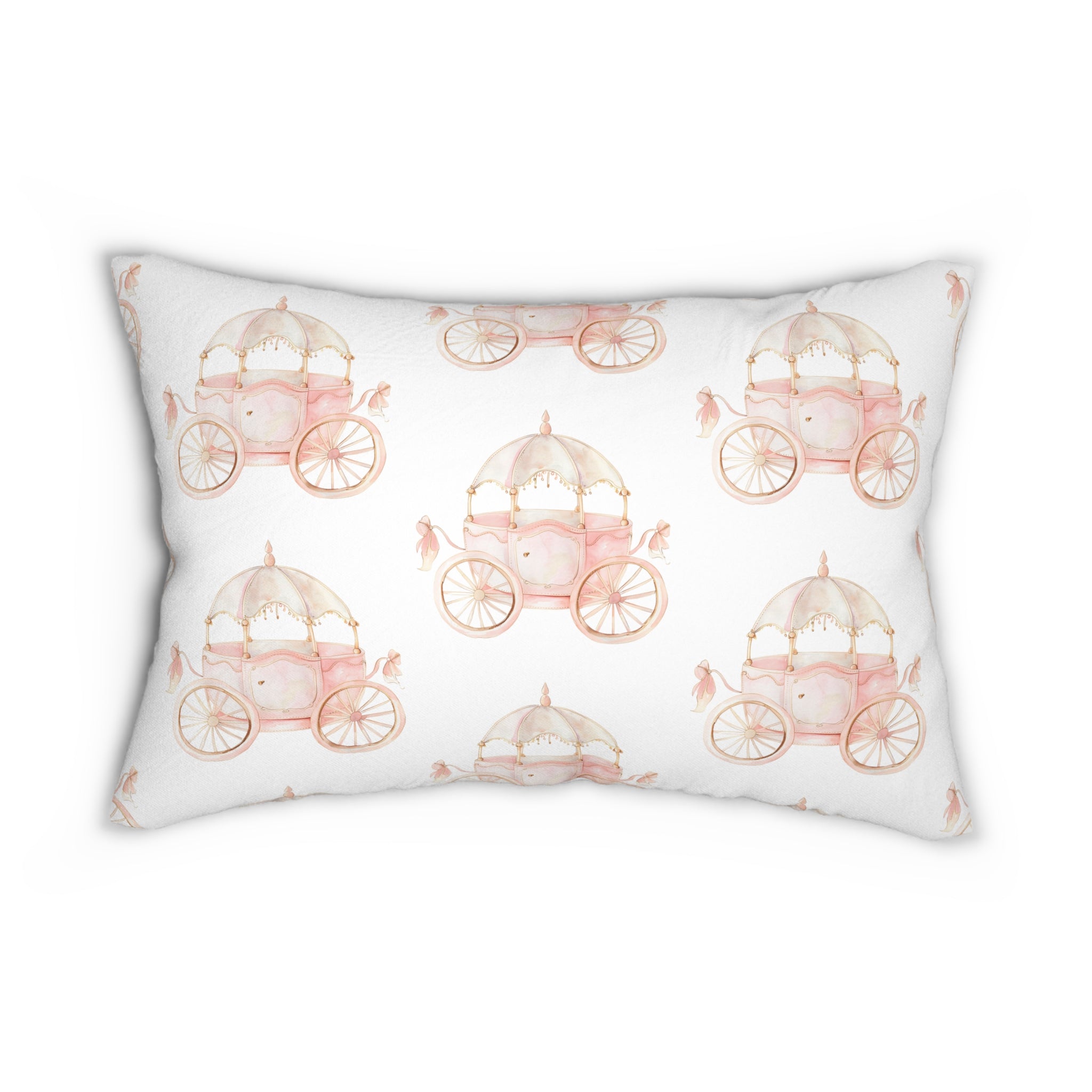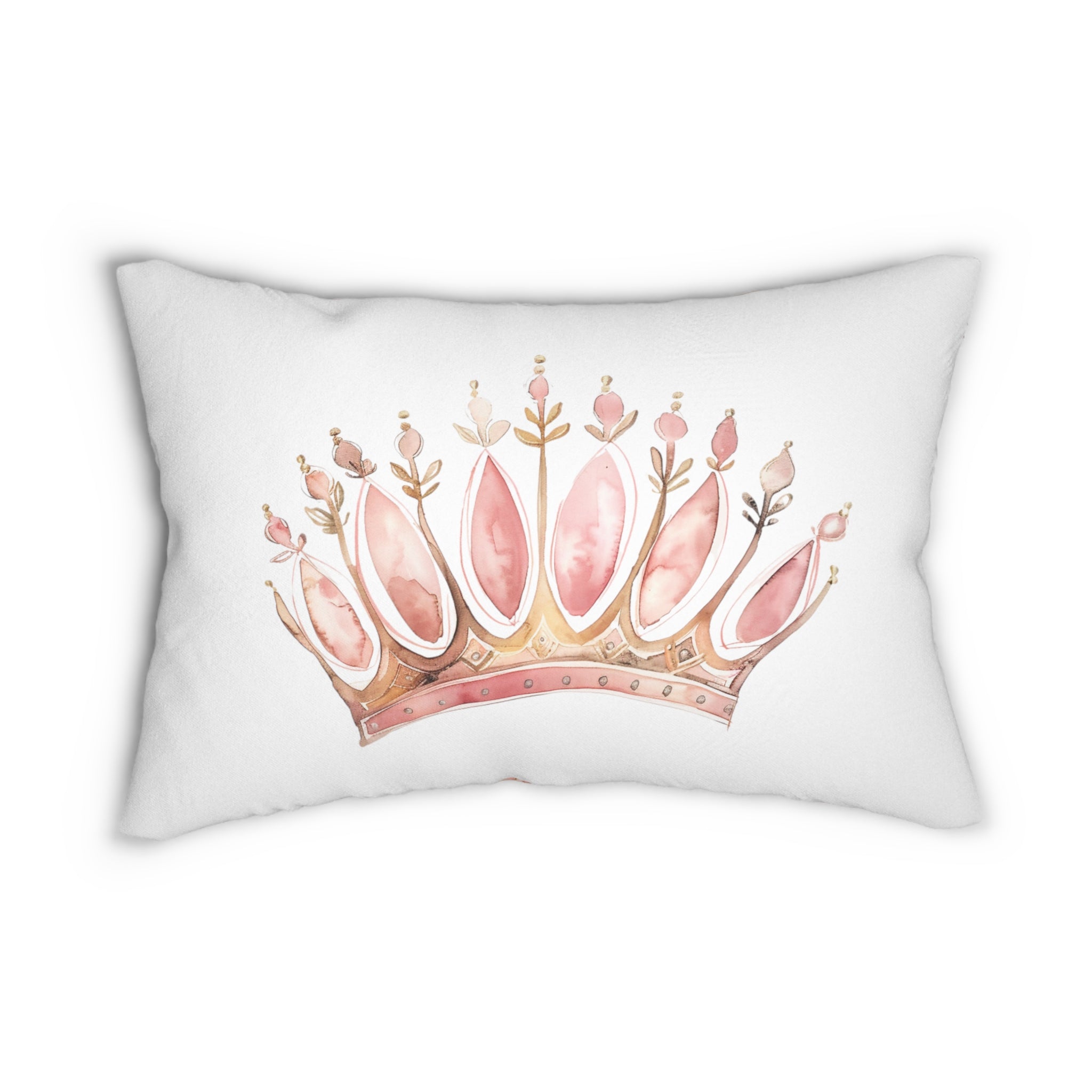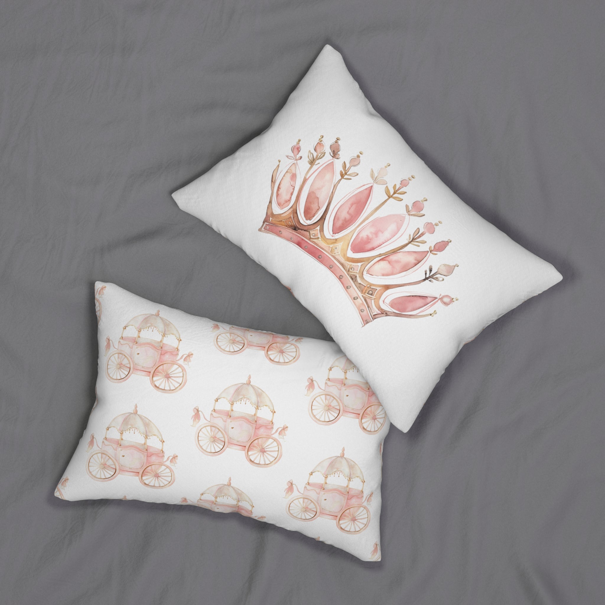 Spun Polyester Lumbar Pillow with Removable Cover Watercolor Pink Princess Crown Carriages