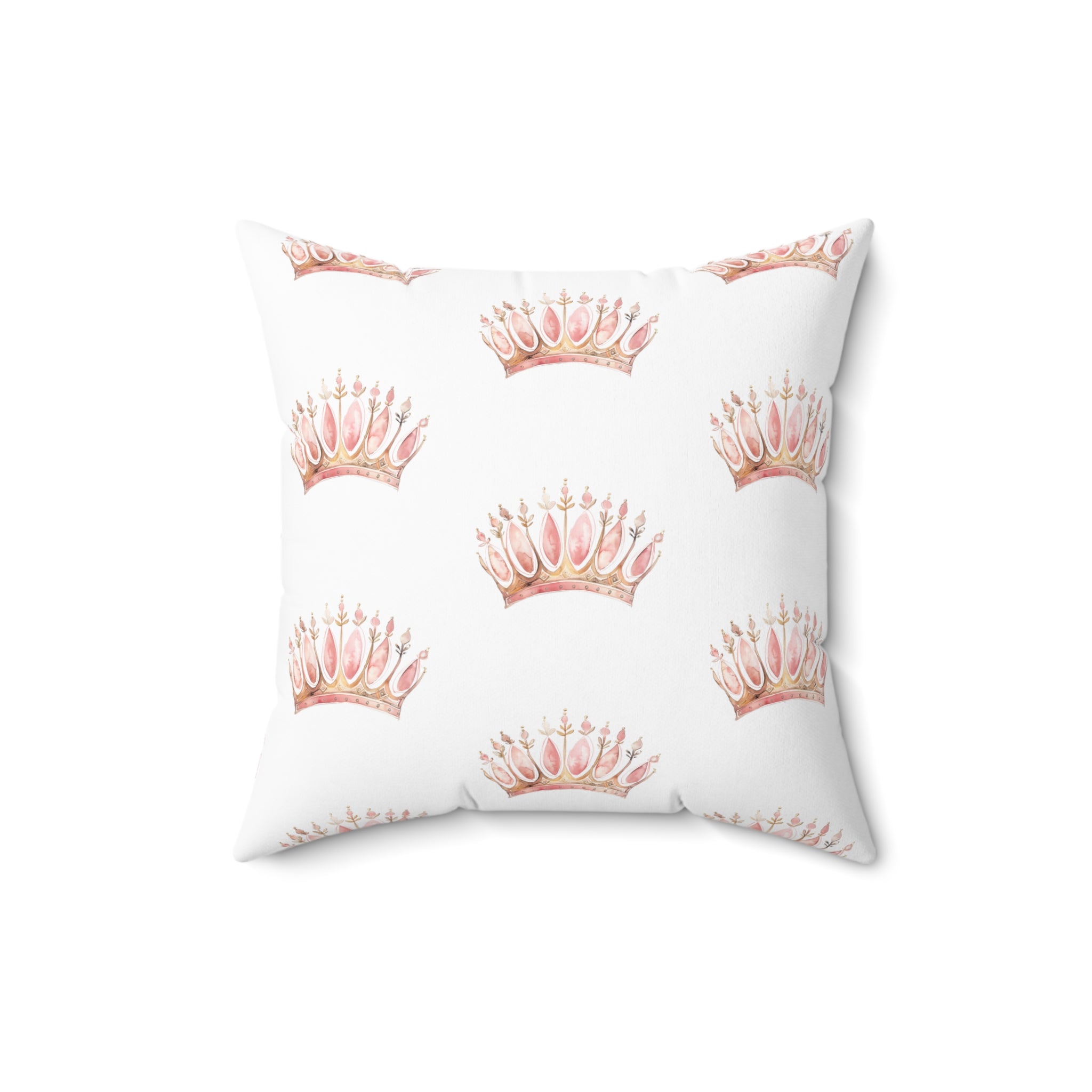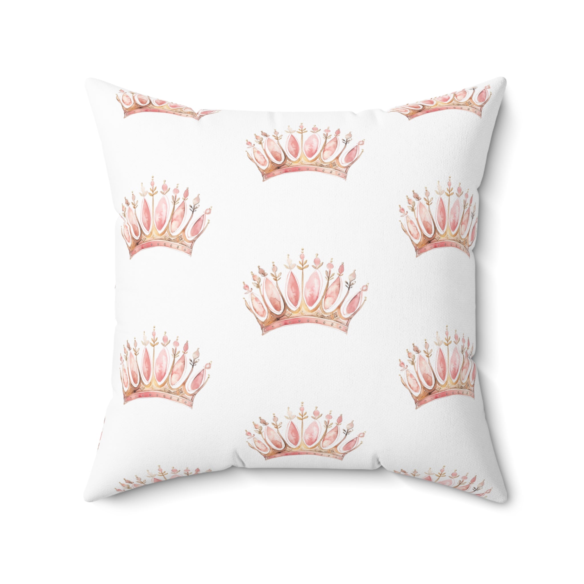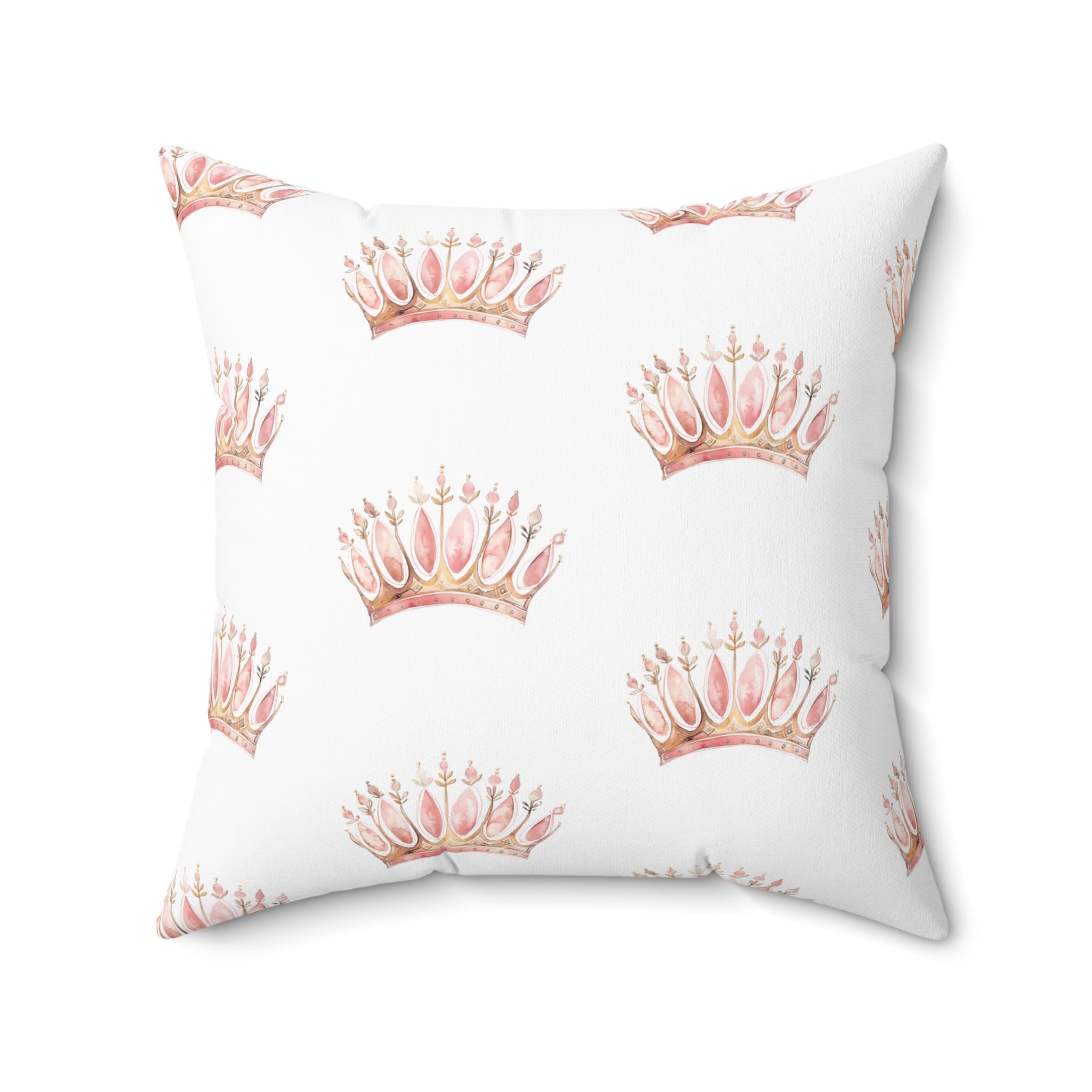 Spun Polyester Square Pillow with Removable Cover Watercolor Pink Princess Crown