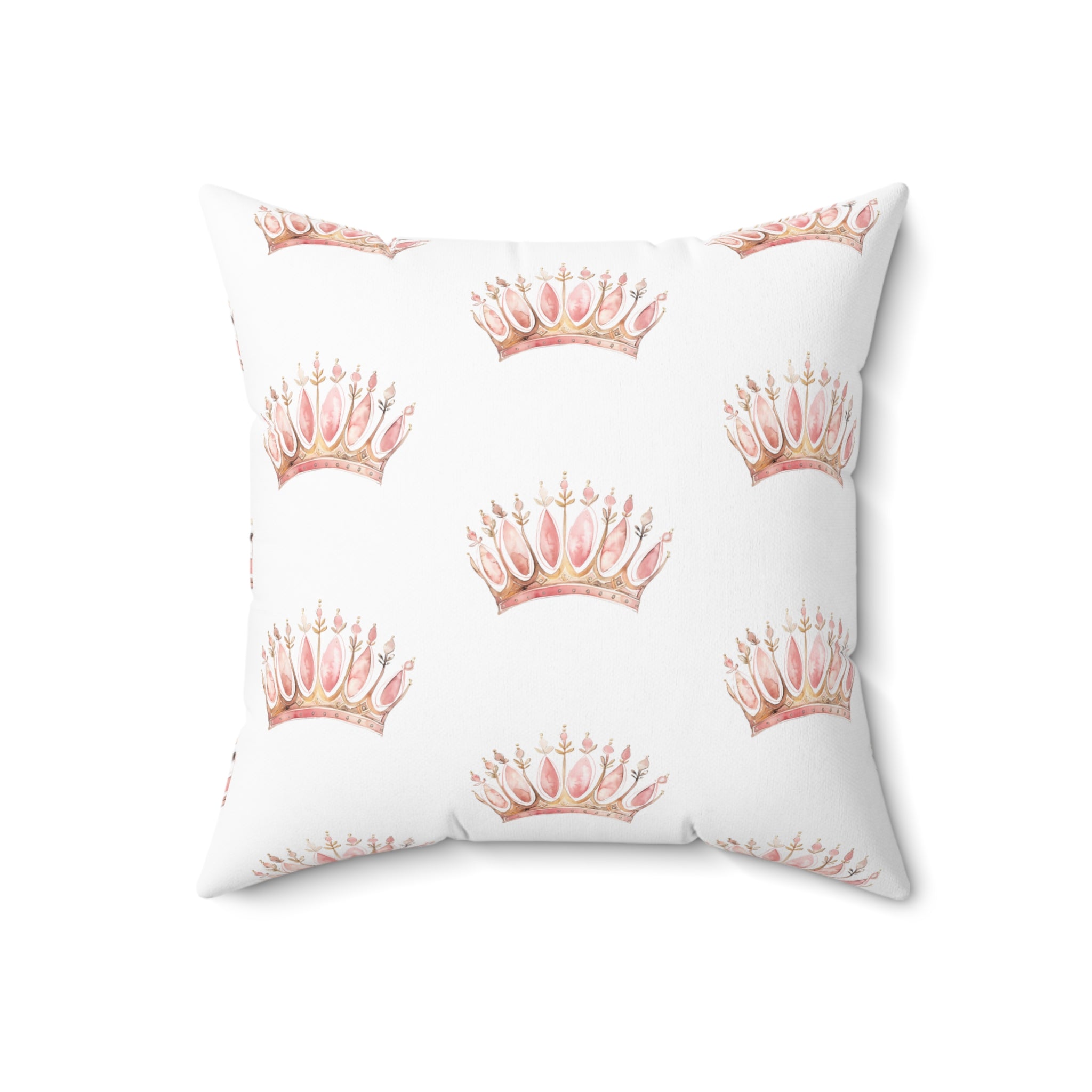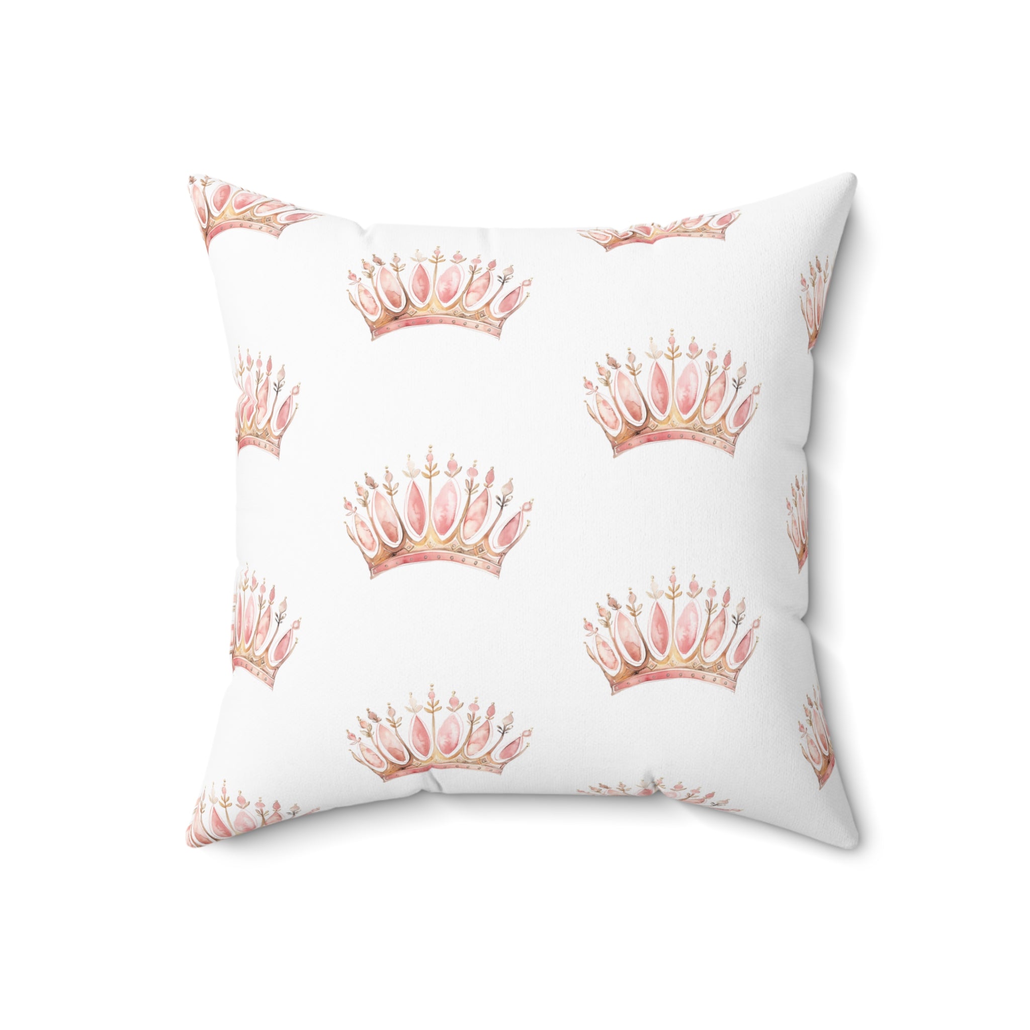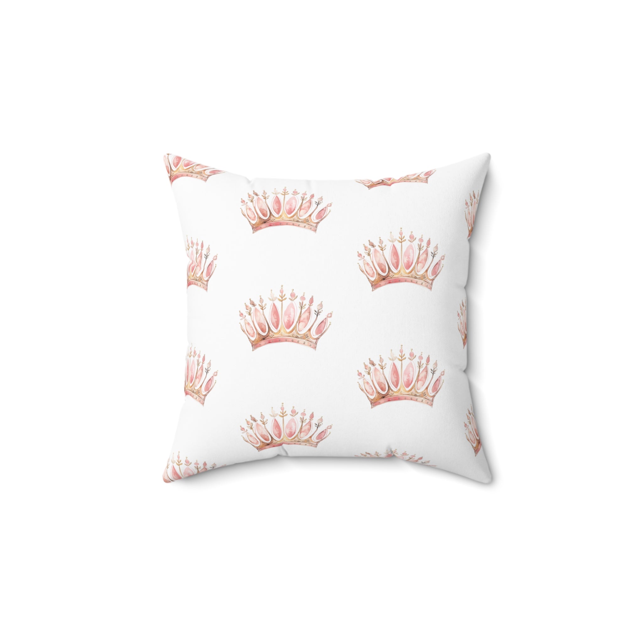 Spun Polyester Square Pillow with Removable Cover Watercolor Pink Princess Crown