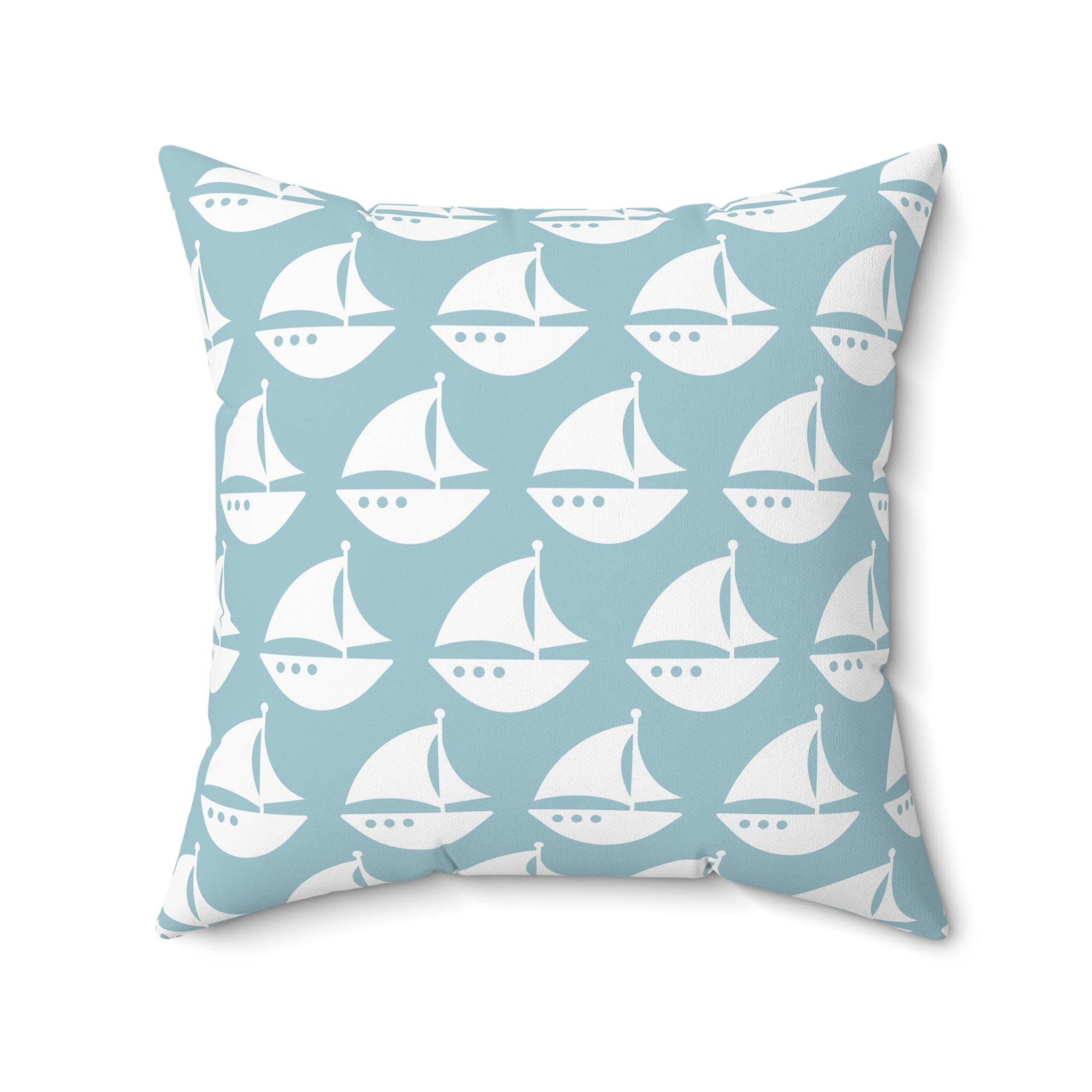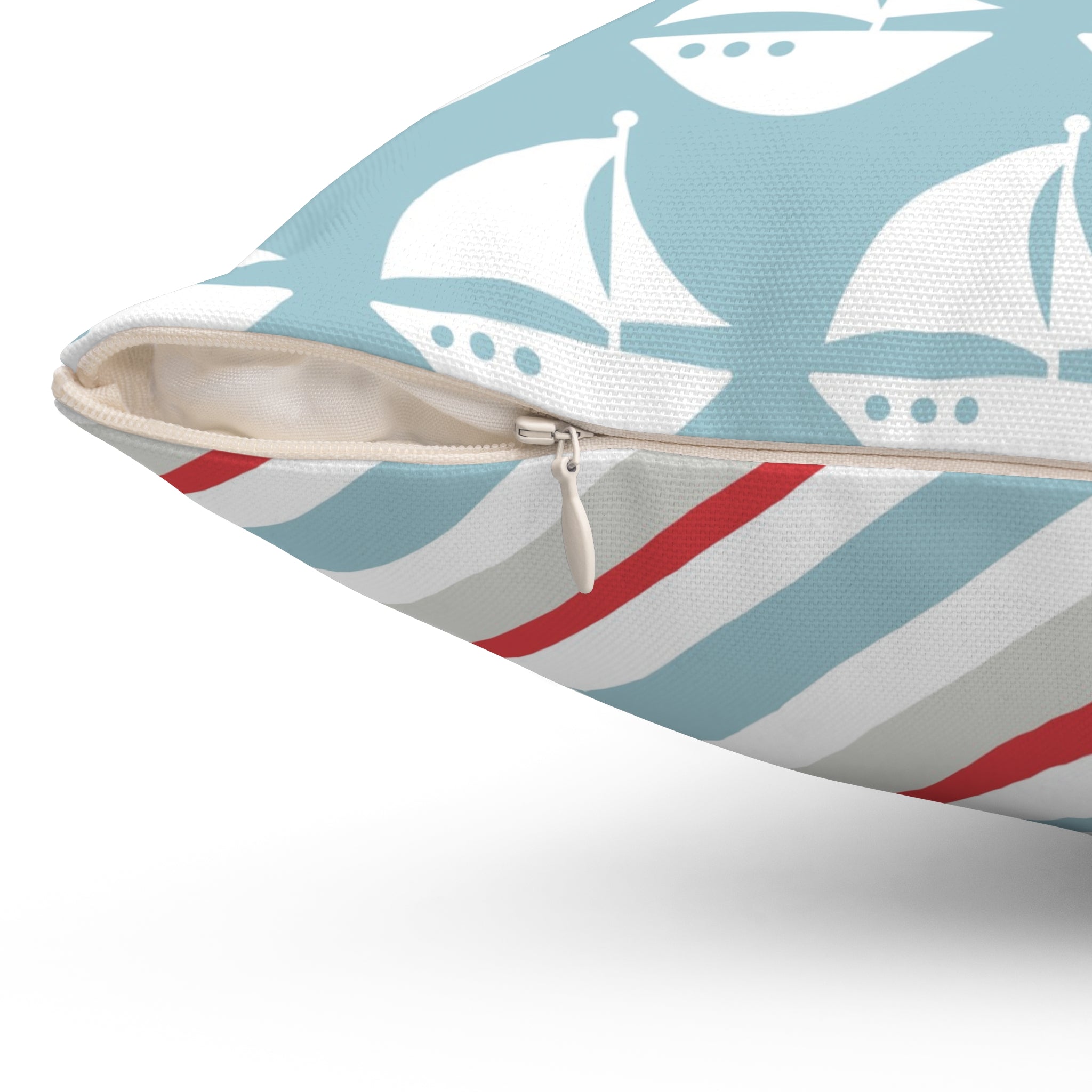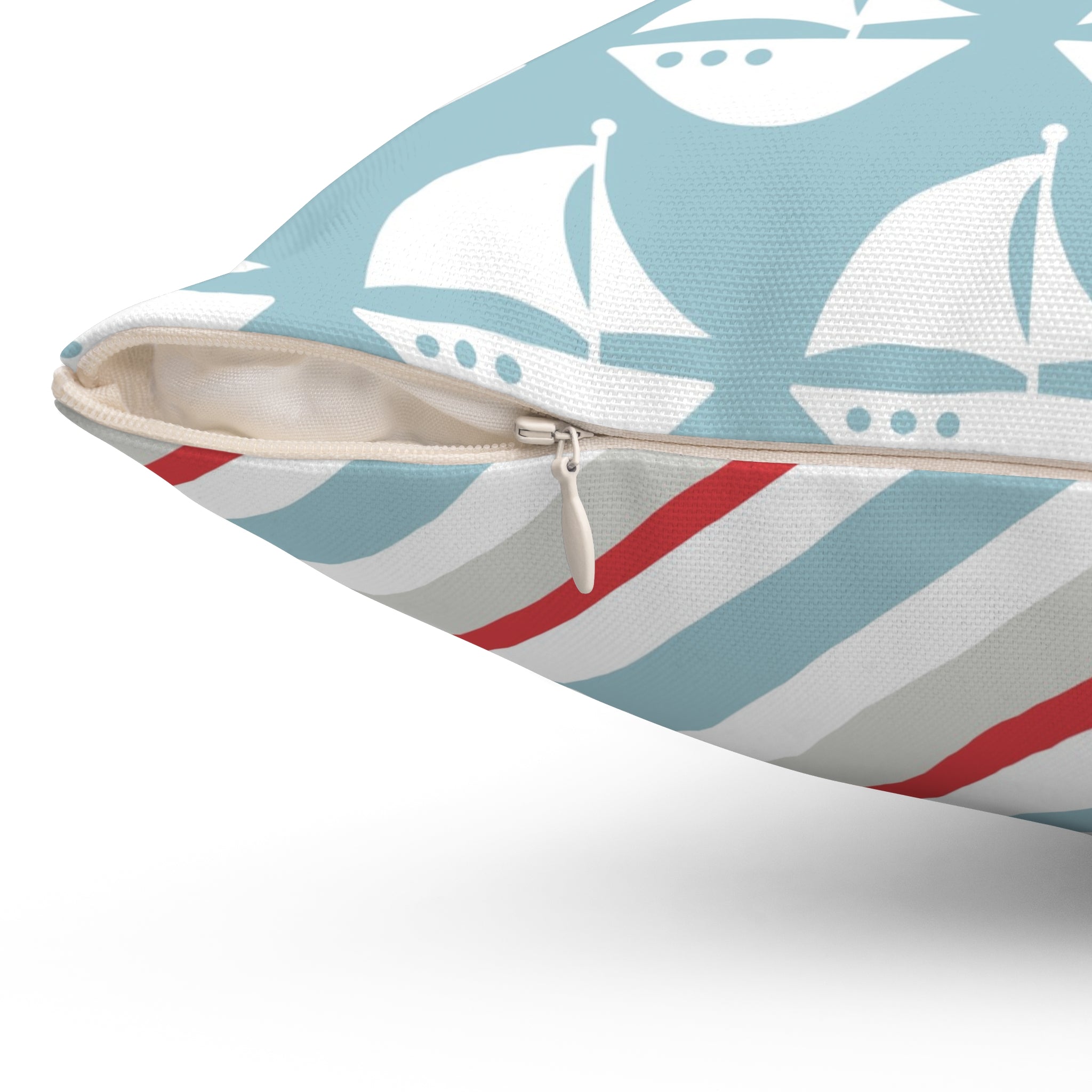 Spun Polyester Square Pillow with Removable Cover Beach Baby Sailboat Stripes
