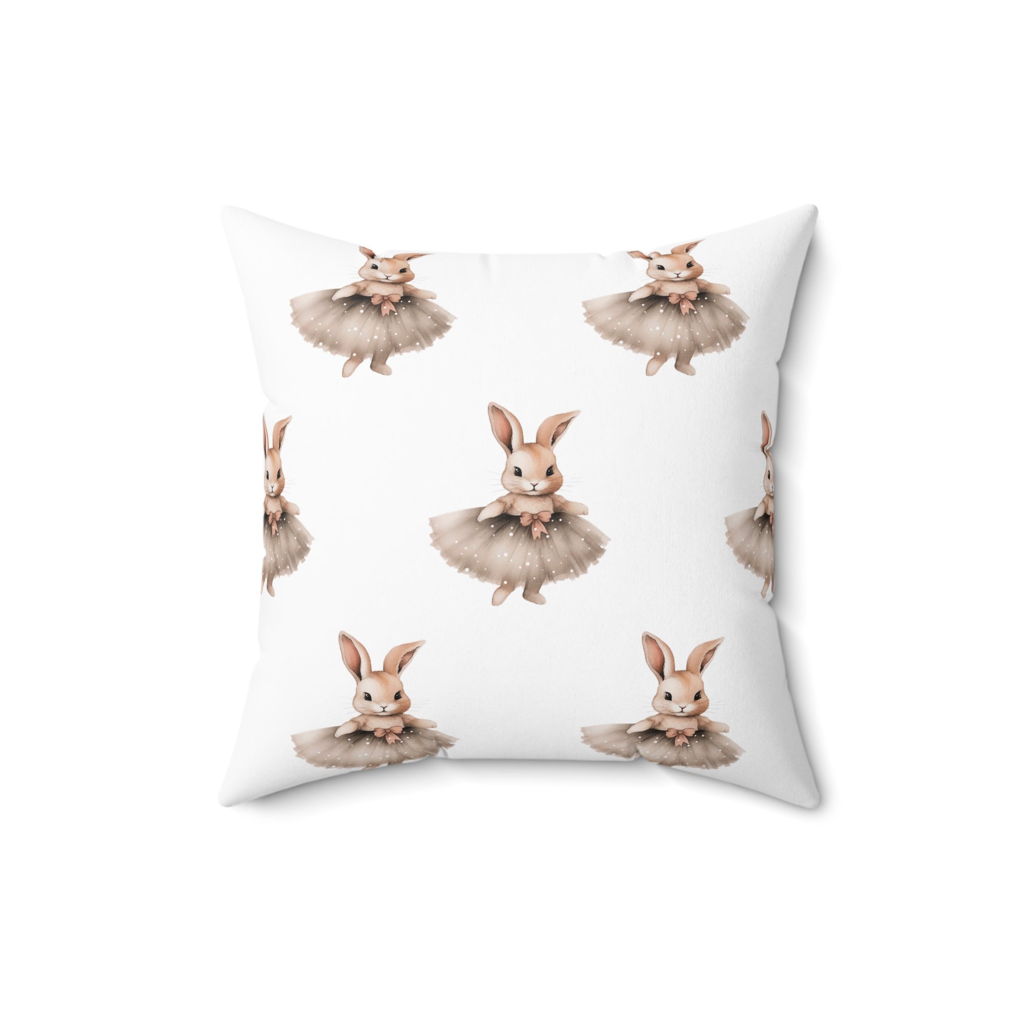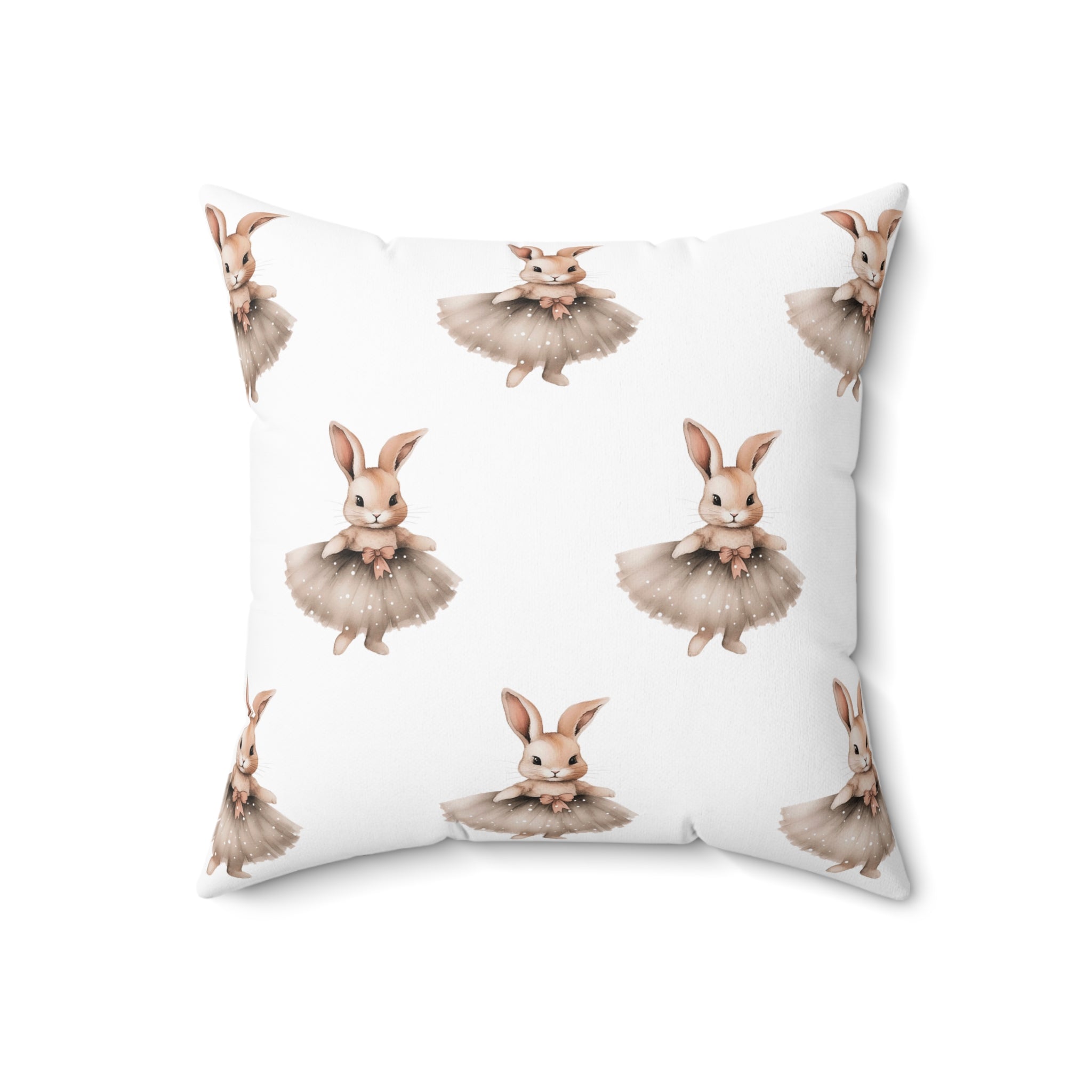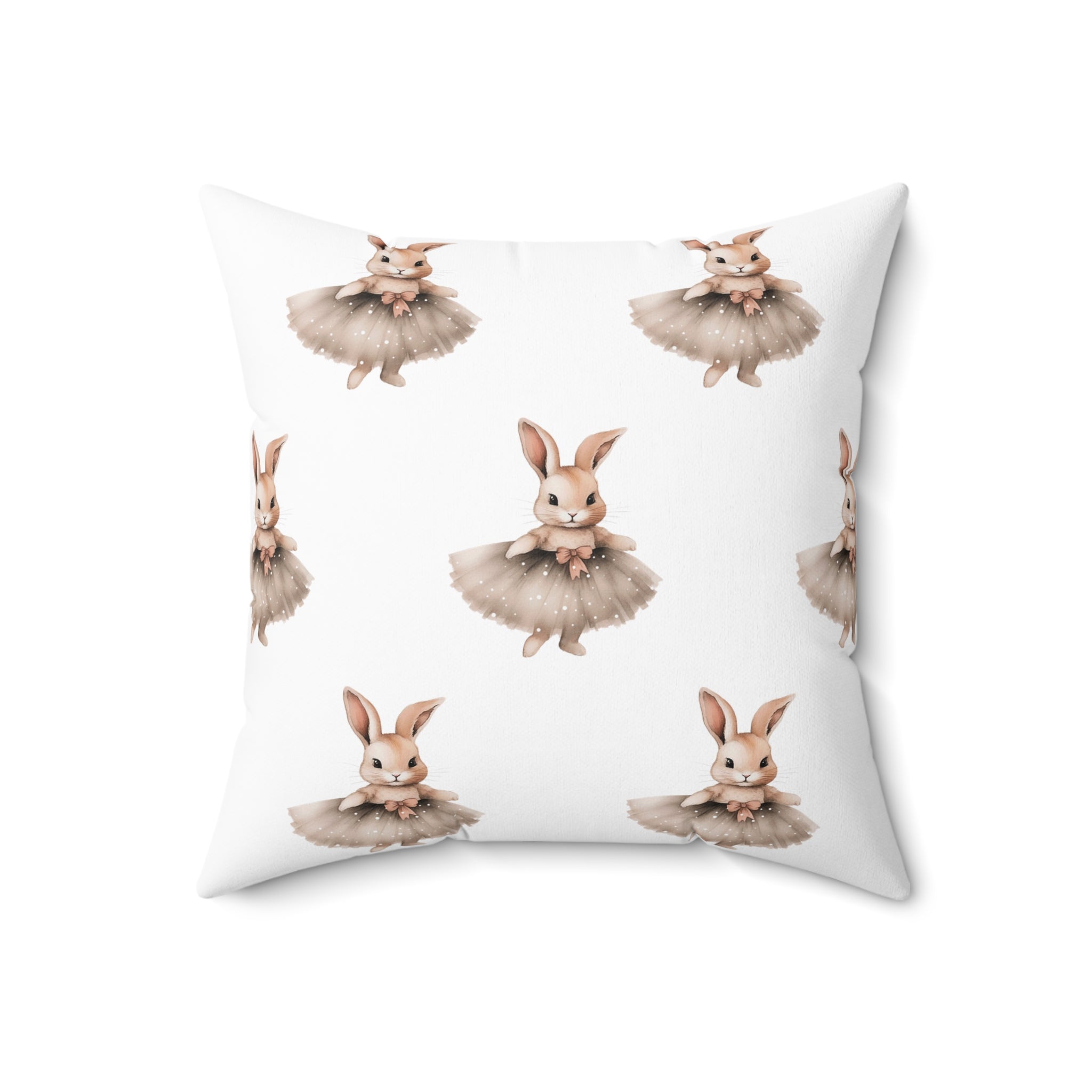 Spun Polyester Square Pillow with Removable Cover Watercolor Ballerina Bunnies
