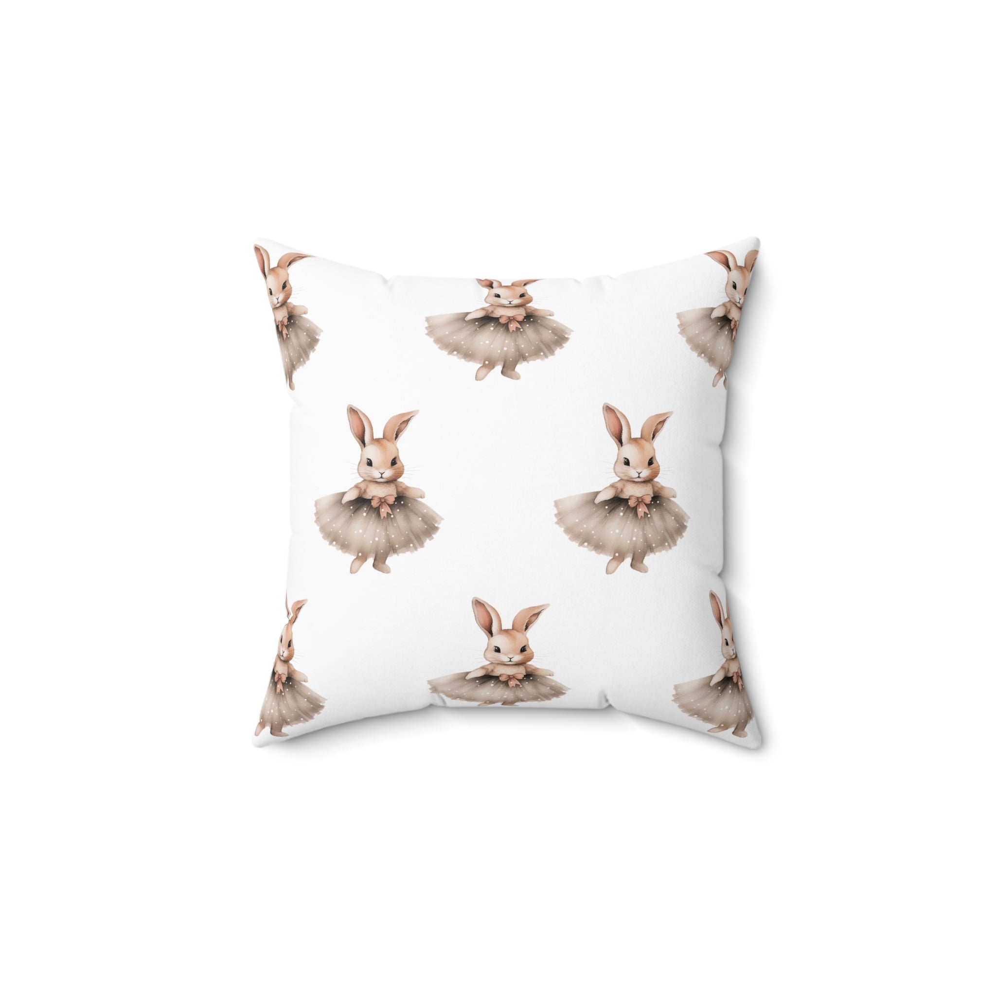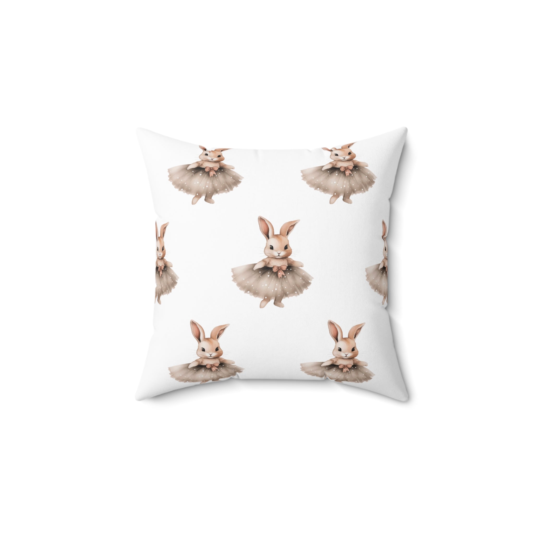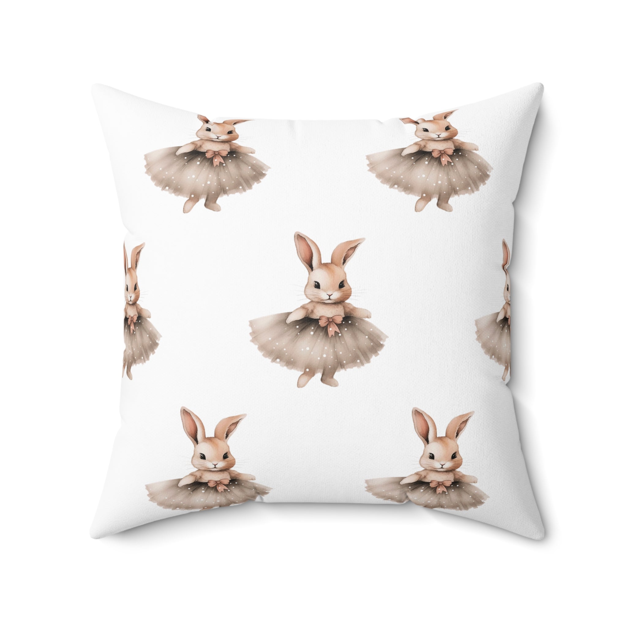 Spun Polyester Square Pillow with Removable Cover Watercolor Ballerina Bunnies