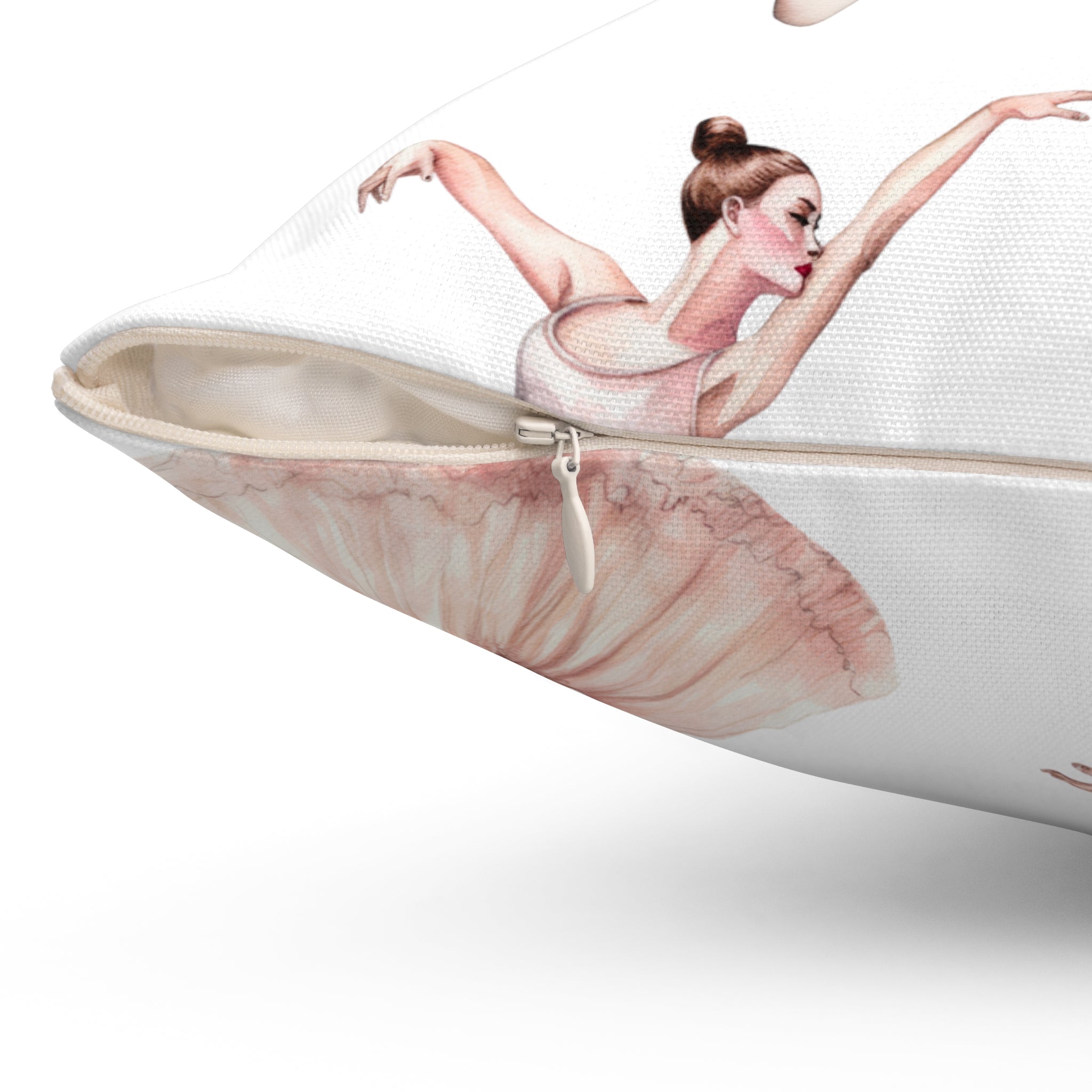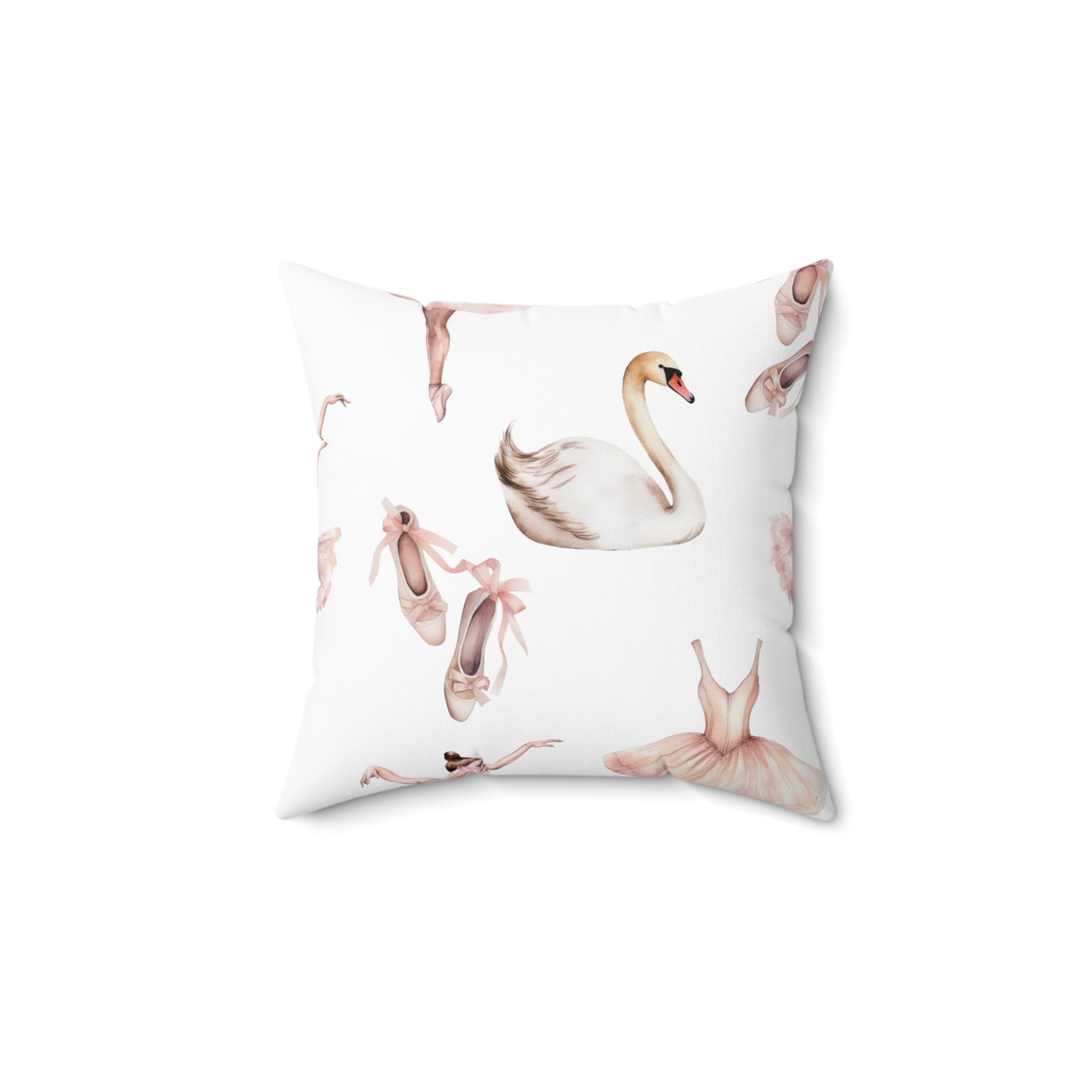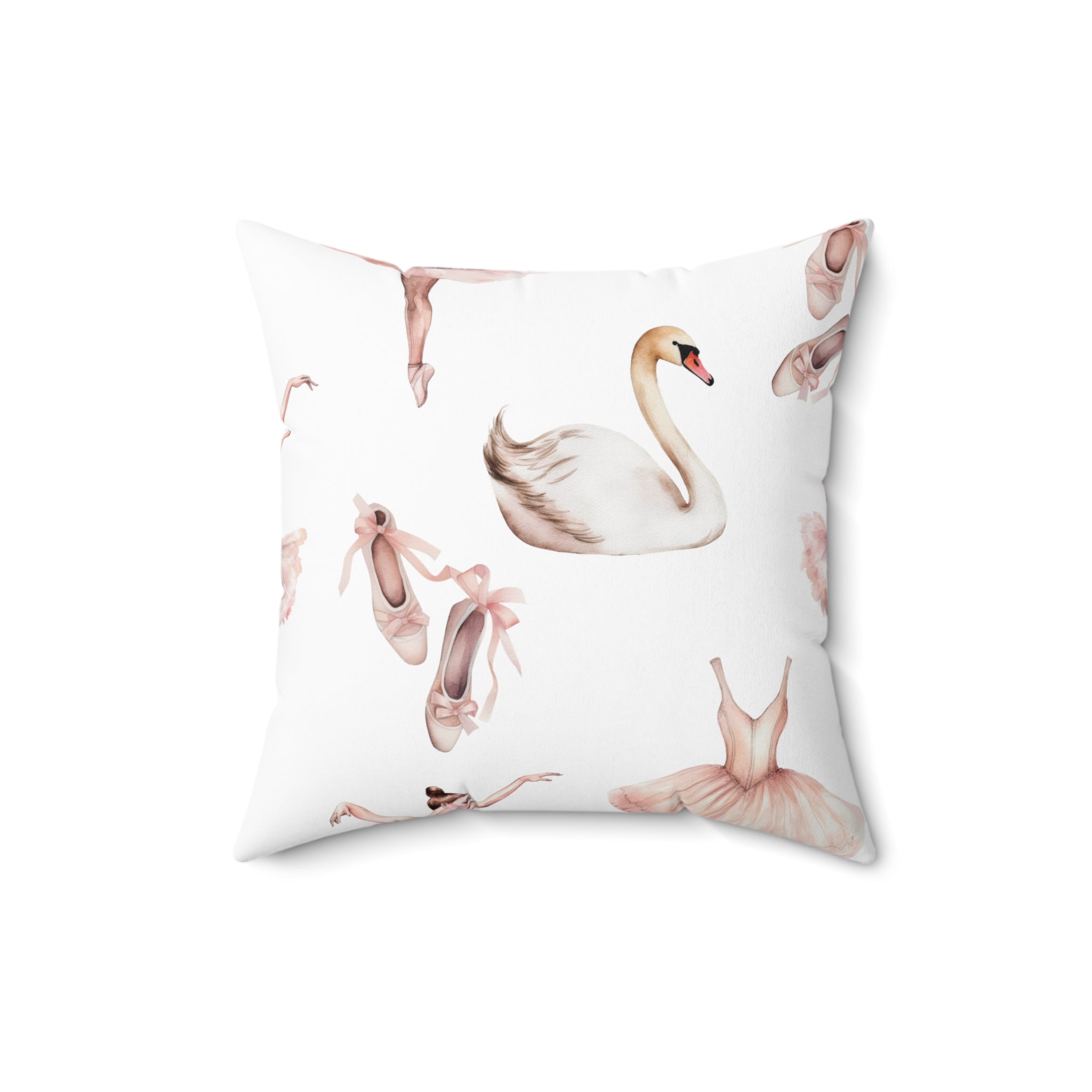 Spun Polyester Square Pillow with Removable Cover Watercolor Ballerina Swans Pink