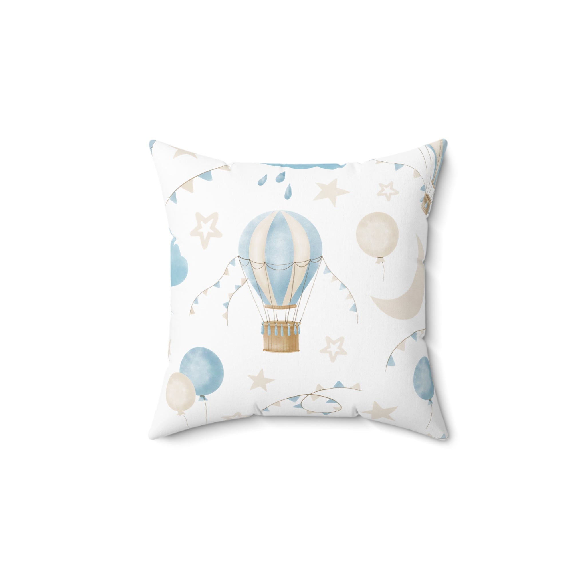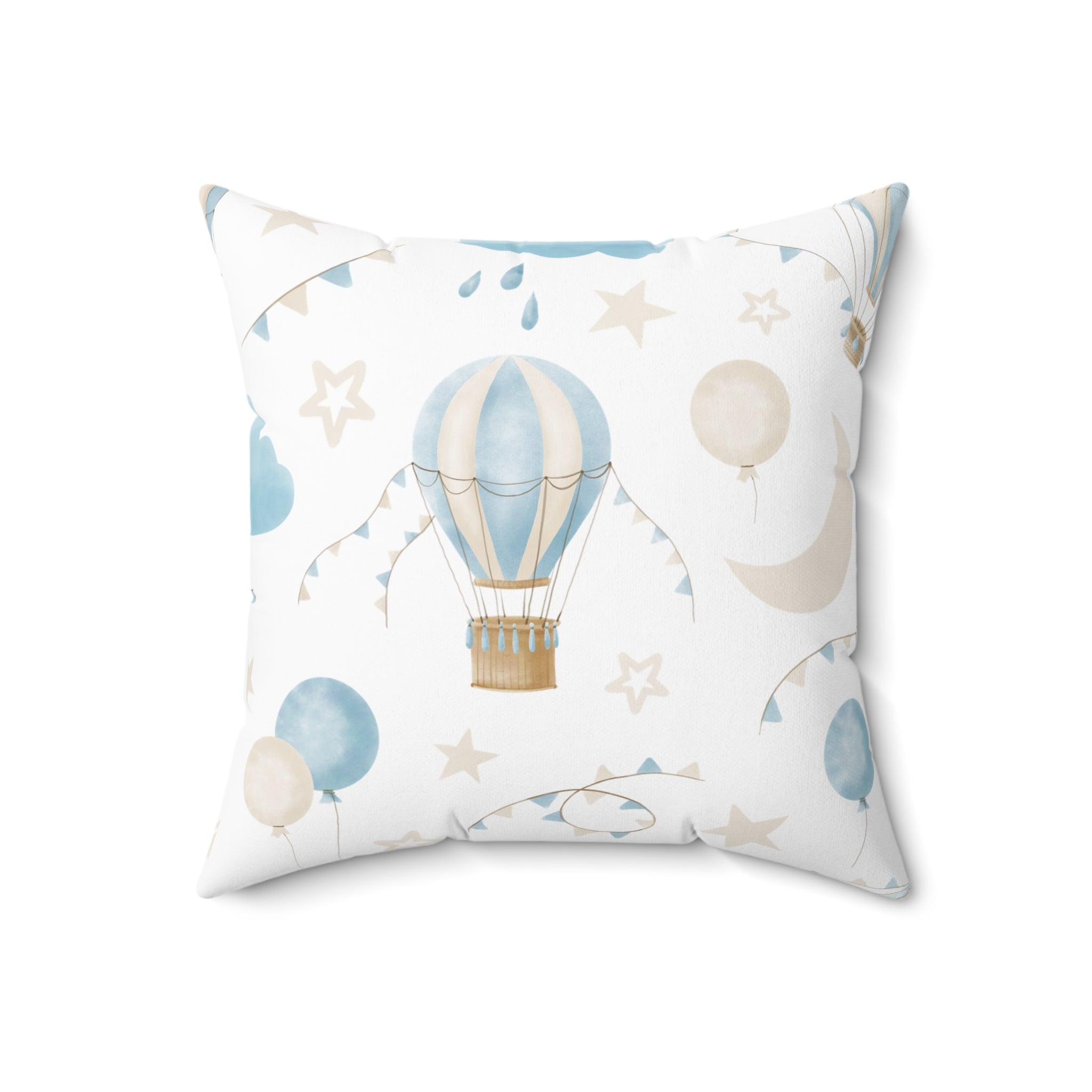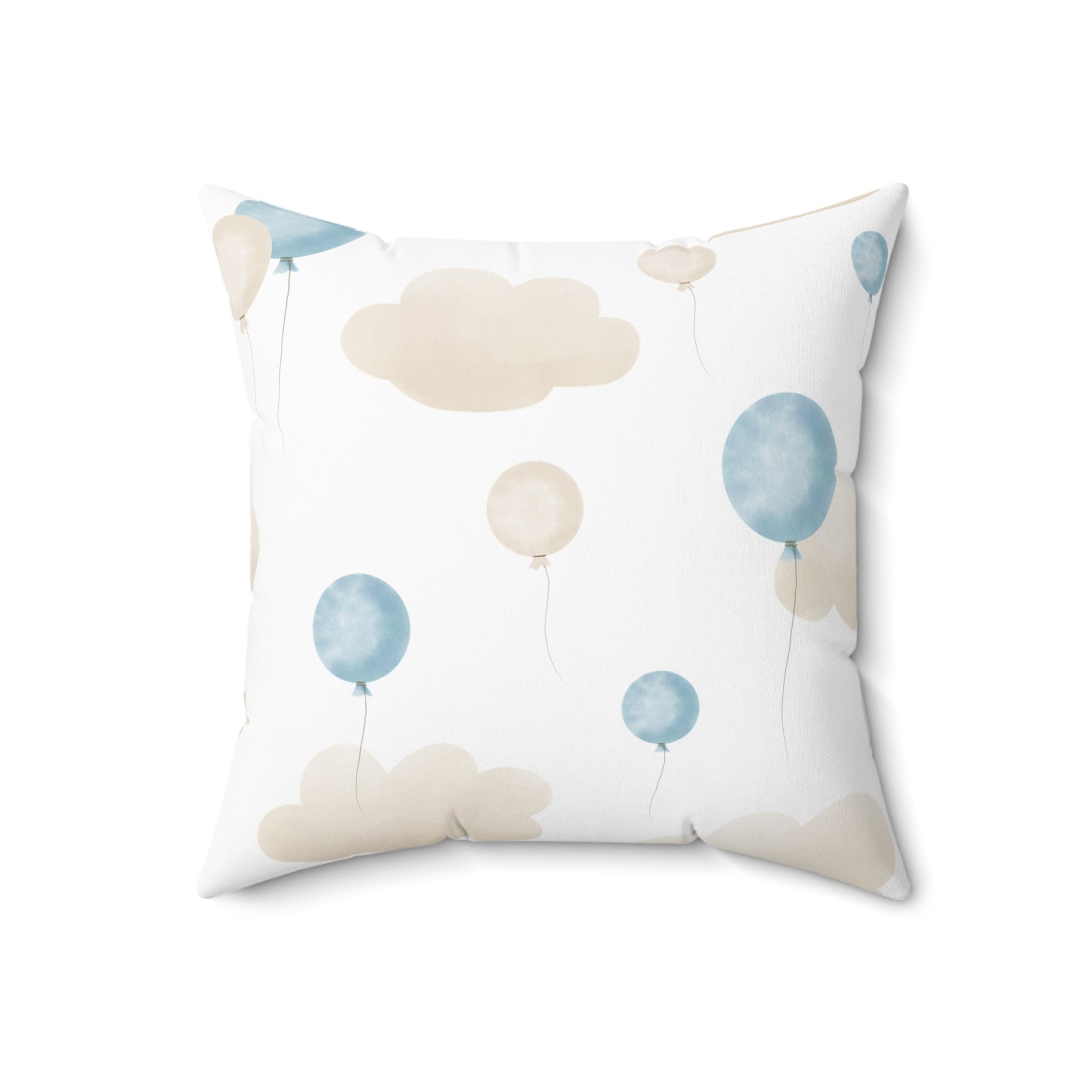 Spun Polyester Square Pillow with Removable Cover Watercolor Balloon Clouds Blue