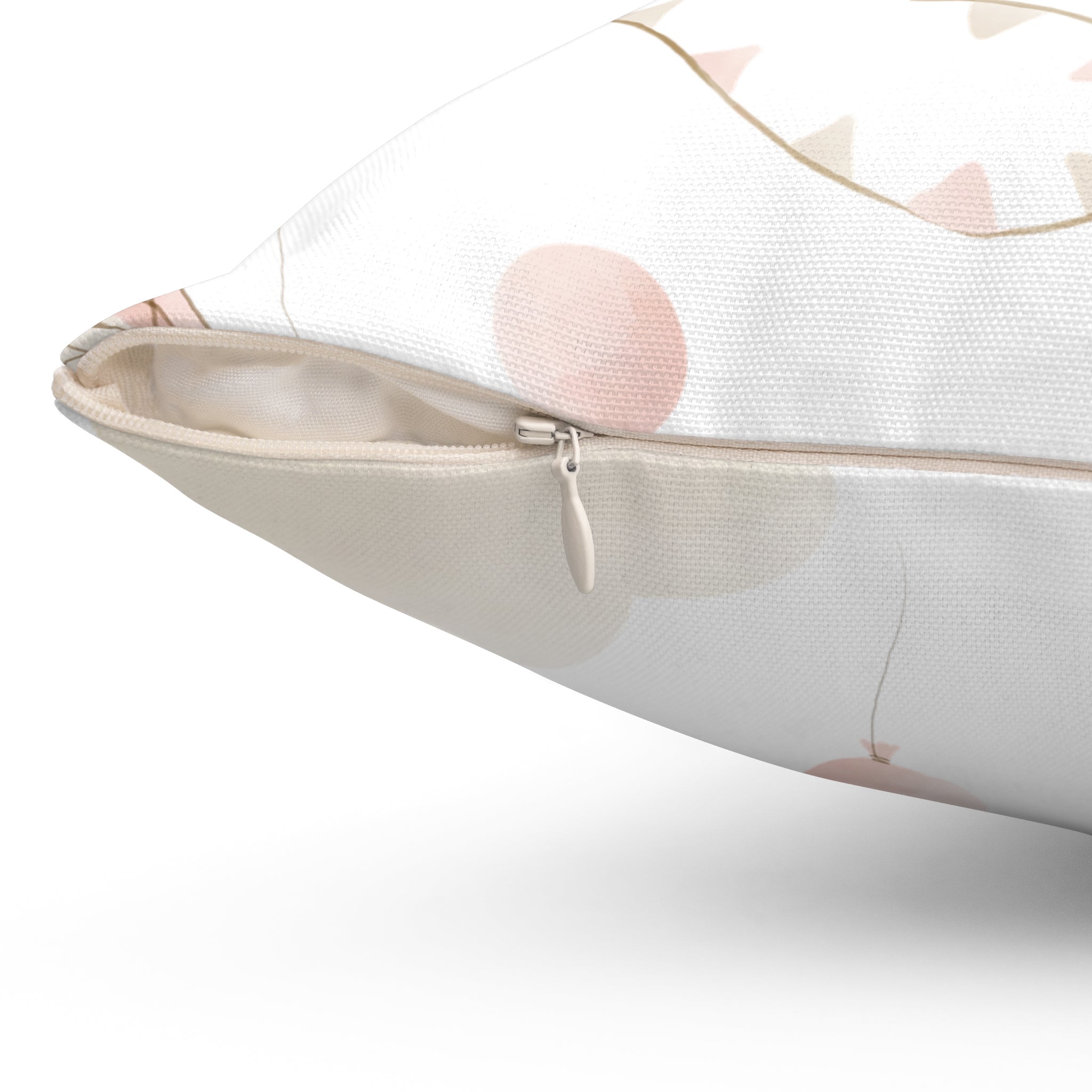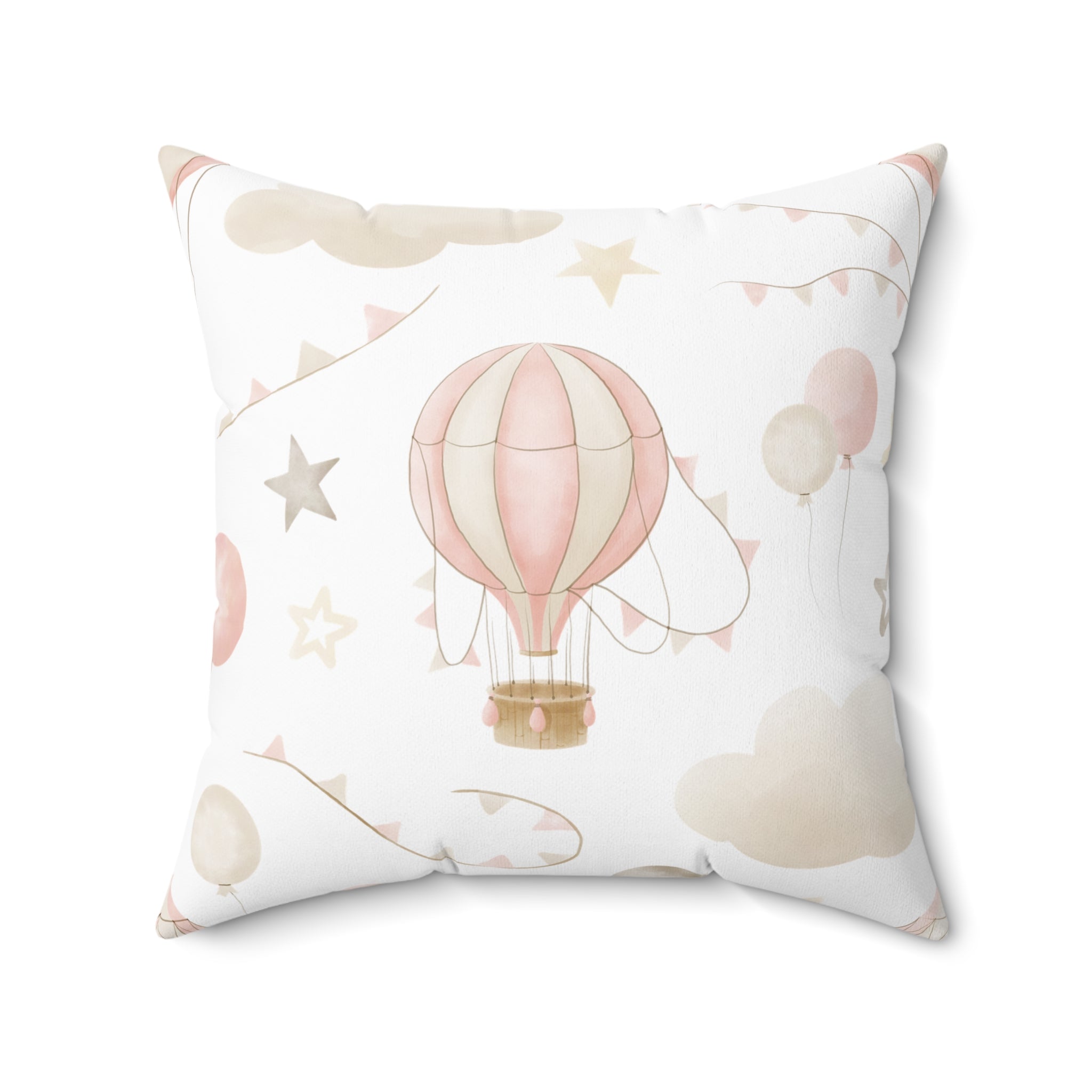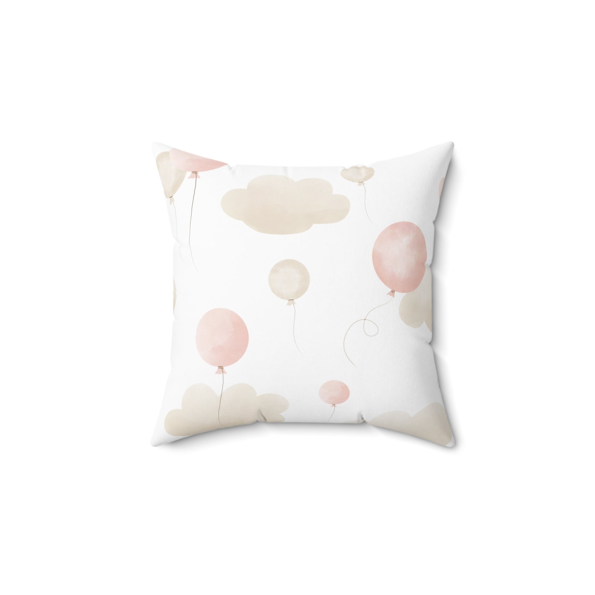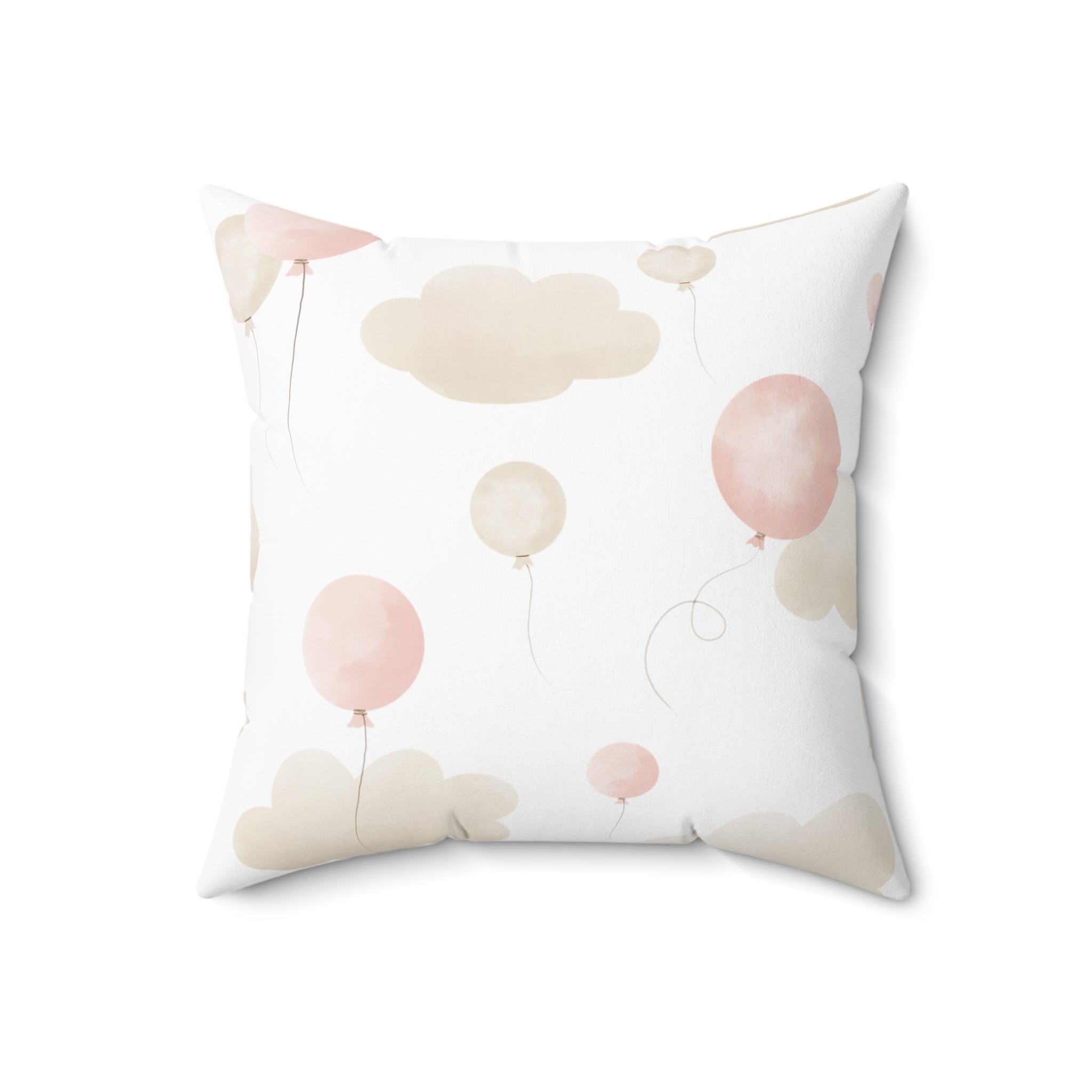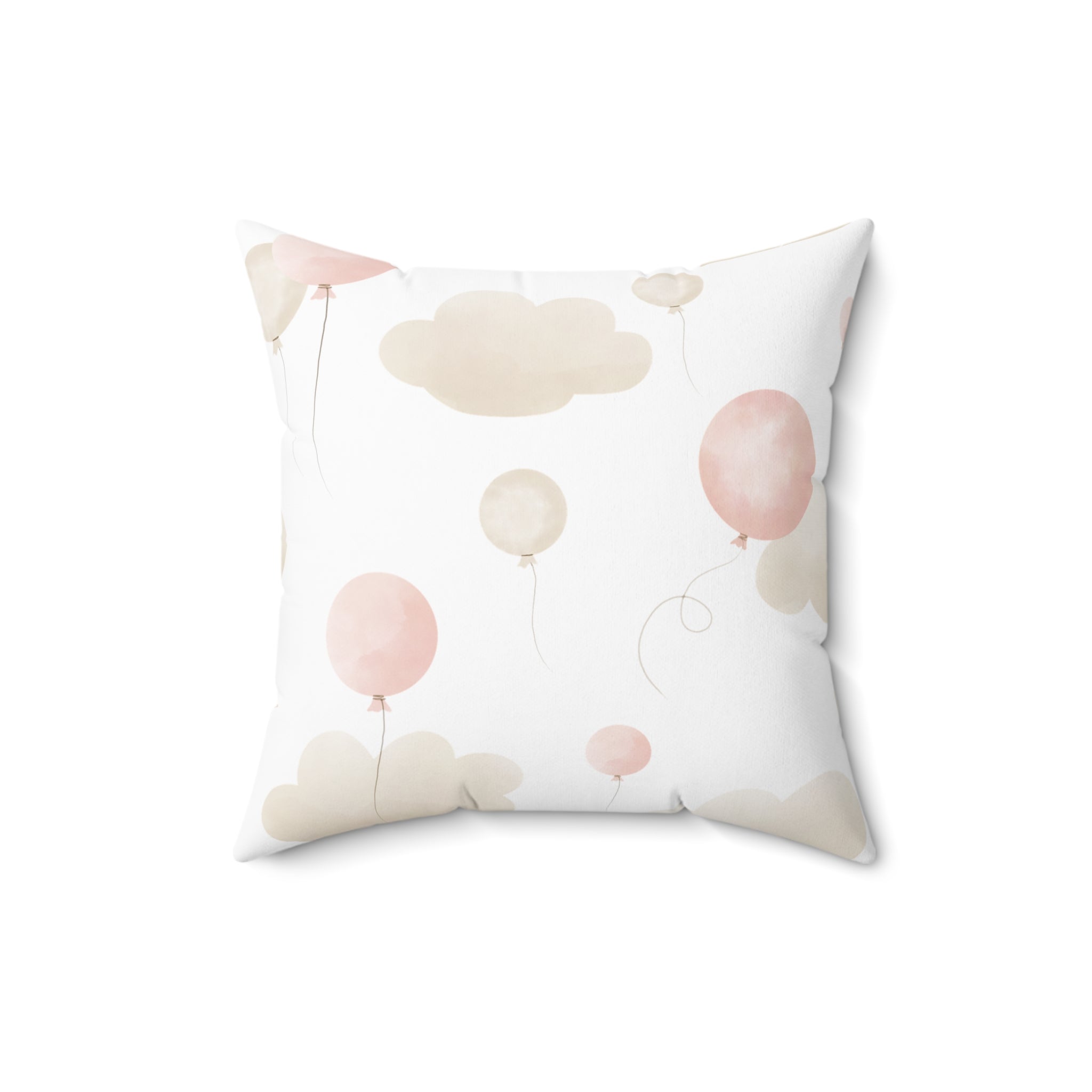 Spun Polyester Square Pillow with Removable Cover Watercolor Balloon Clouds Pink