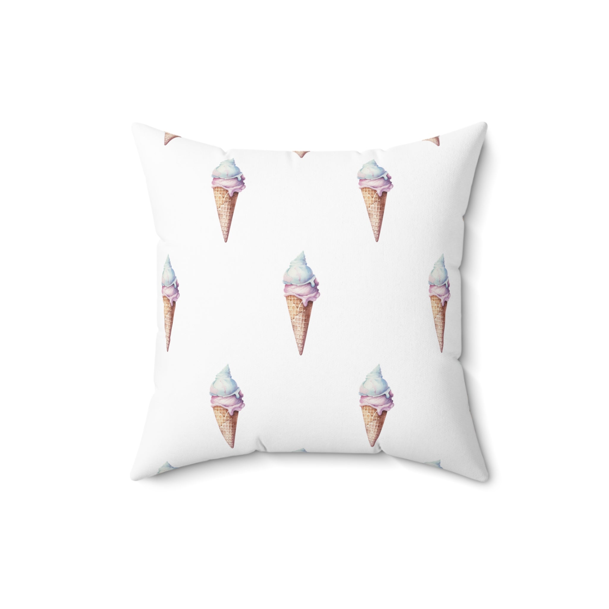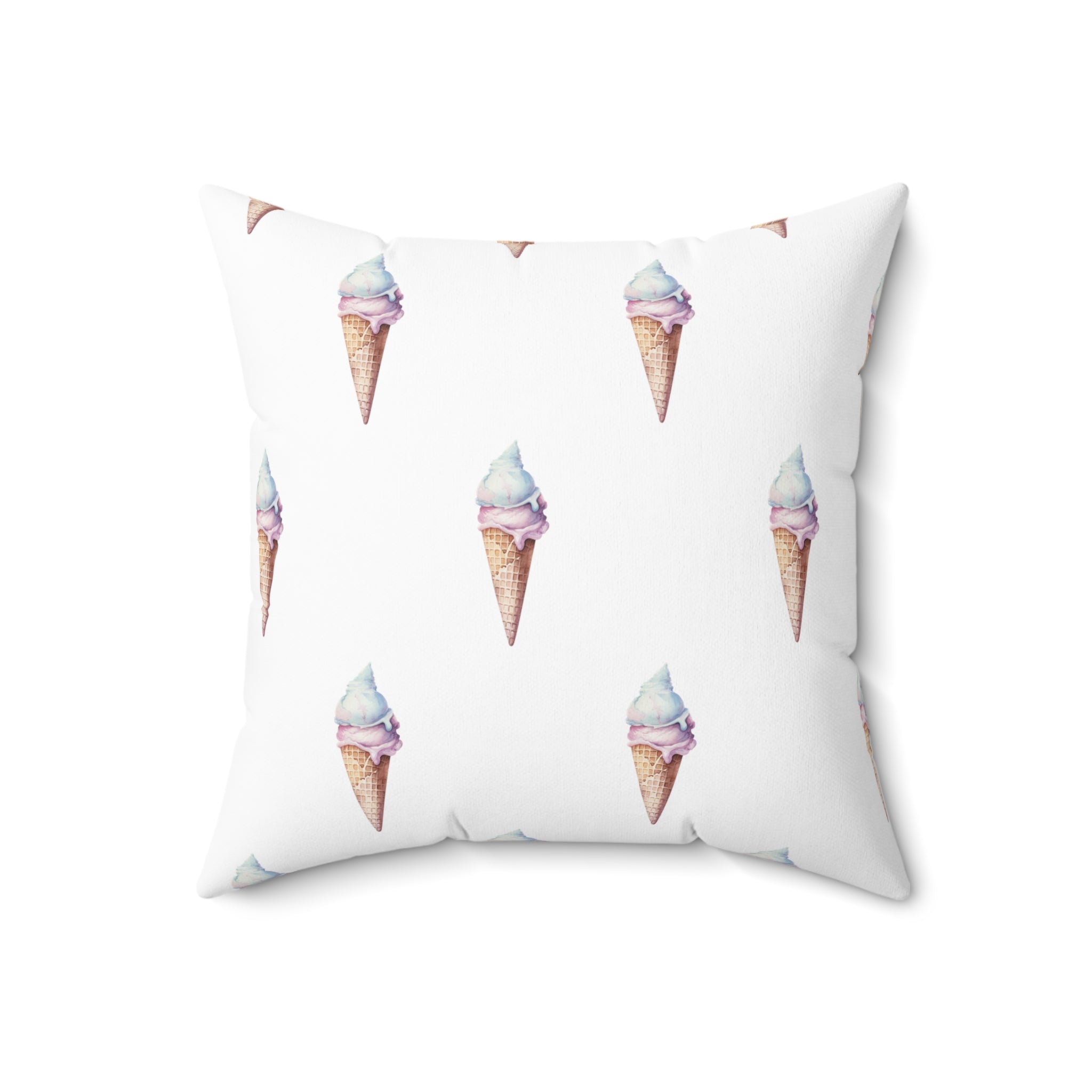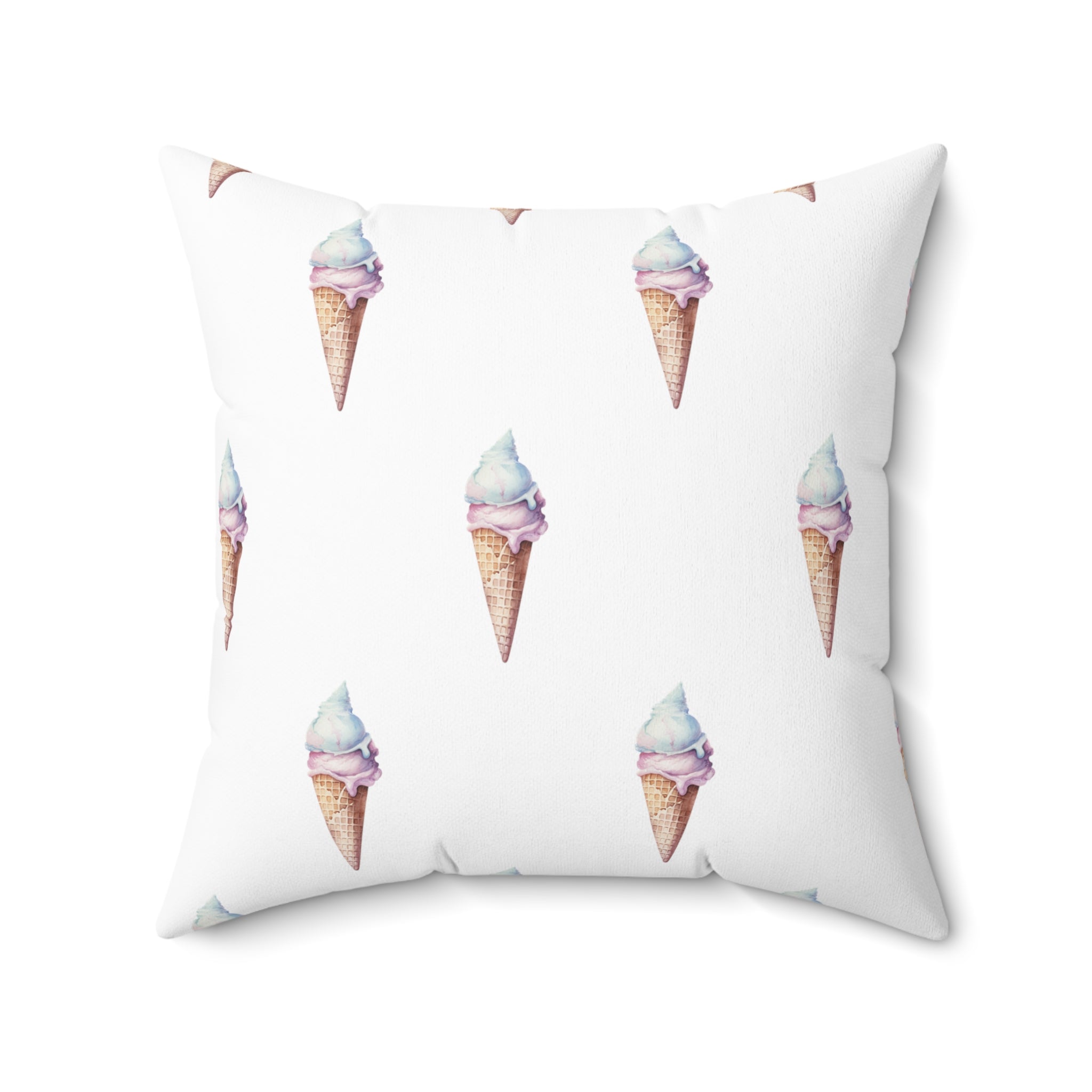Spun Polyester Square Pillow with Removable Cover Watercolor Candy Land Ice Cream Cone