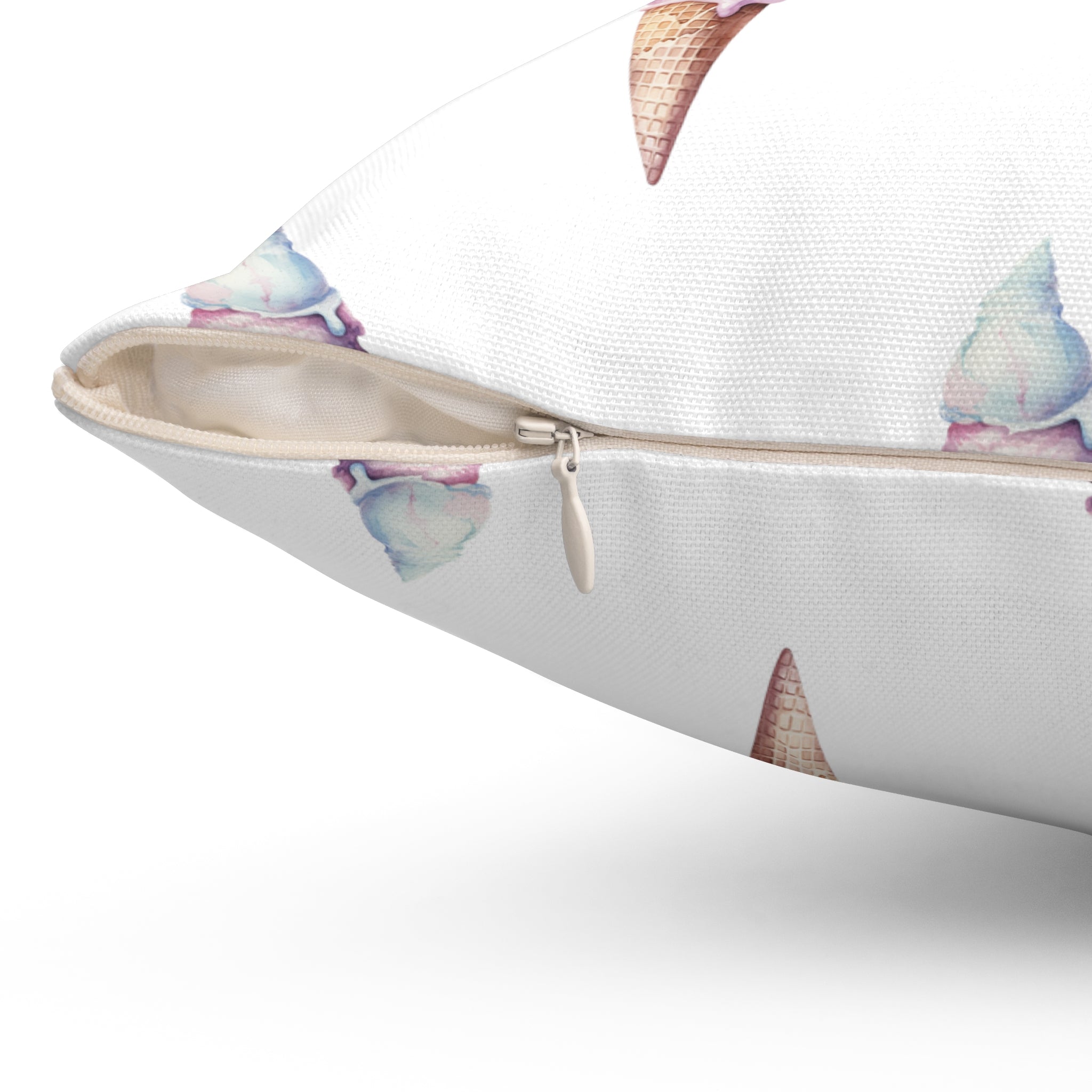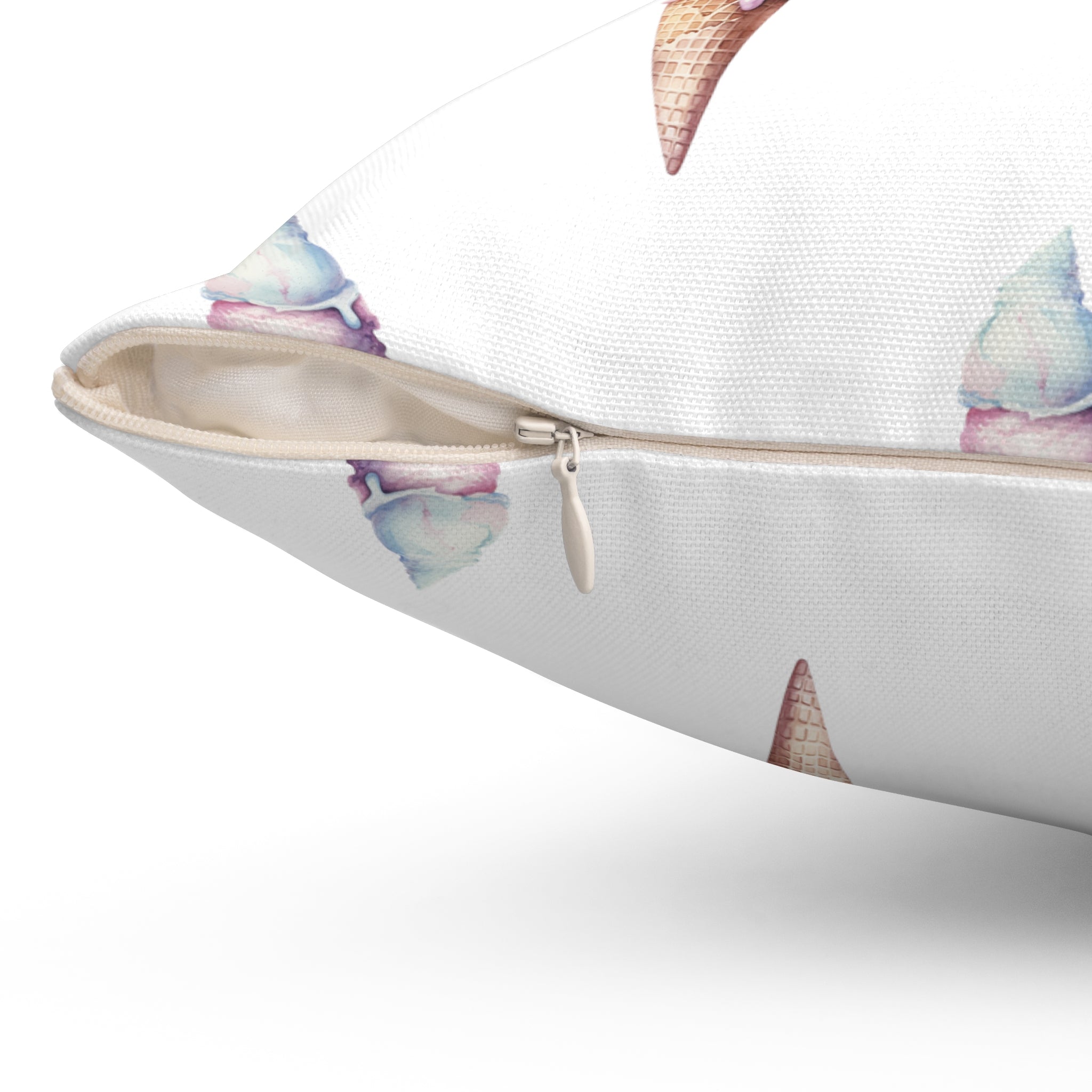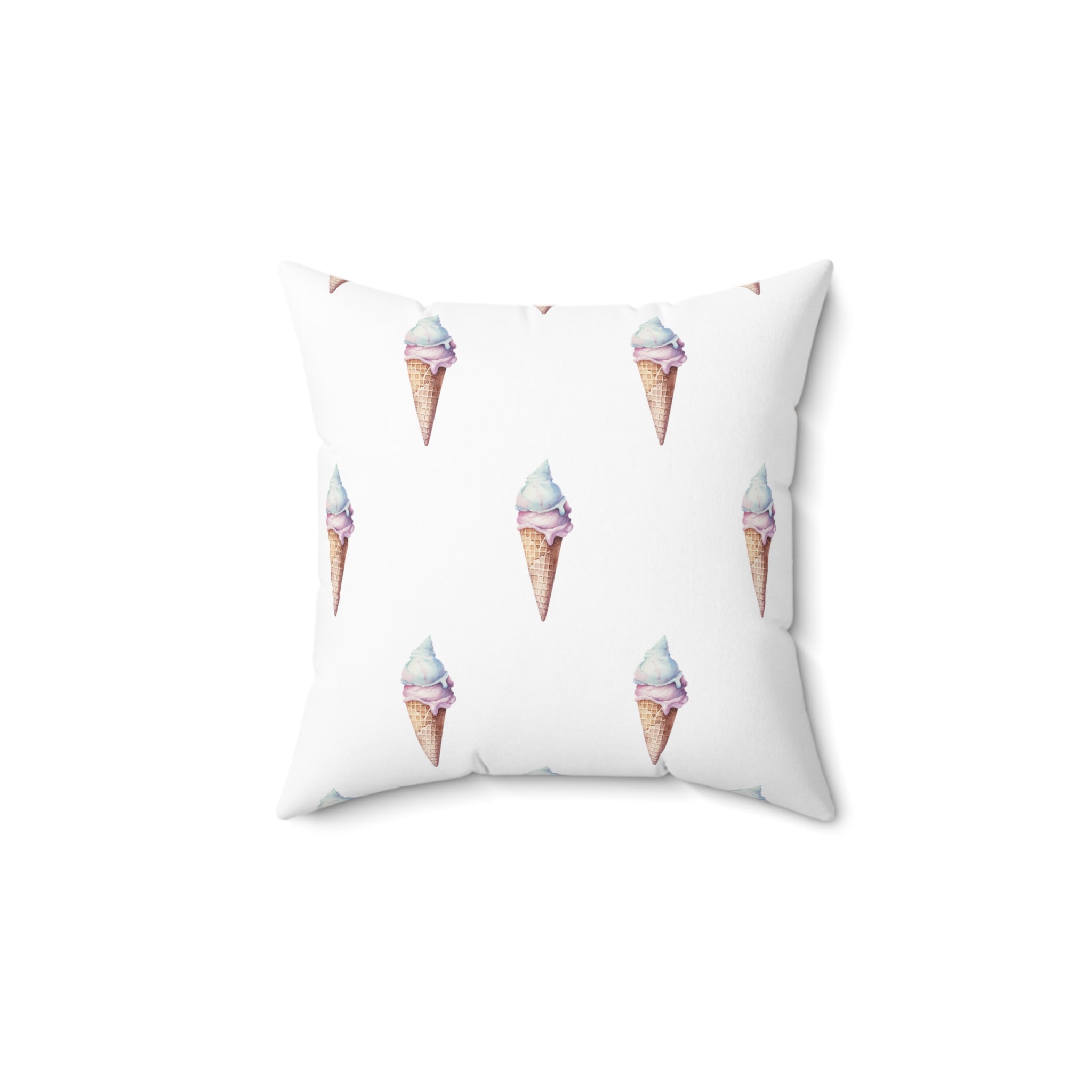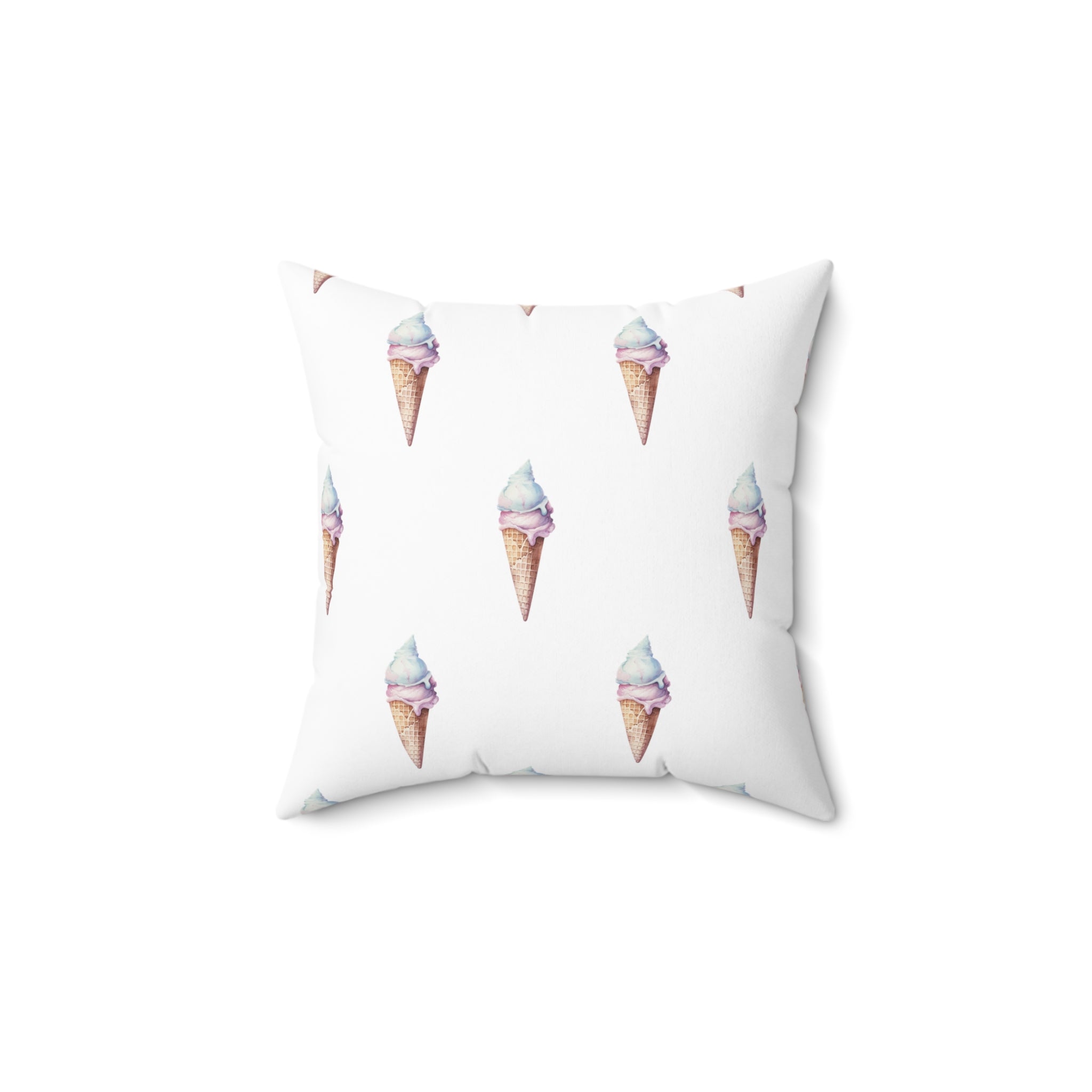 Spun Polyester Square Pillow with Removable Cover Watercolor Candy Land Ice Cream Cone