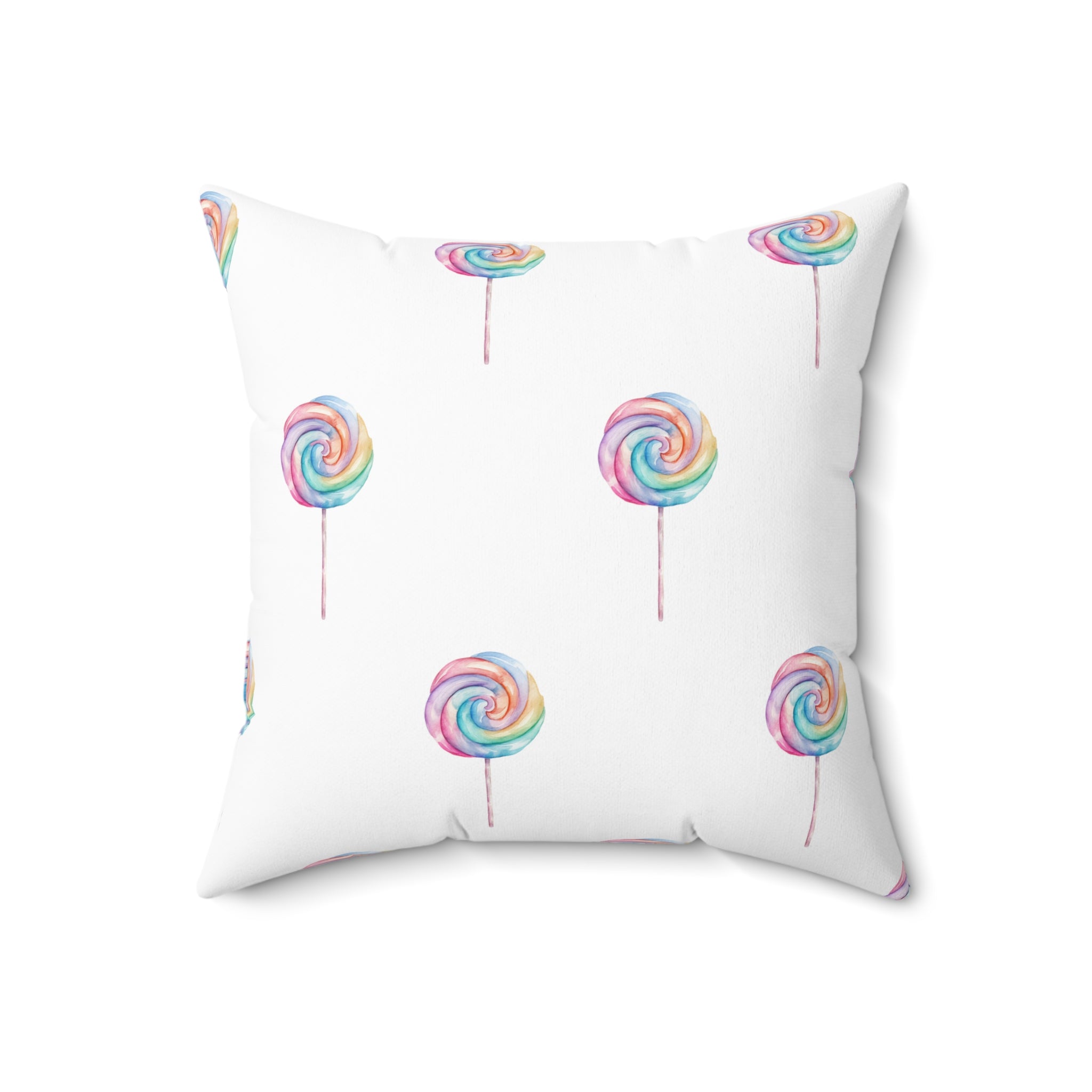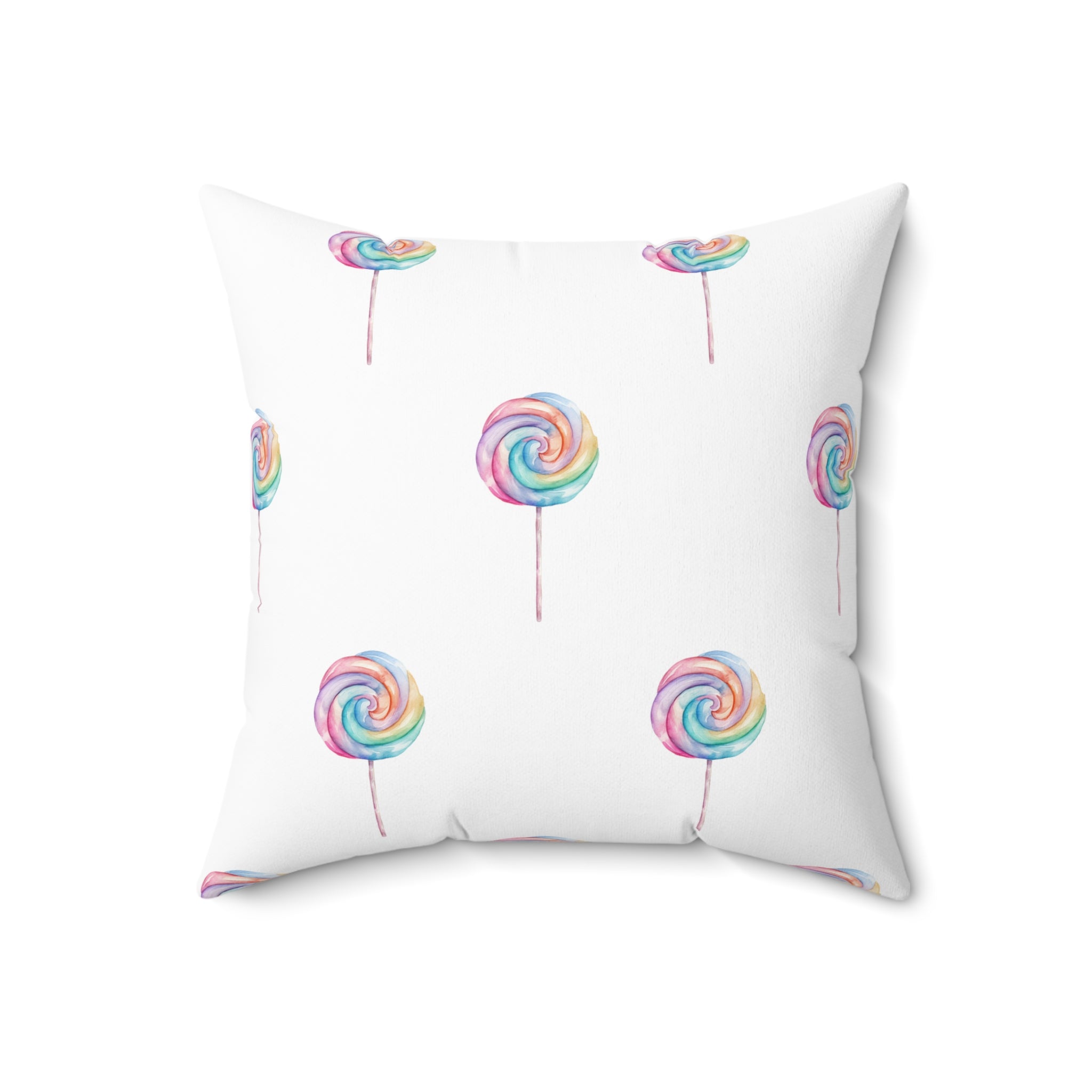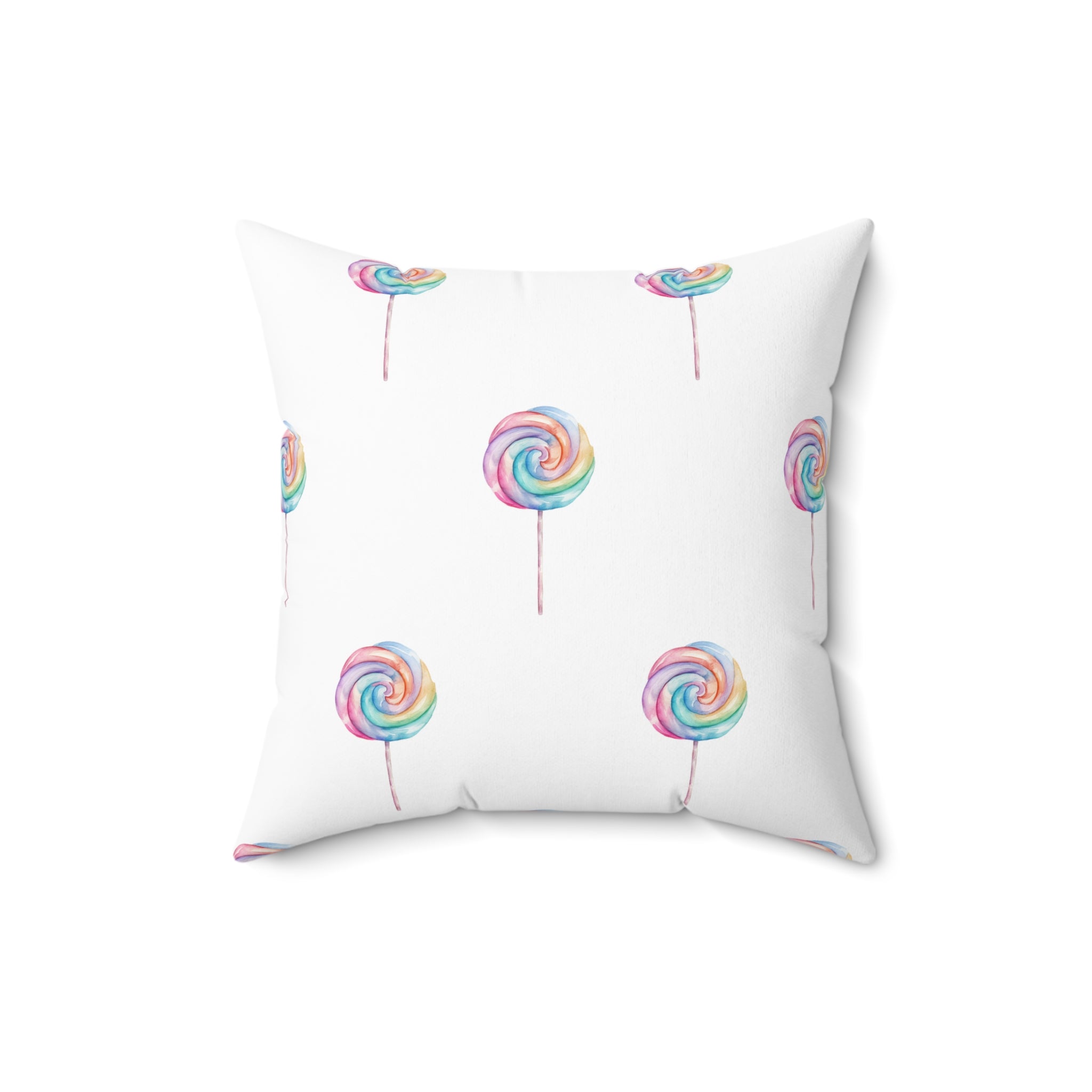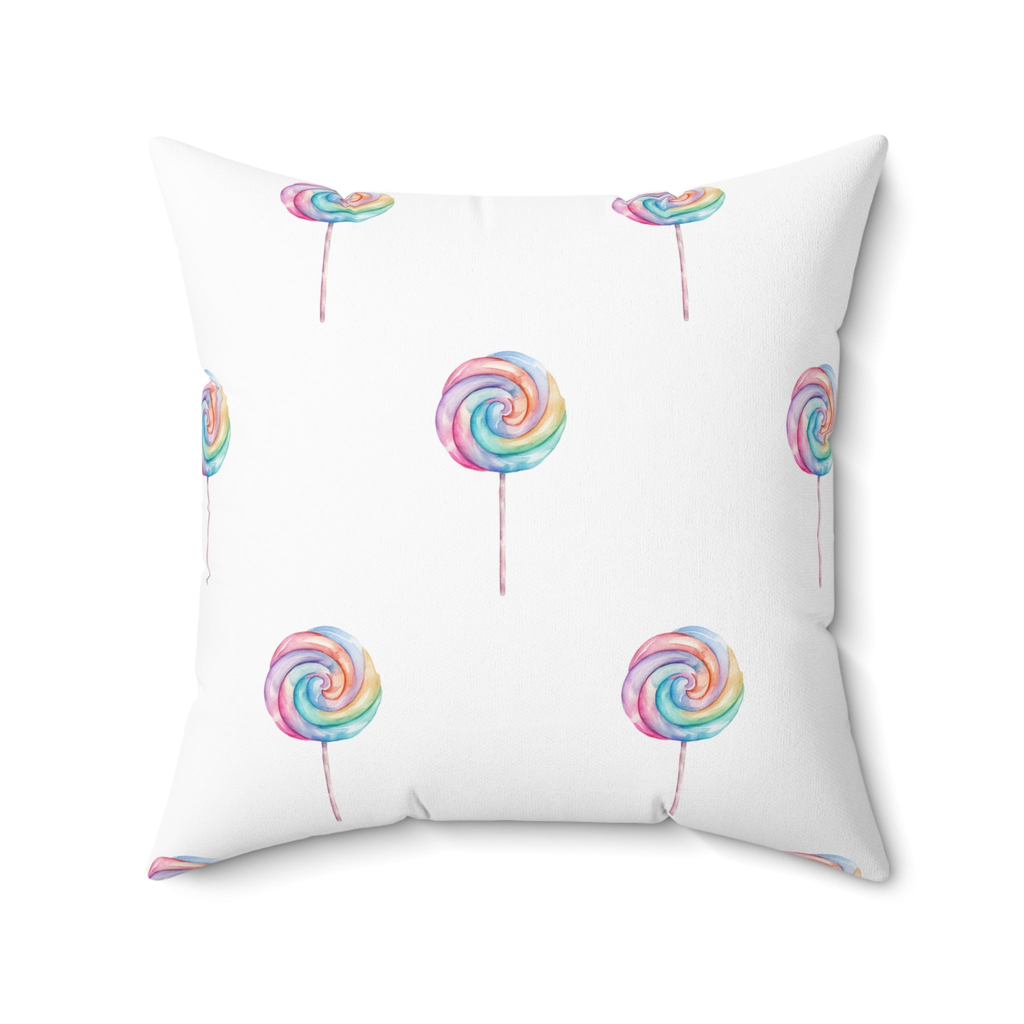 Spun Polyester Square Pillow with Removable Cover Watercolor Candy Land Lollipops