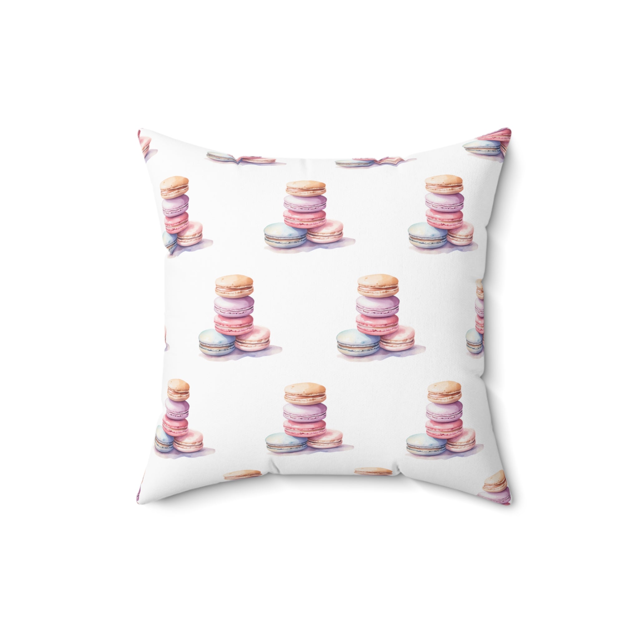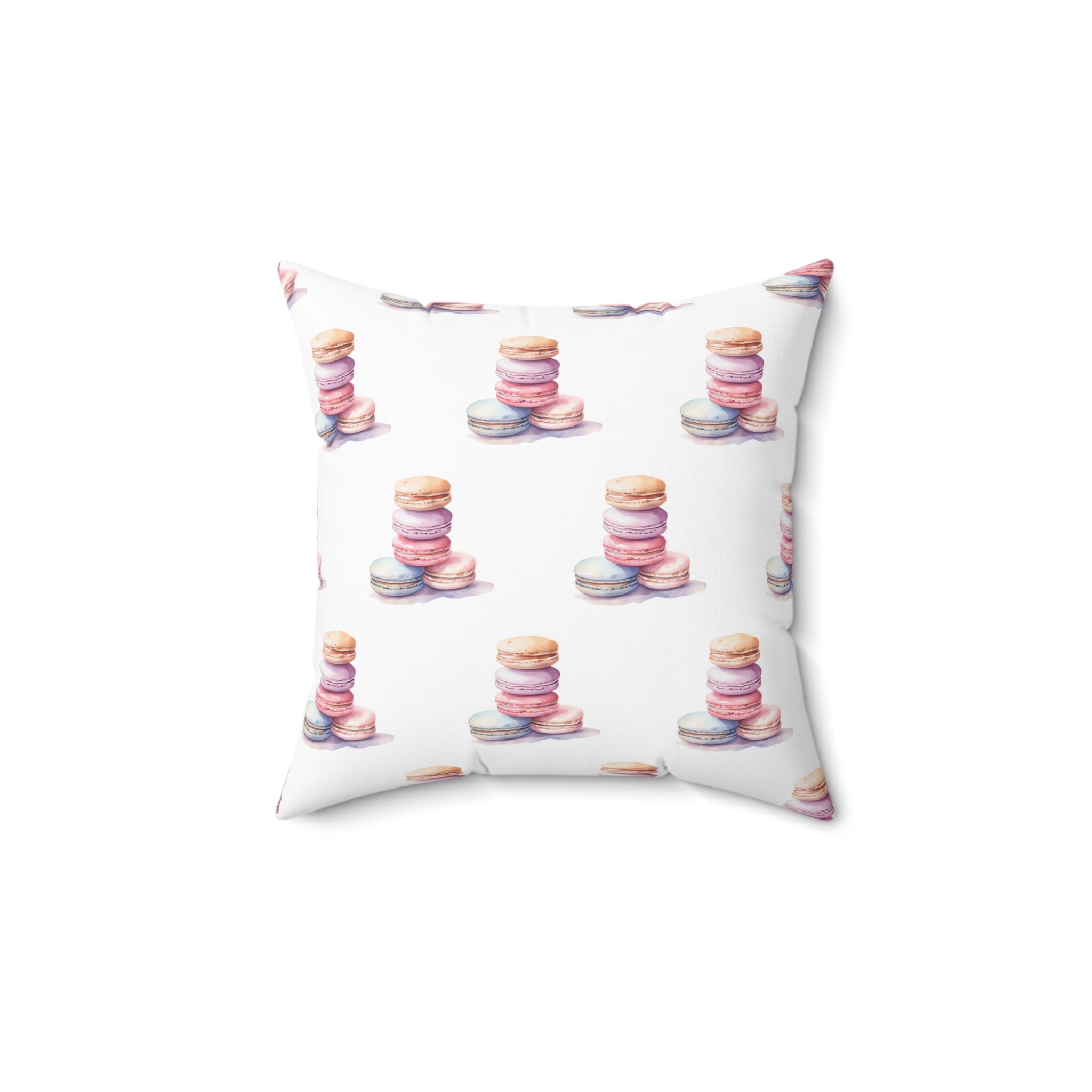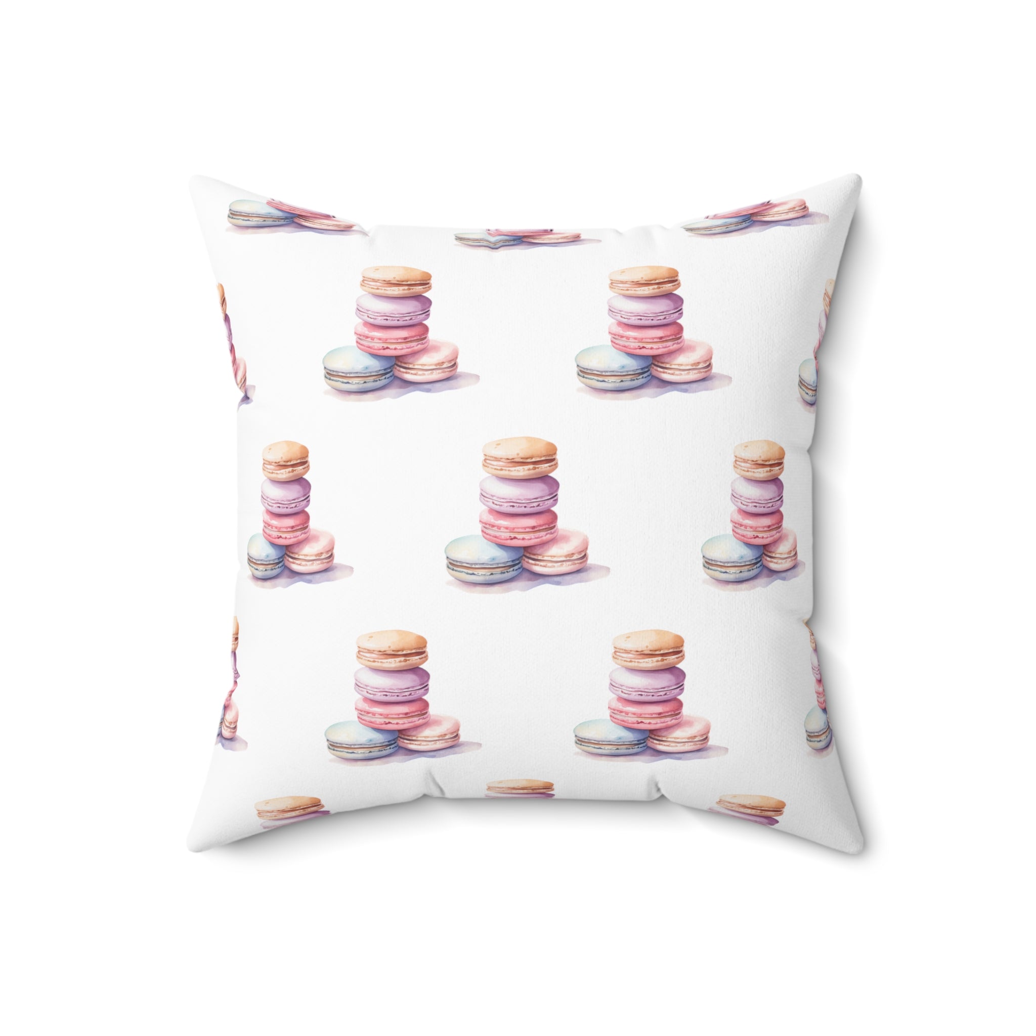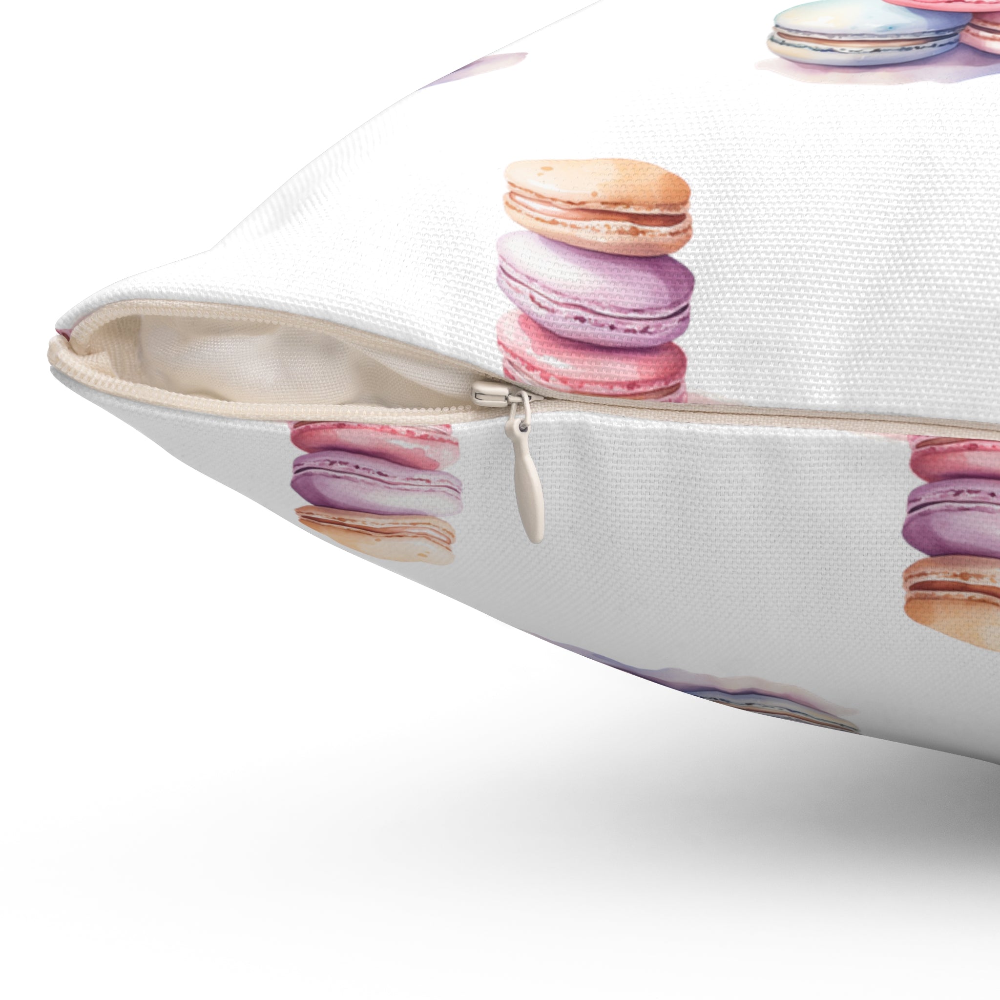Spun Polyester Square Pillow with Removable Cover Watercolor Candy Land Macarons