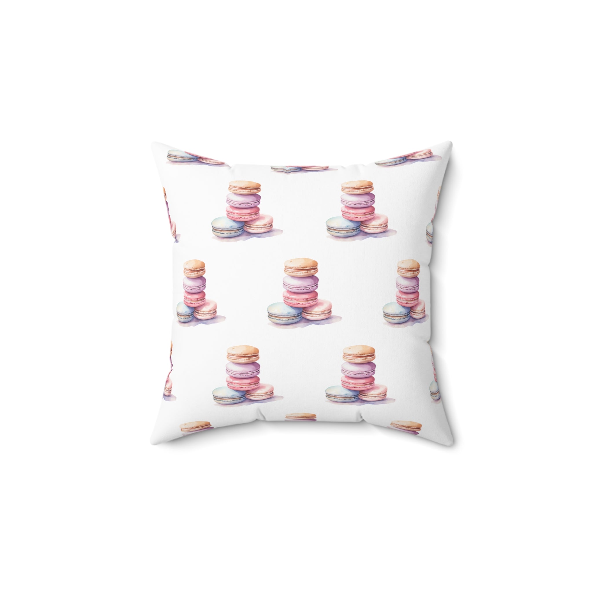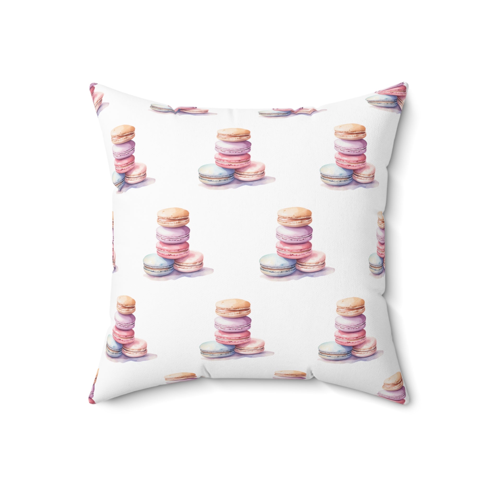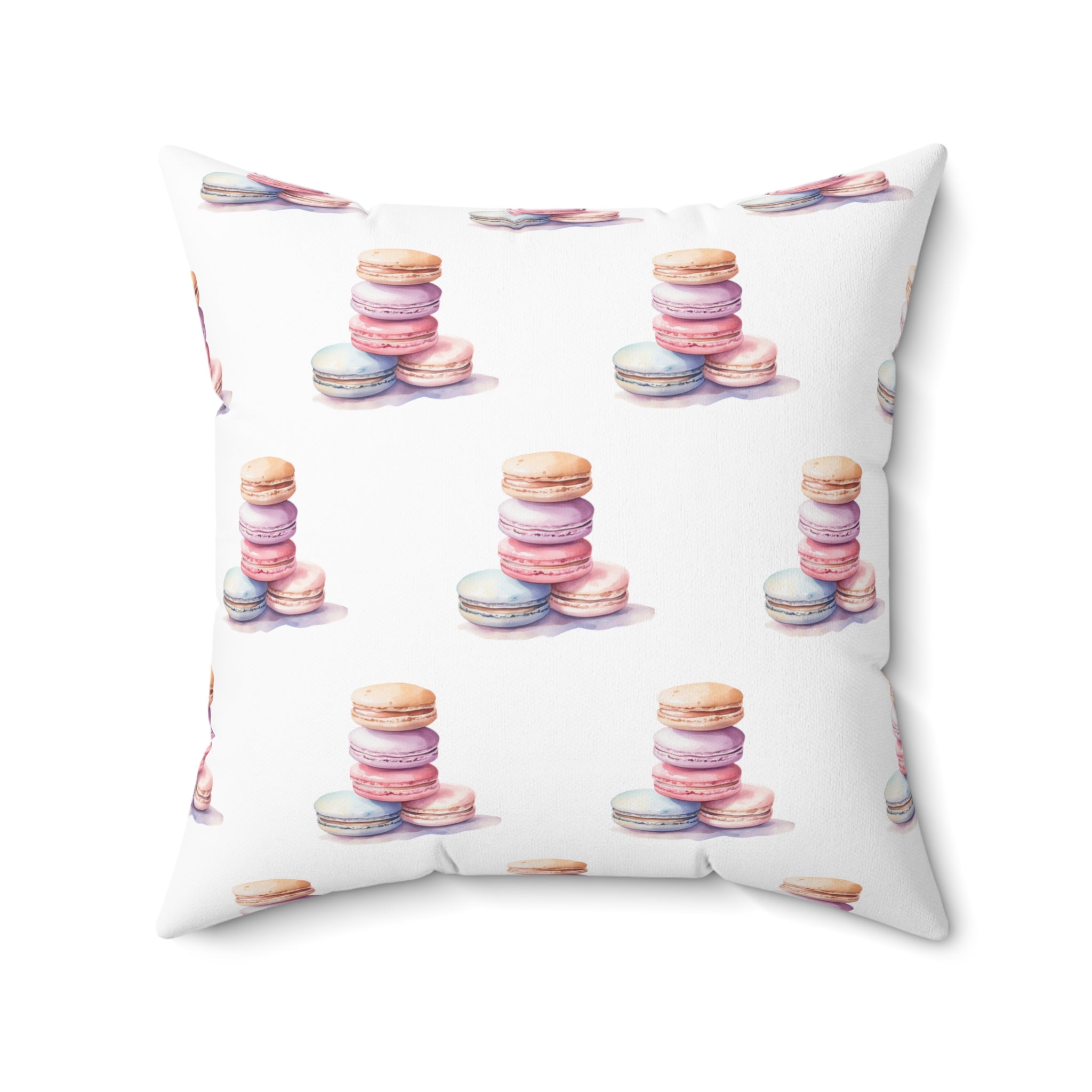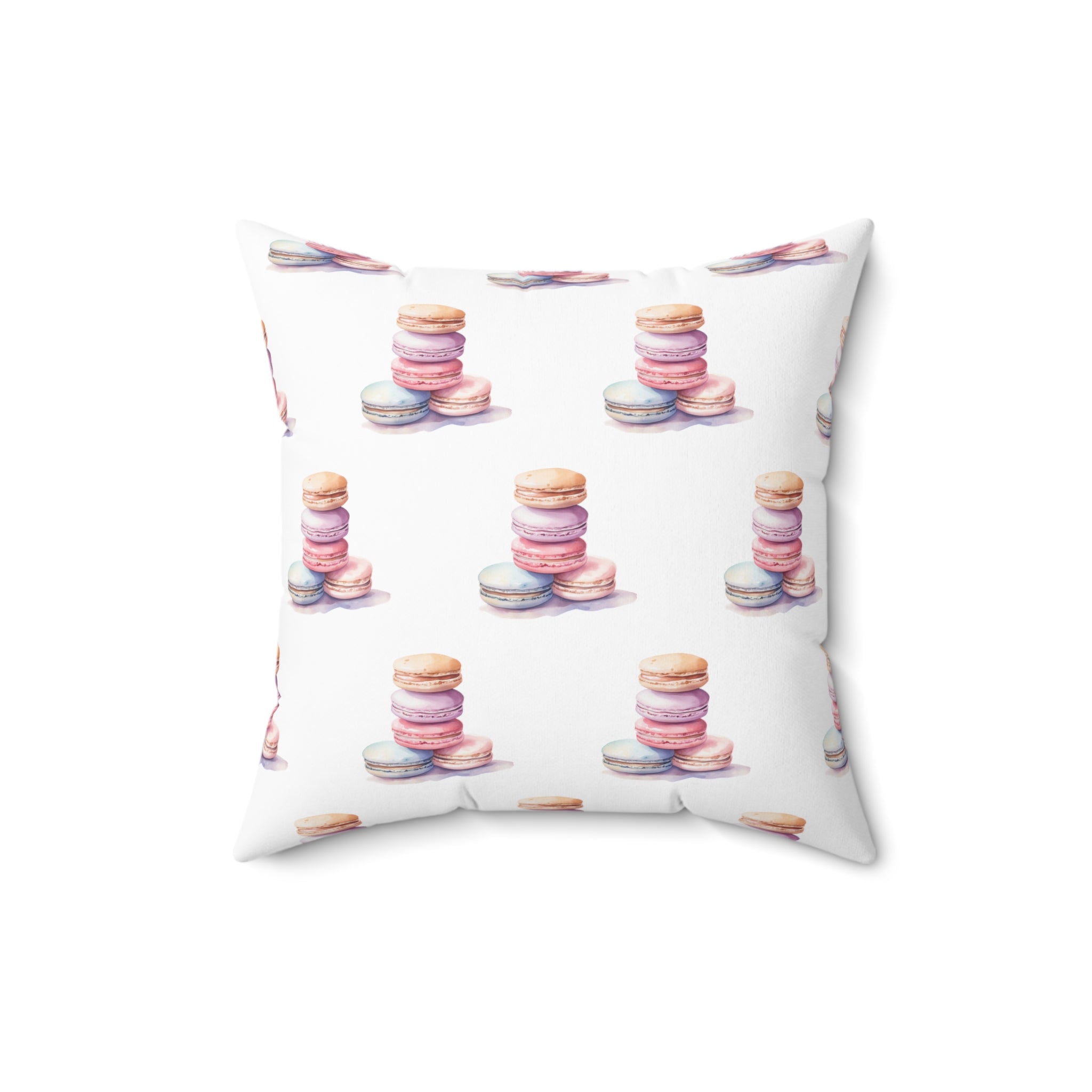 Spun Polyester Square Pillow with Removable Cover Watercolor Candy Land Macarons