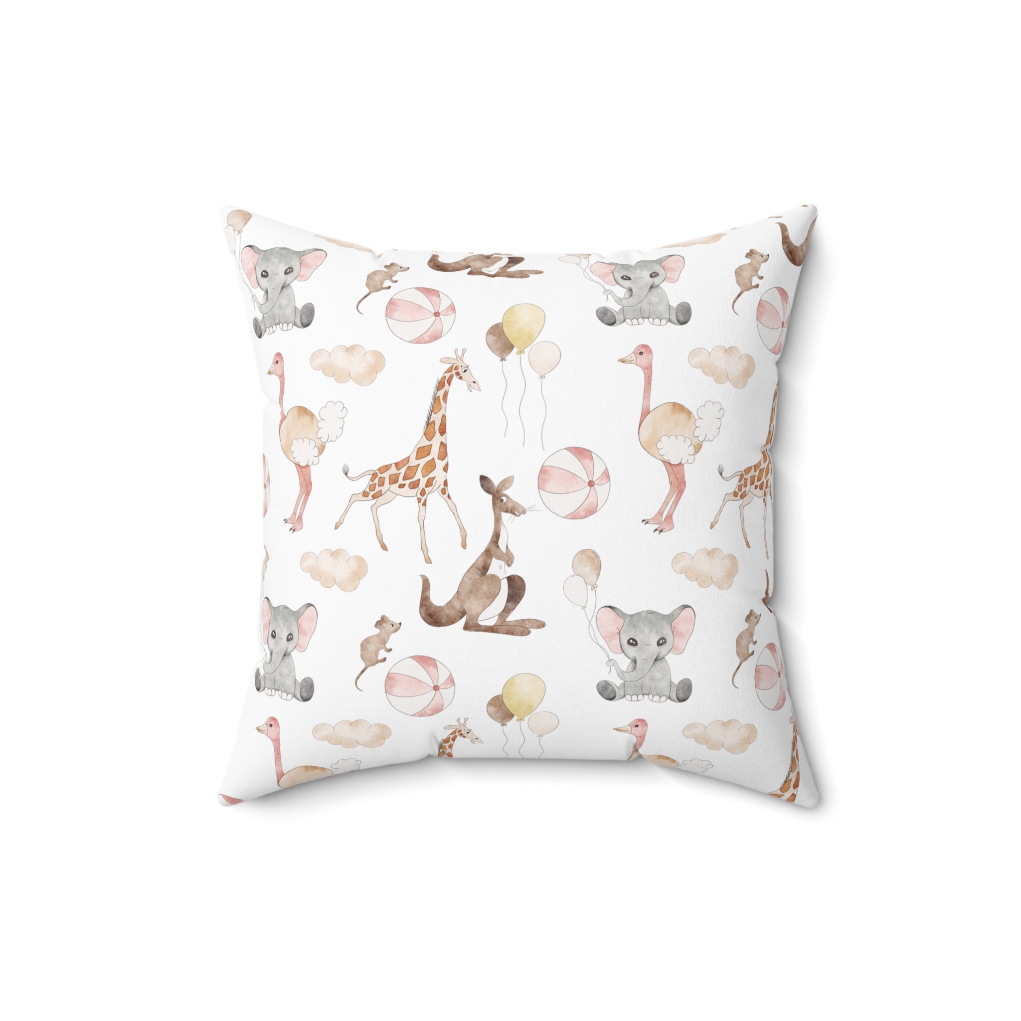 Spun Polyester Square Pillow with Removable Cover Watercolor Circus Animals
