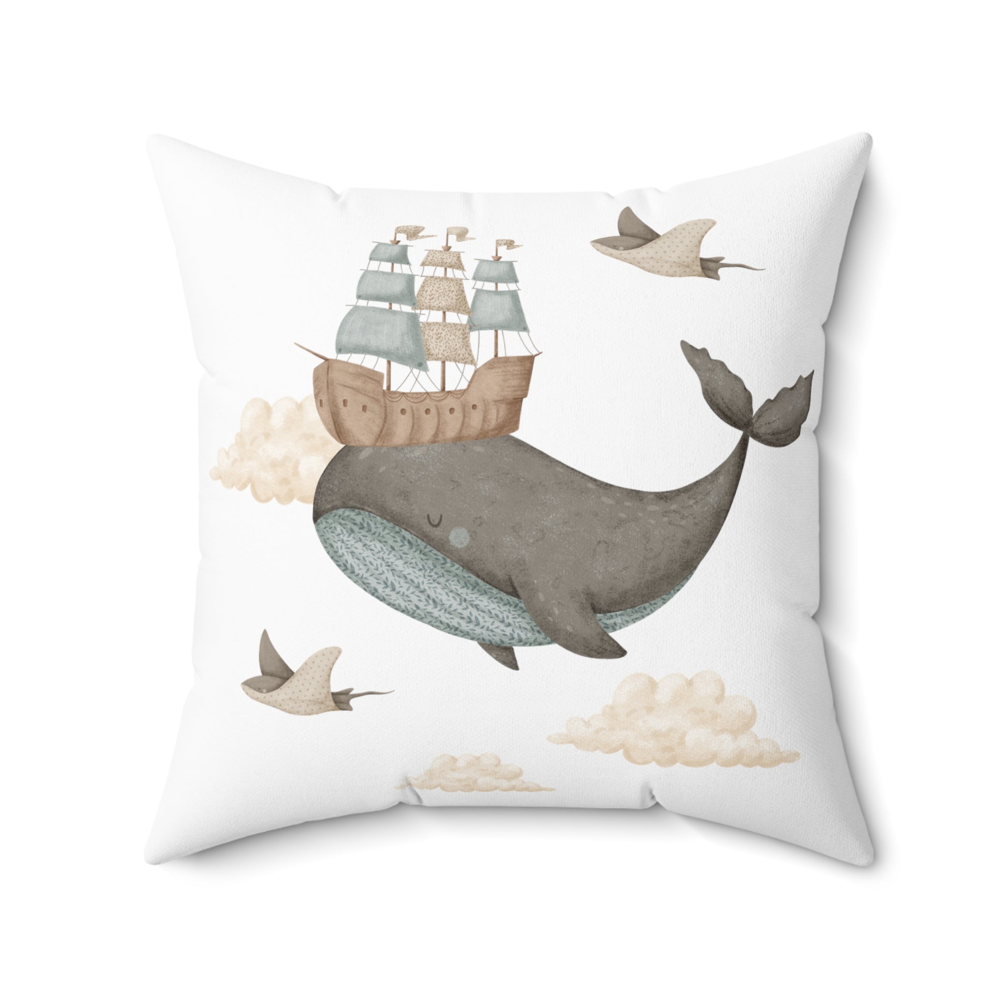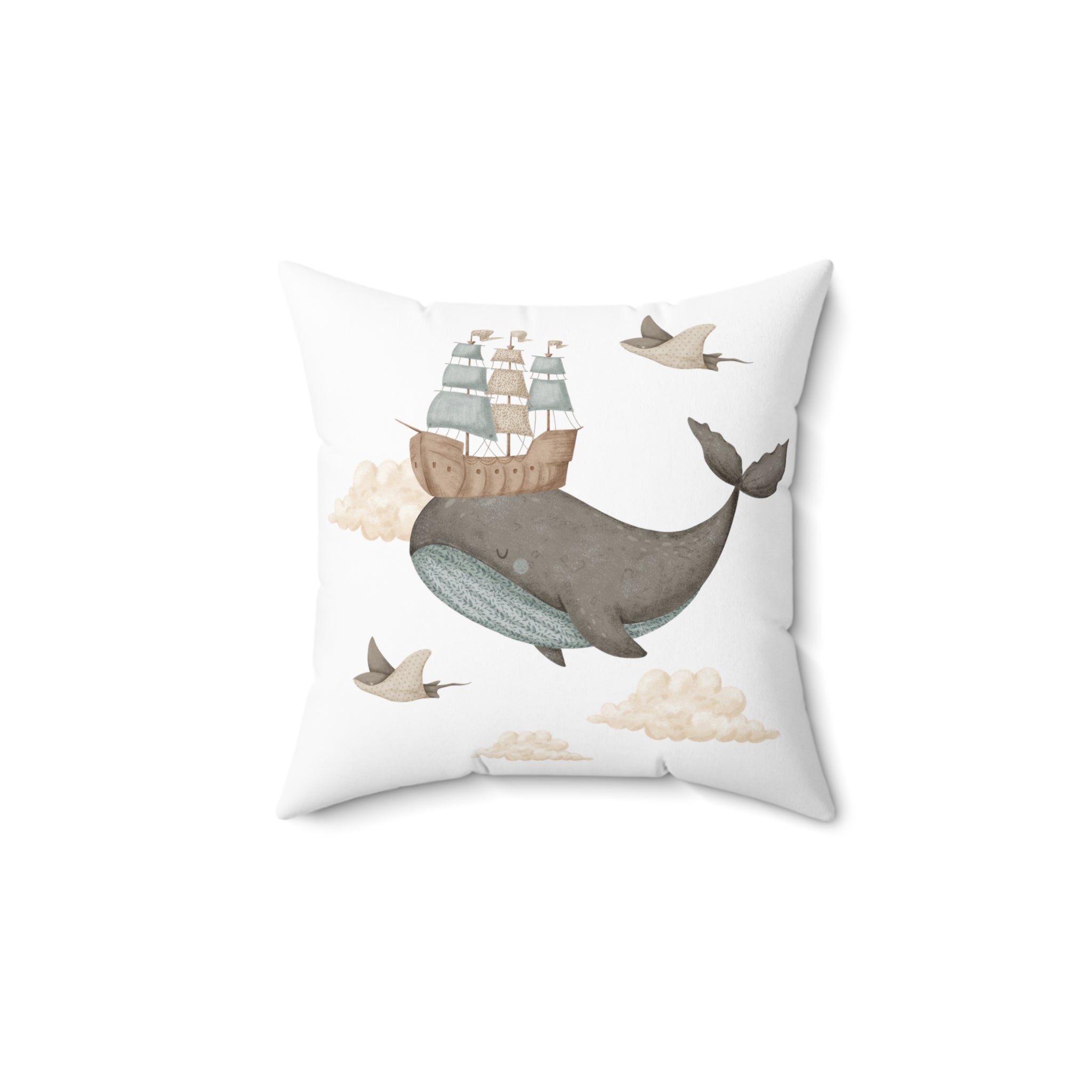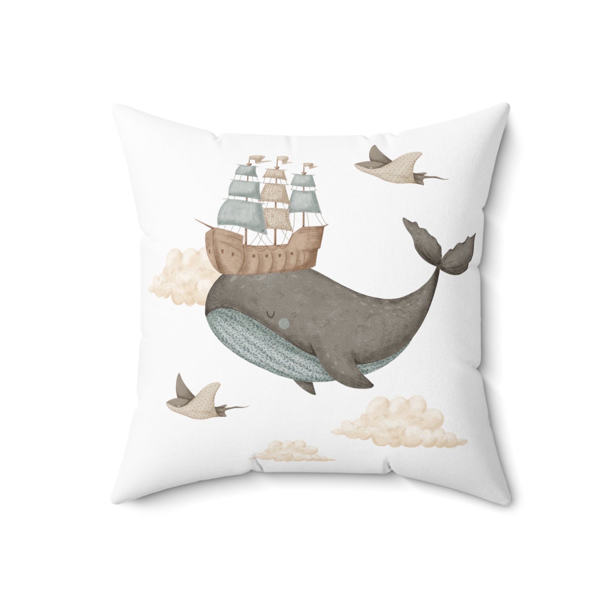 Spun Polyester Square Pillow with Removable Cover Watercolor Memories of Dreams Balloon Ship Whales