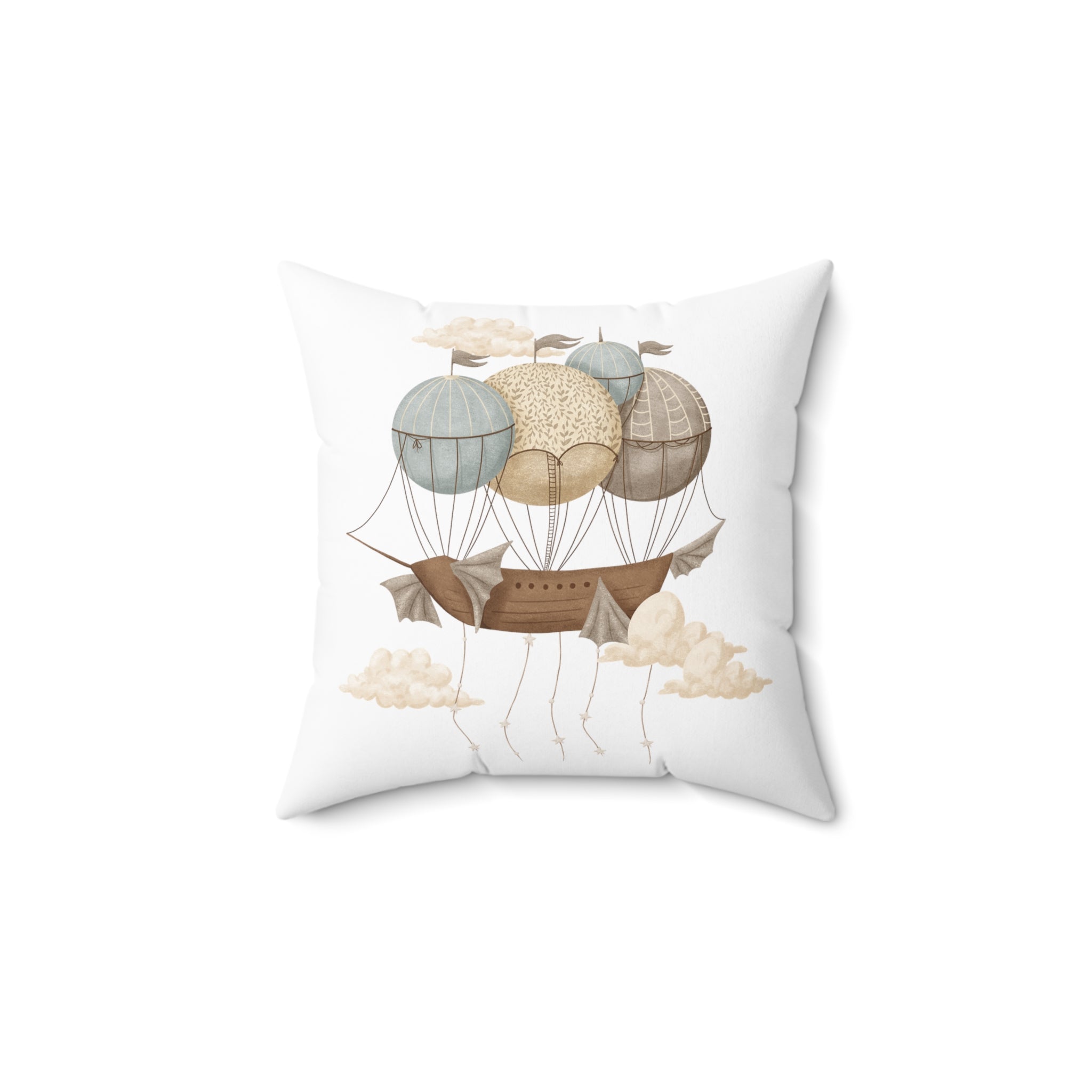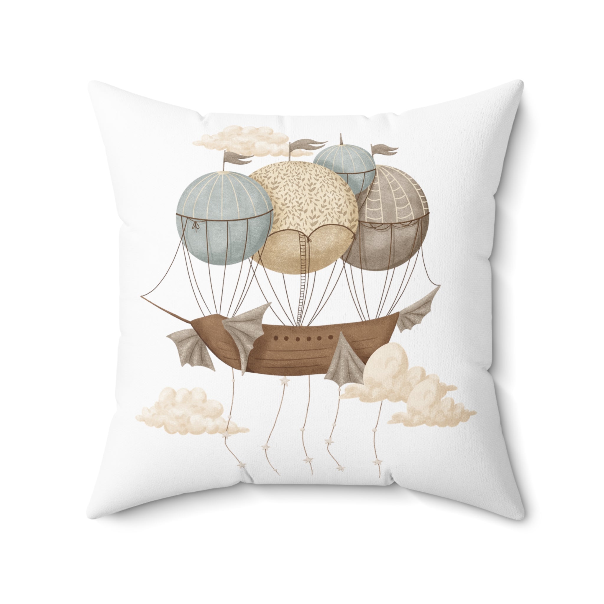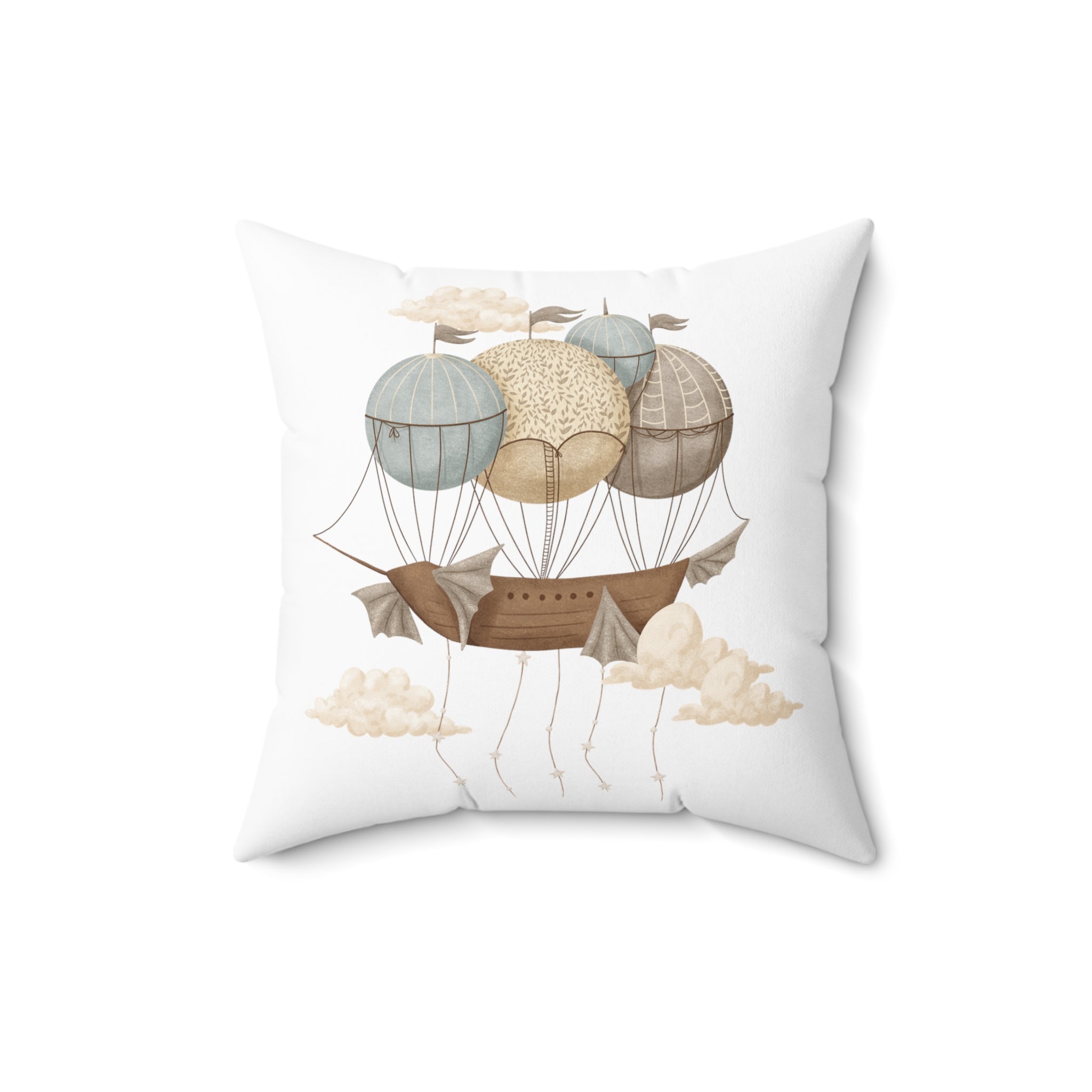 Spun Polyester Square Pillow with Removable Cover Watercolor Memories of Dreams Balloon Ship Whales