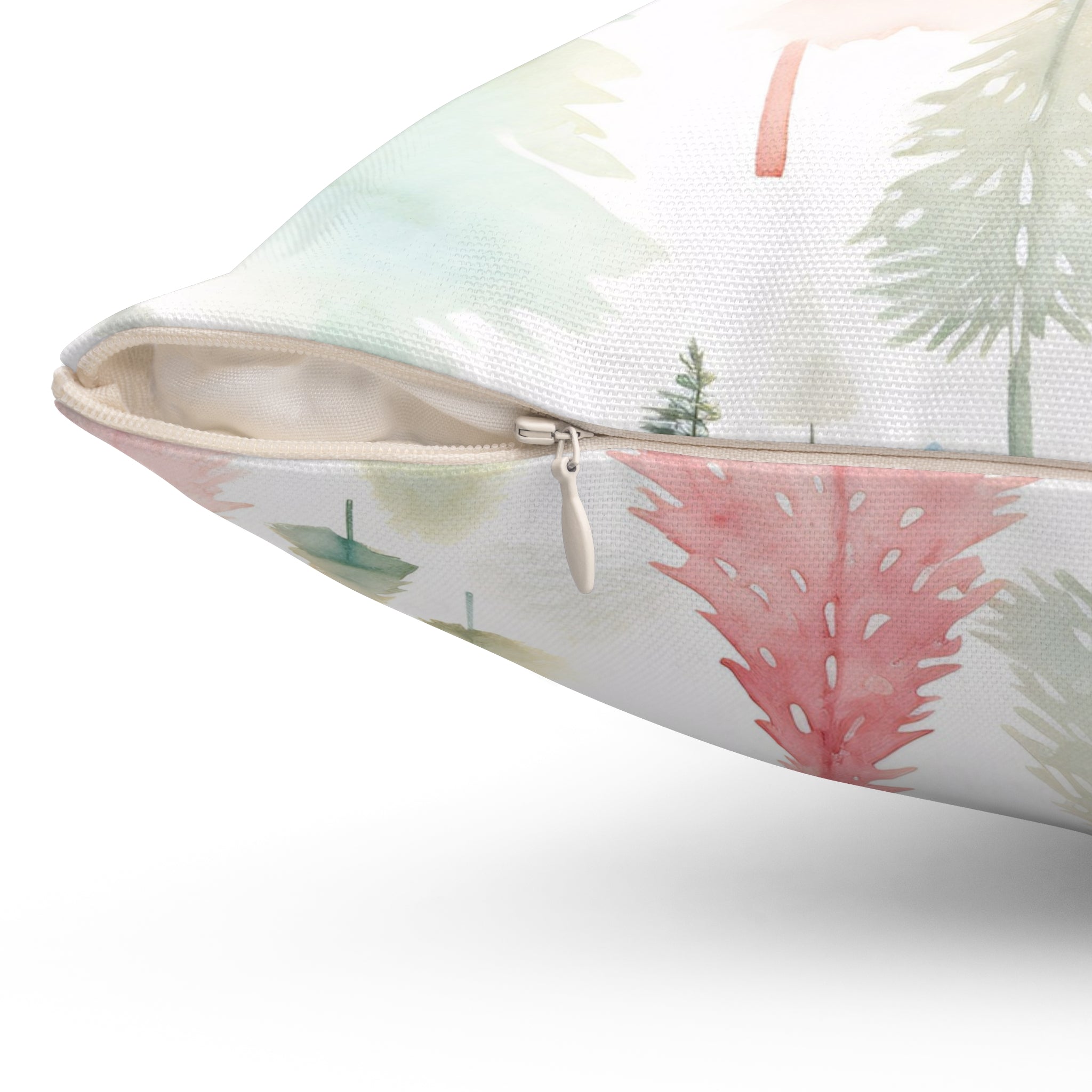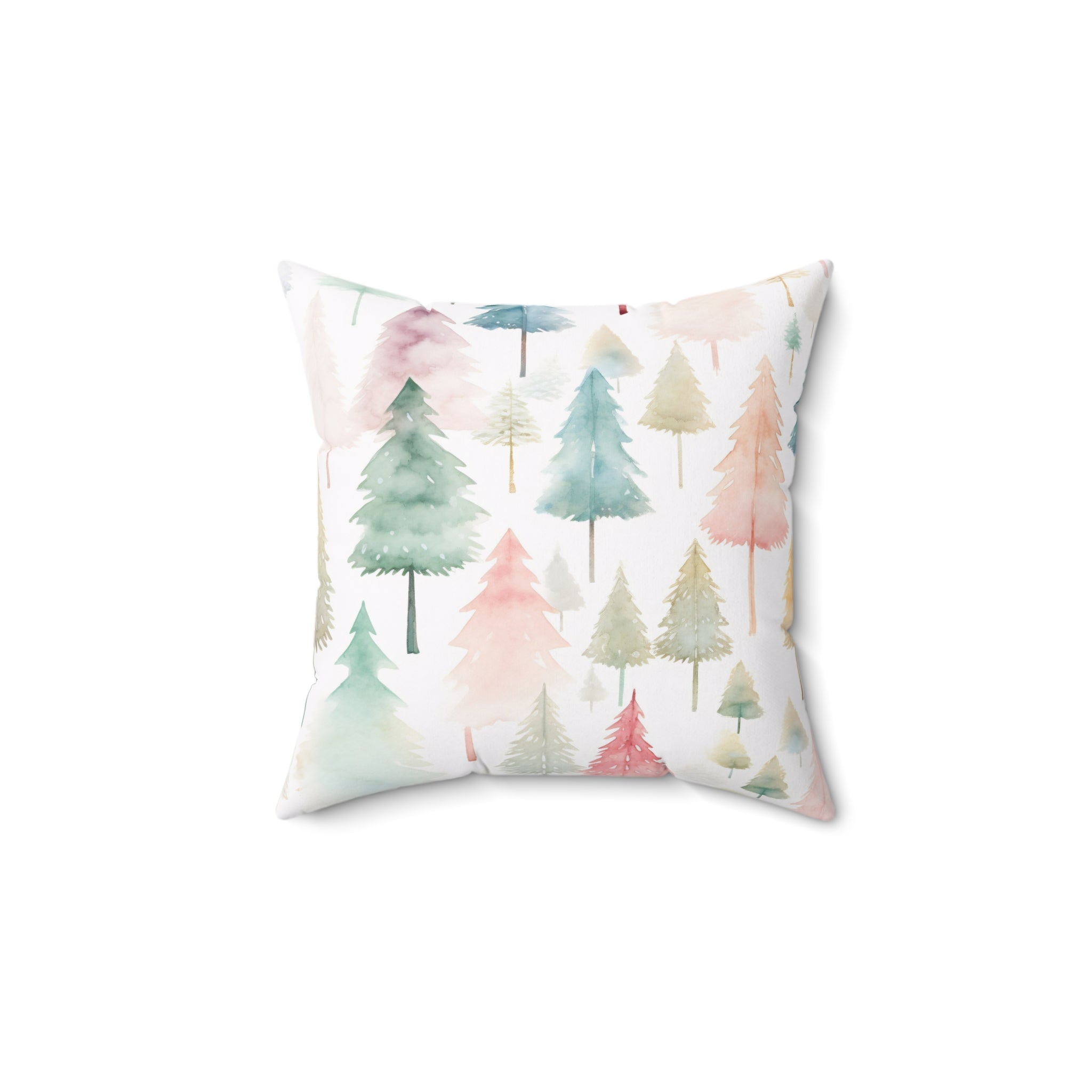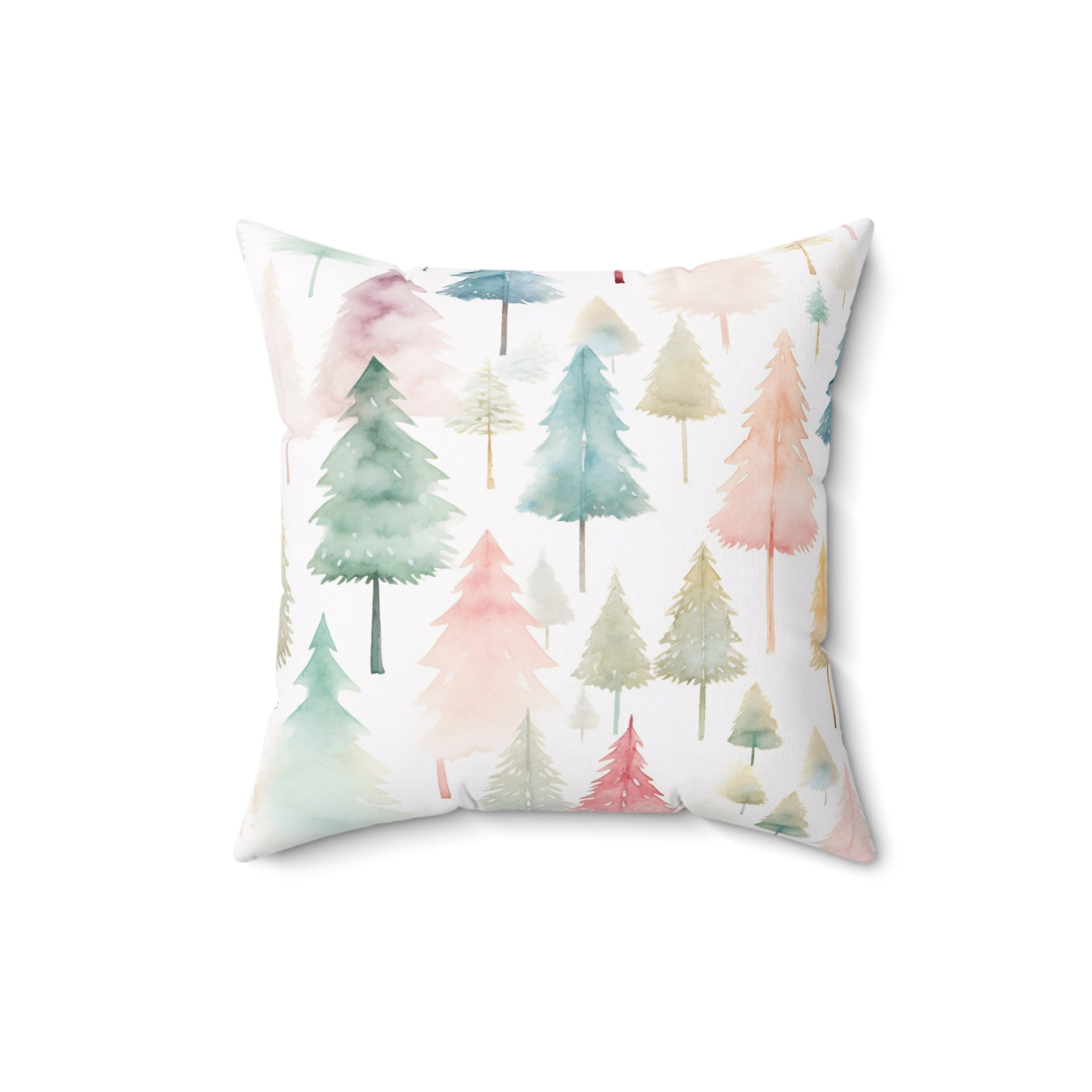 Spun Polyester Square Pillow with Removable Cover Watercolor Pastel Christmas Trees
