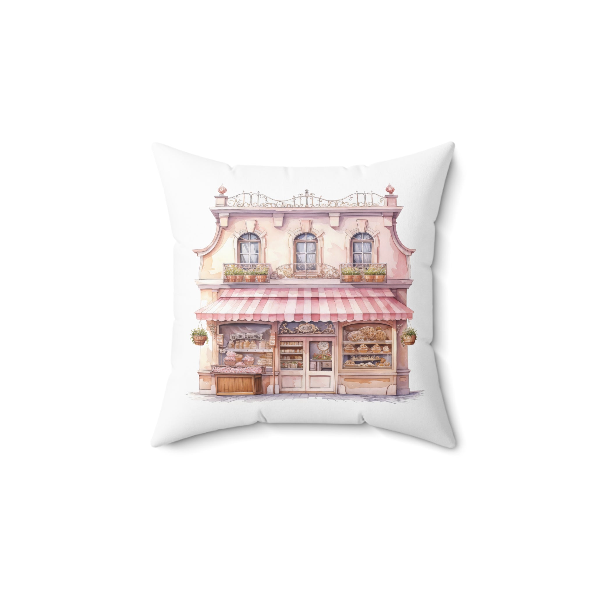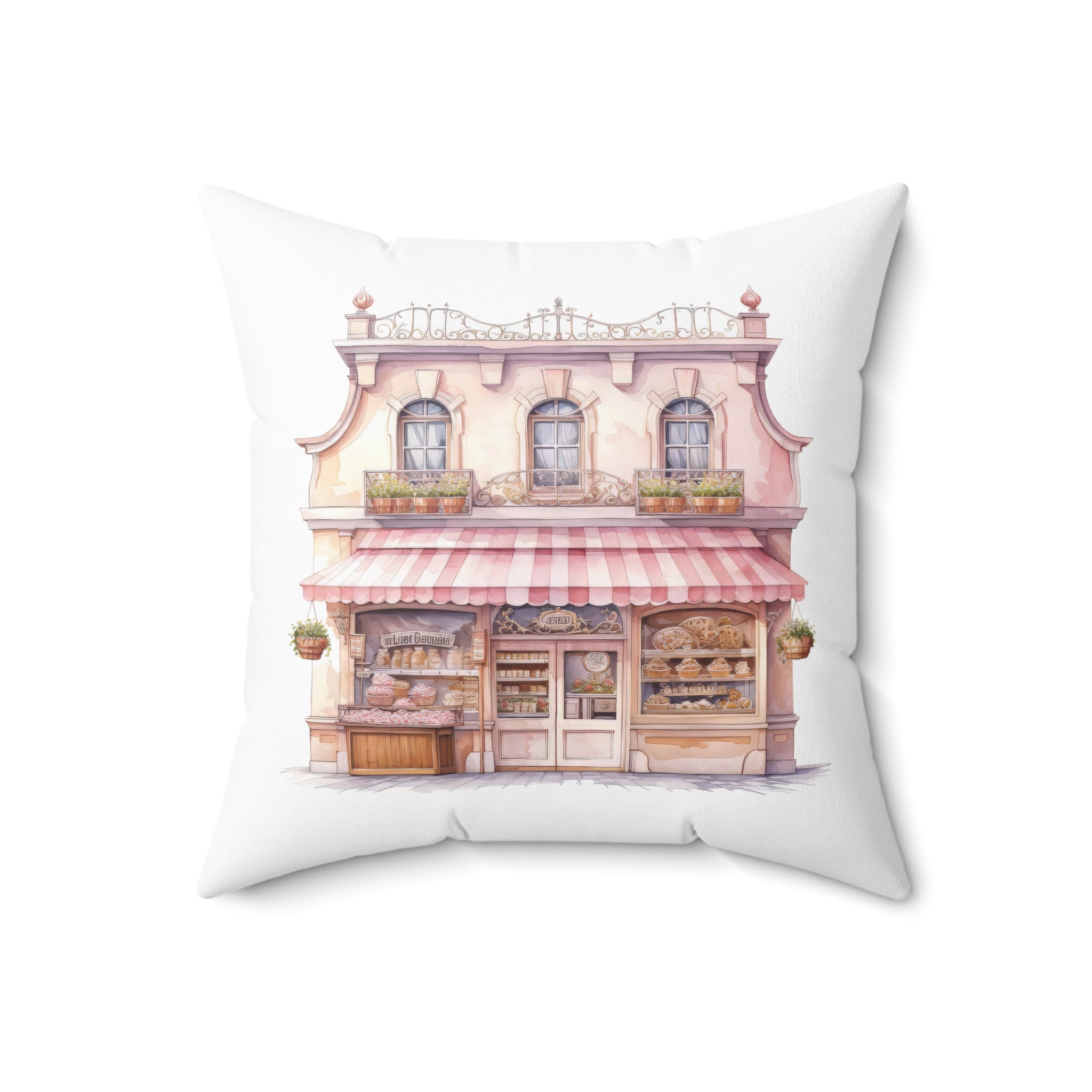 Spun Polyester Square Pillow with Removable Cover Watercolor Pink Paris Bicycle Blooms Paris Café