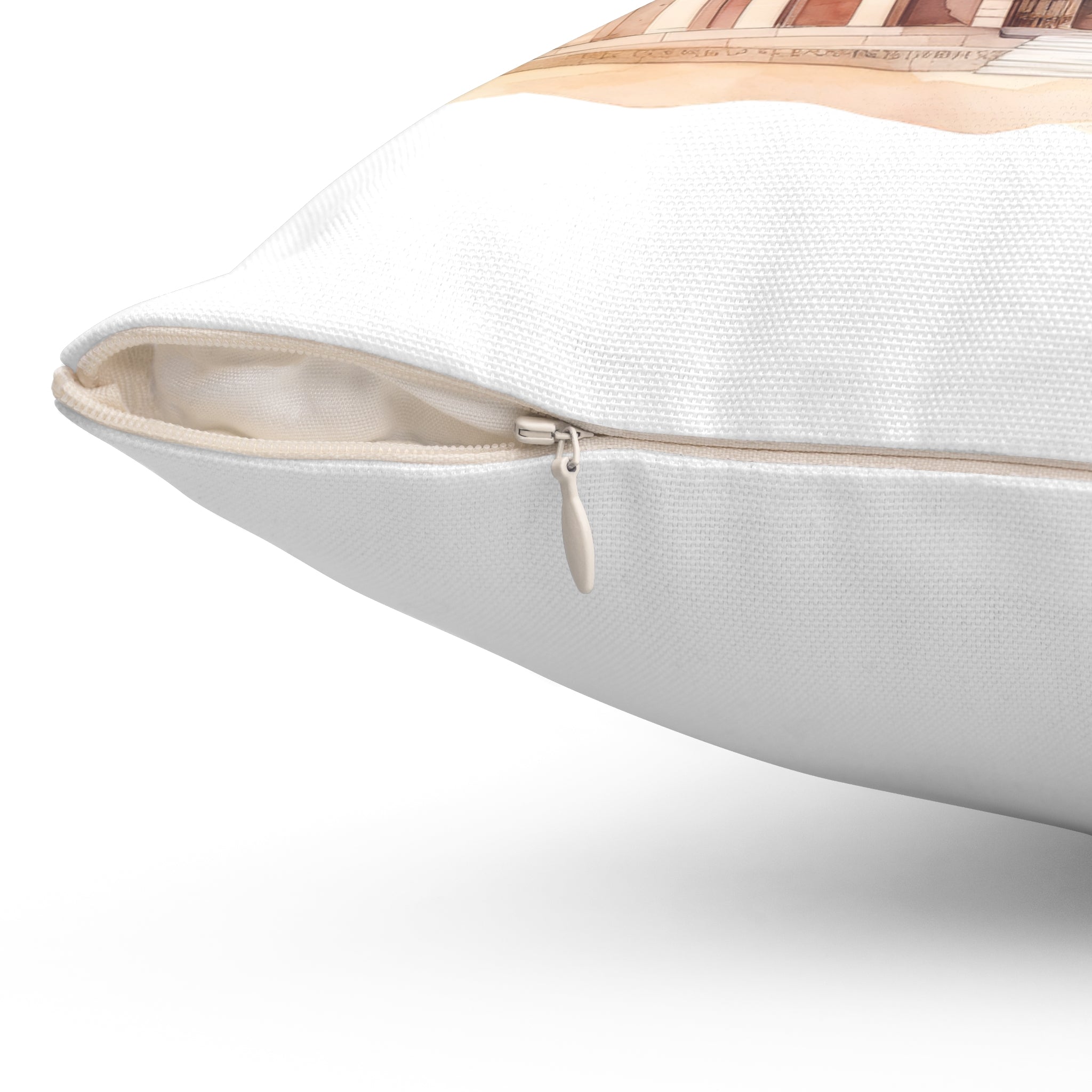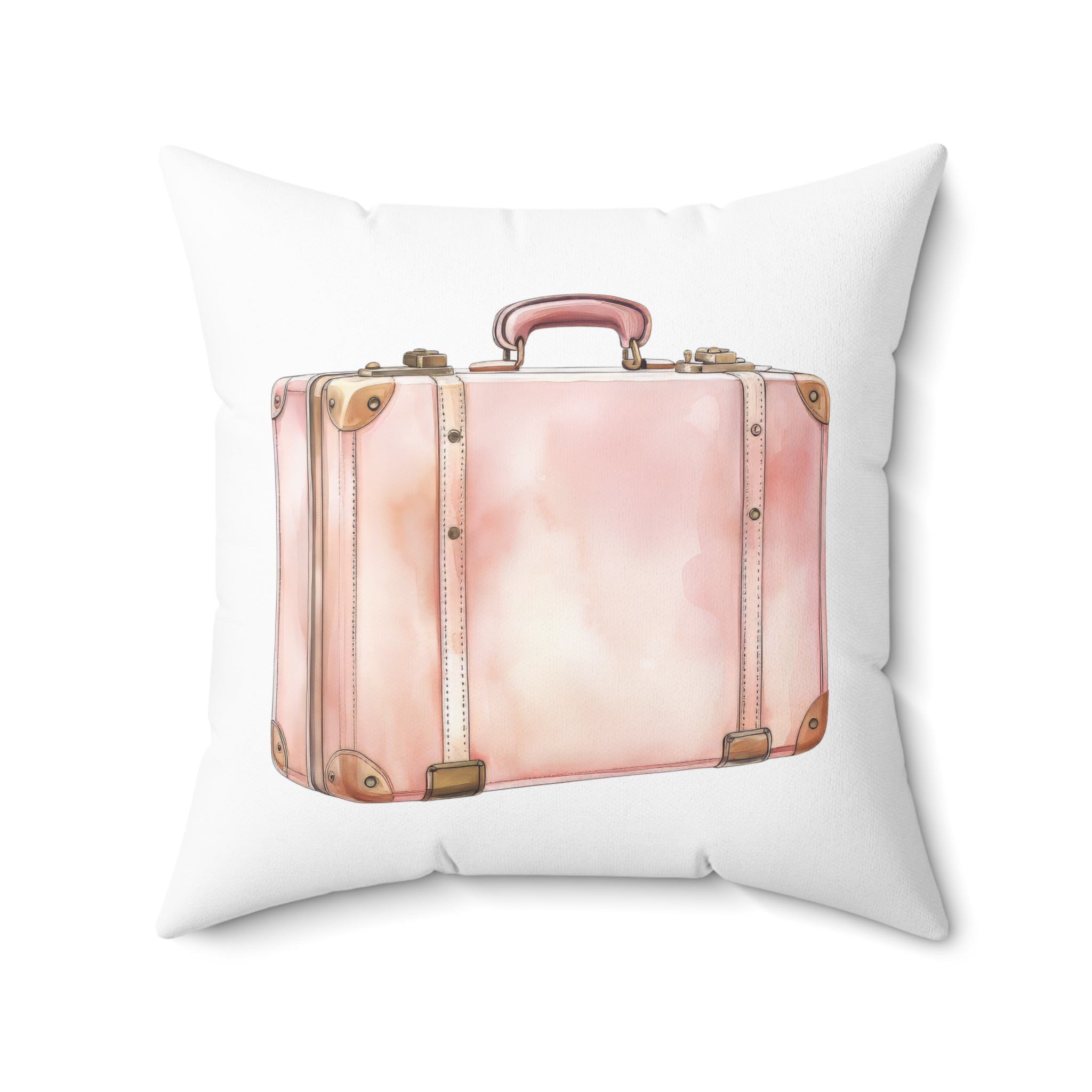 Spun Polyester Square Pillow with Removable Cover Watercolor Pink Paris Scene Luggage