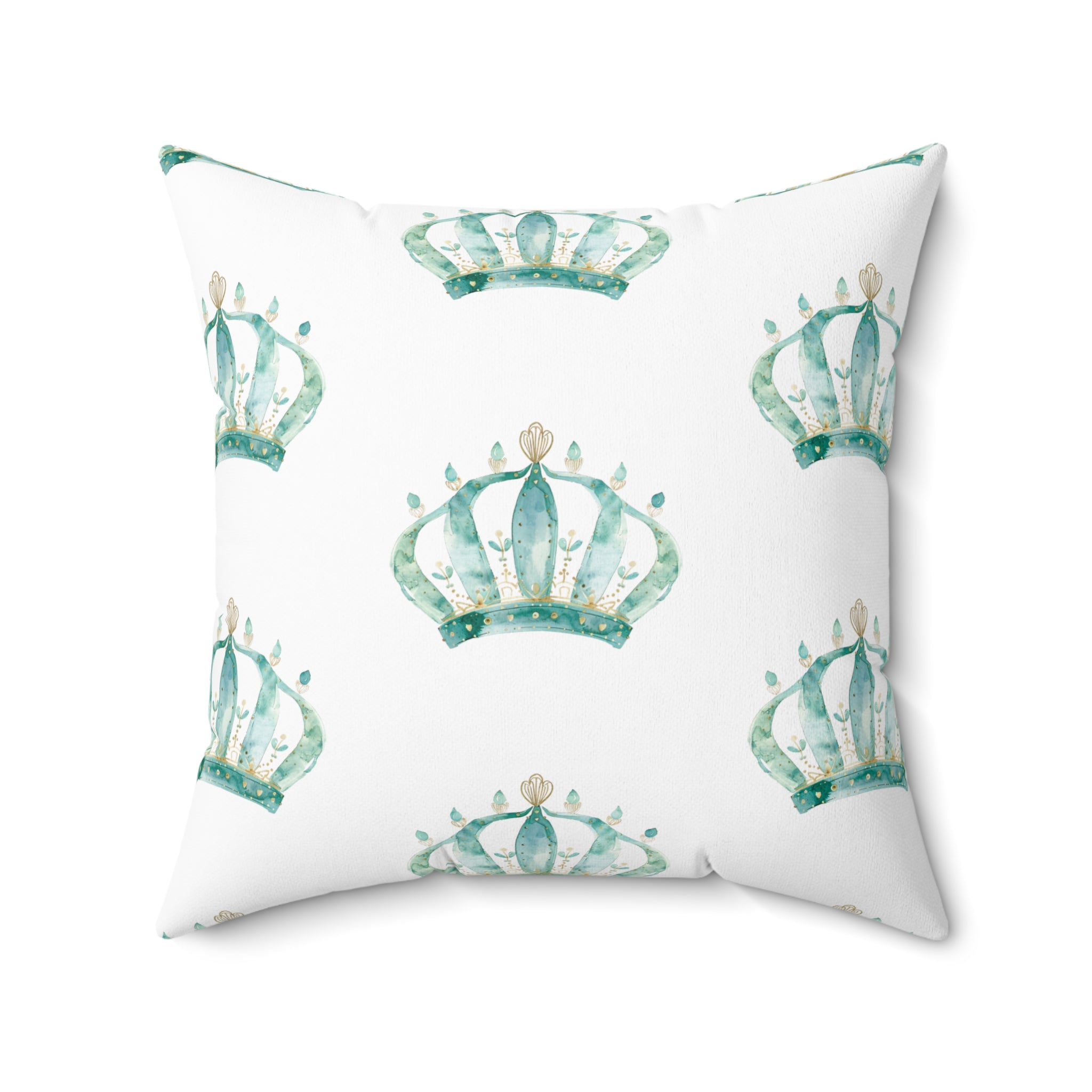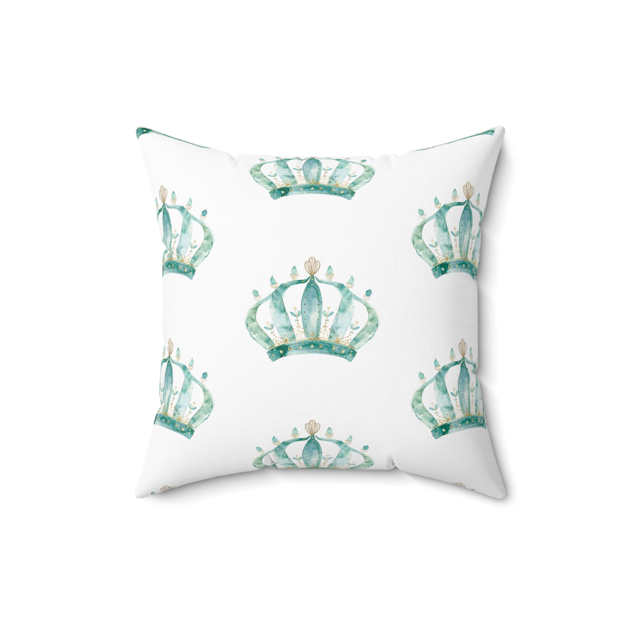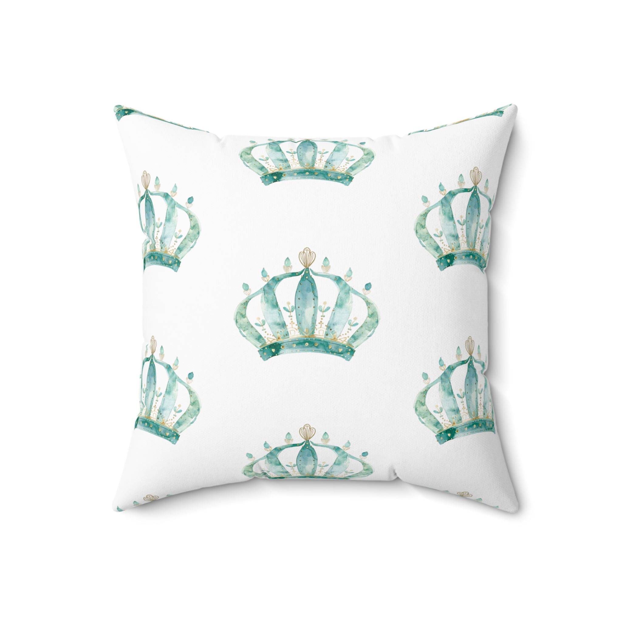 Spun Polyester Square Pillow with Removable Cover Watercolor Teal Princess Crown