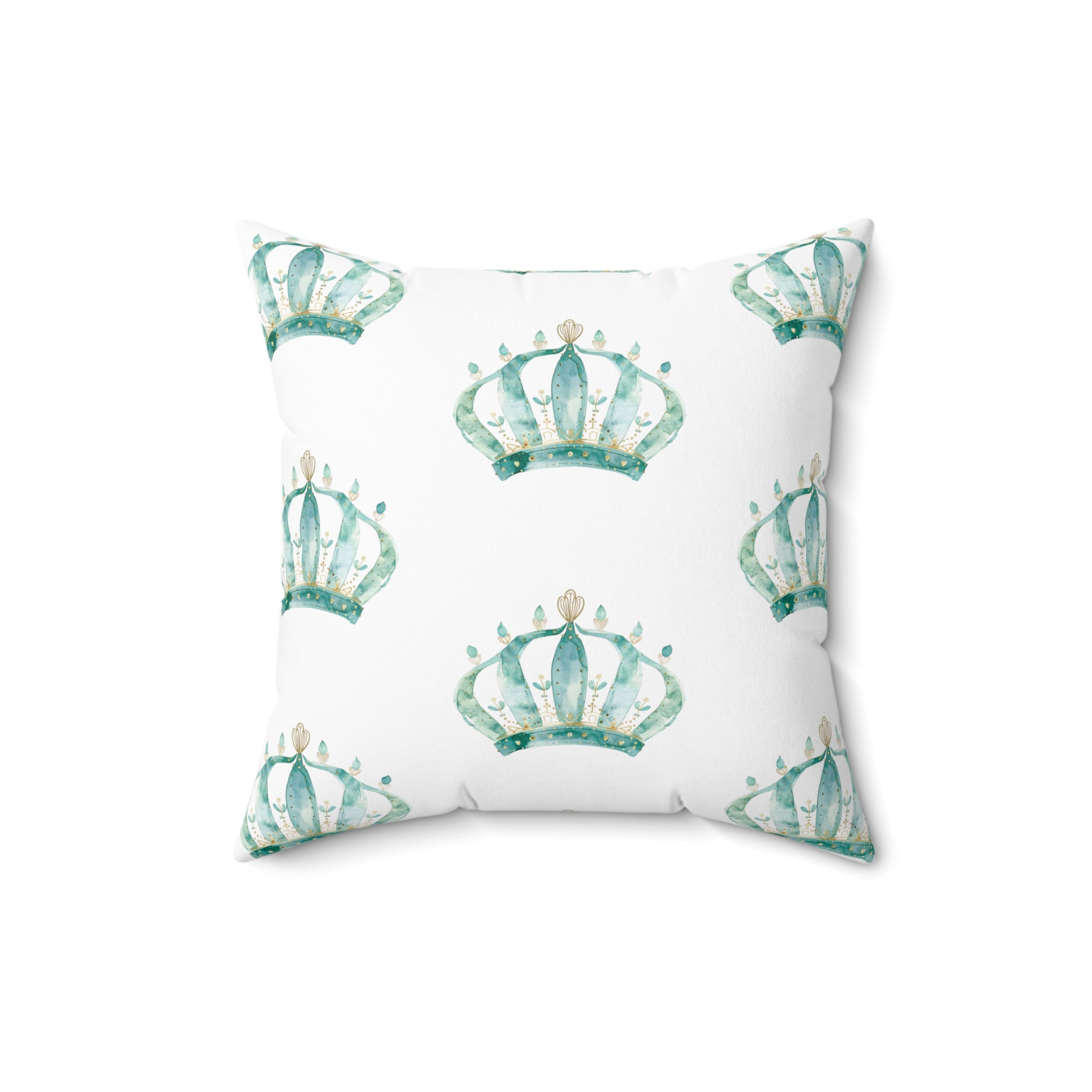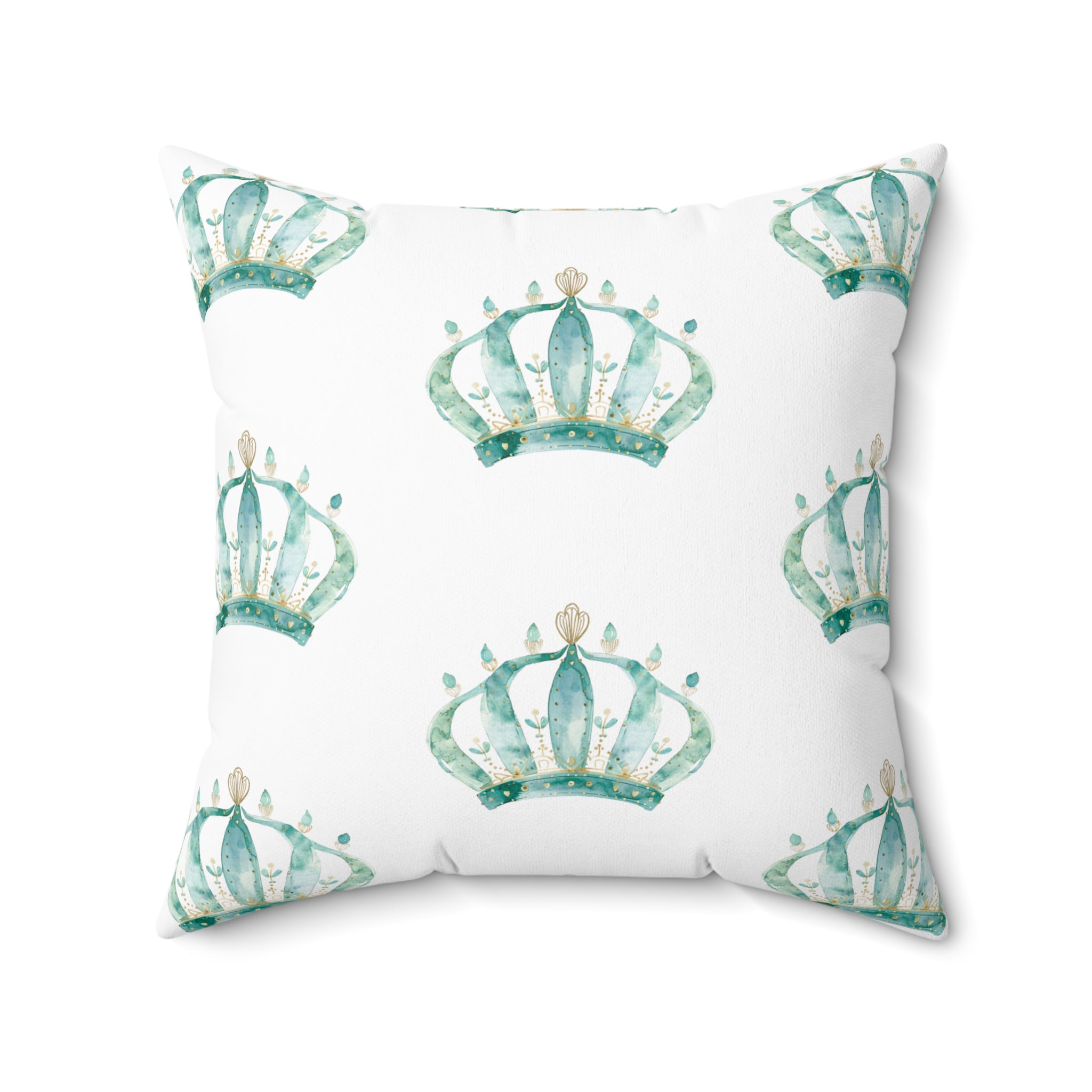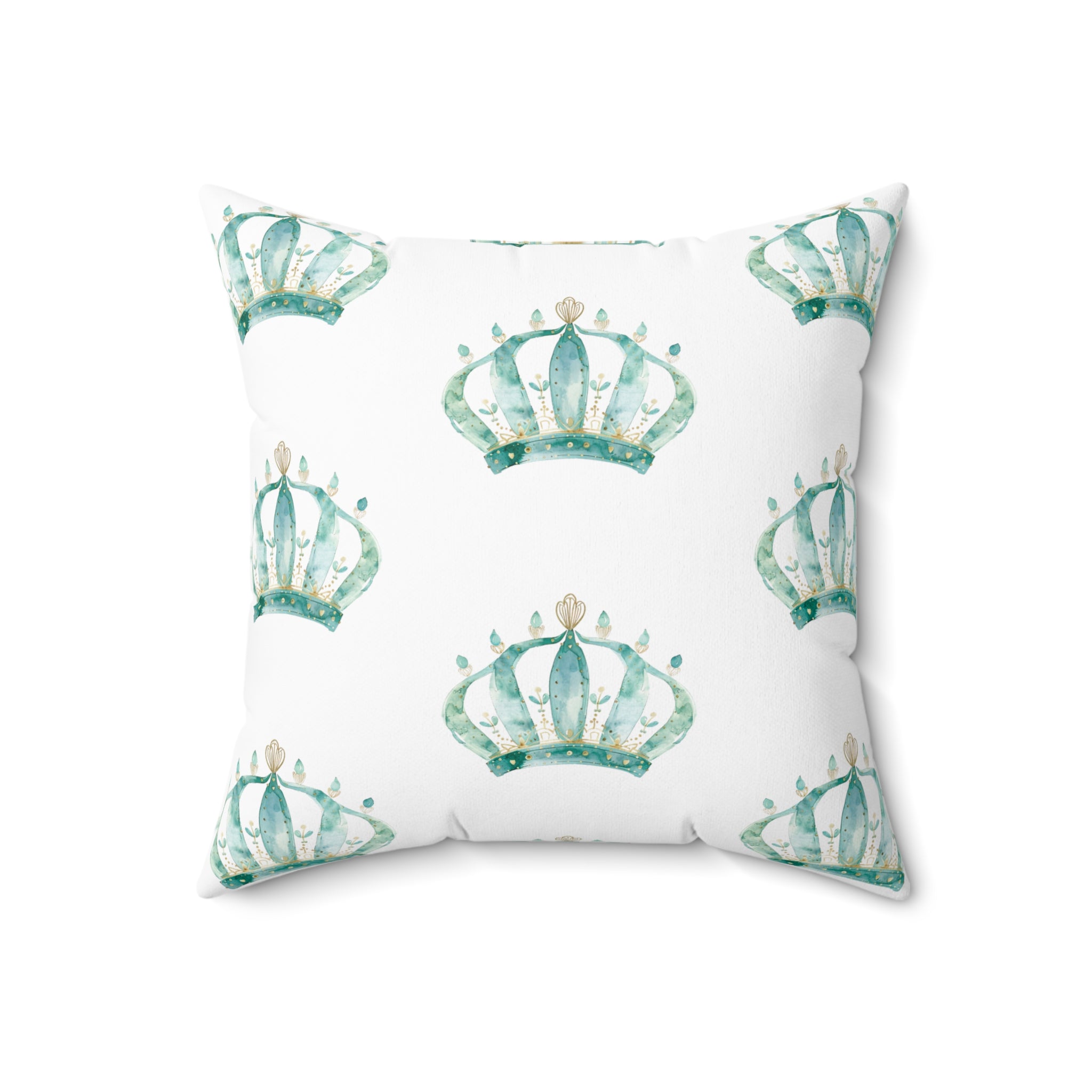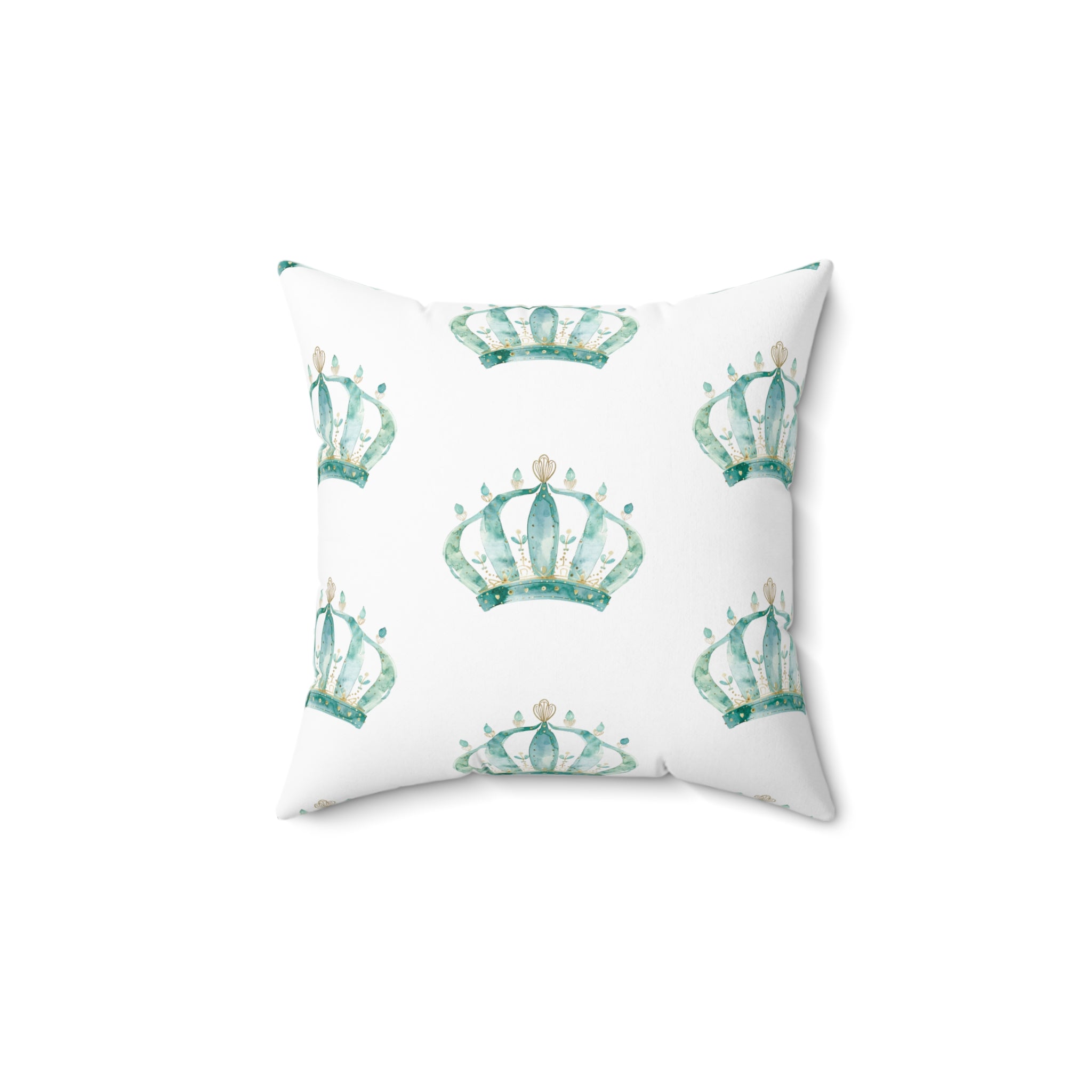 Spun Polyester Square Pillow with Removable Cover Watercolor Teal Princess Crown