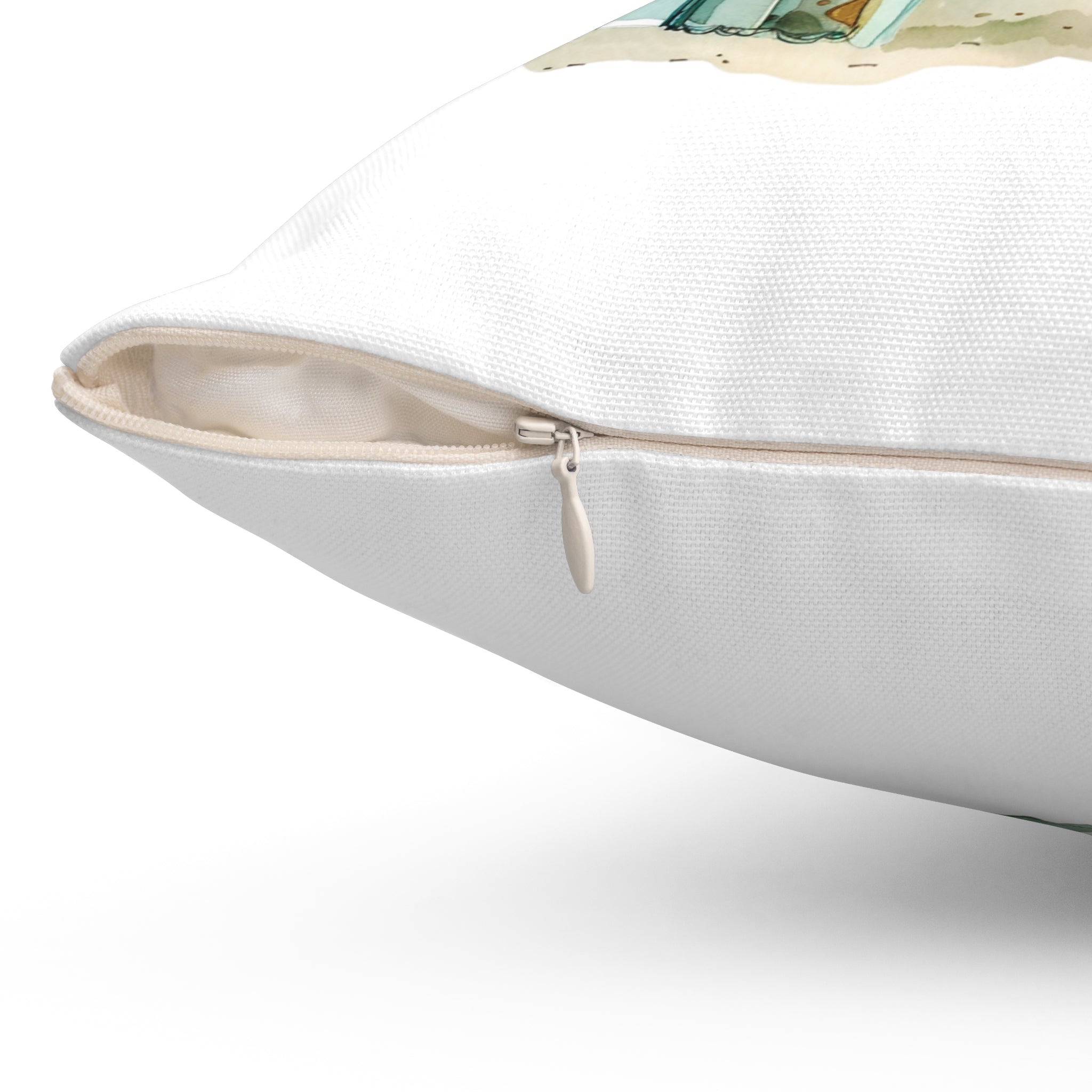 Spun Polyester Square Pillow with Removable Cover Watercolor Teal Princess Tent Crown