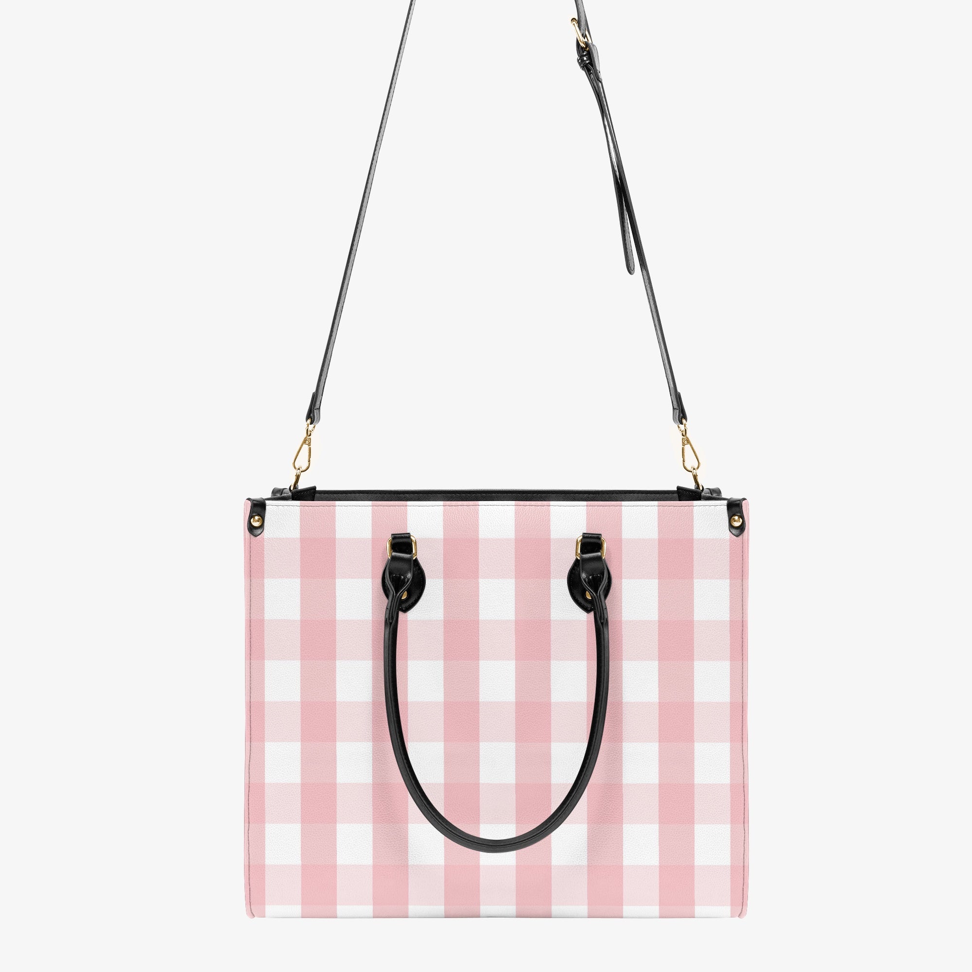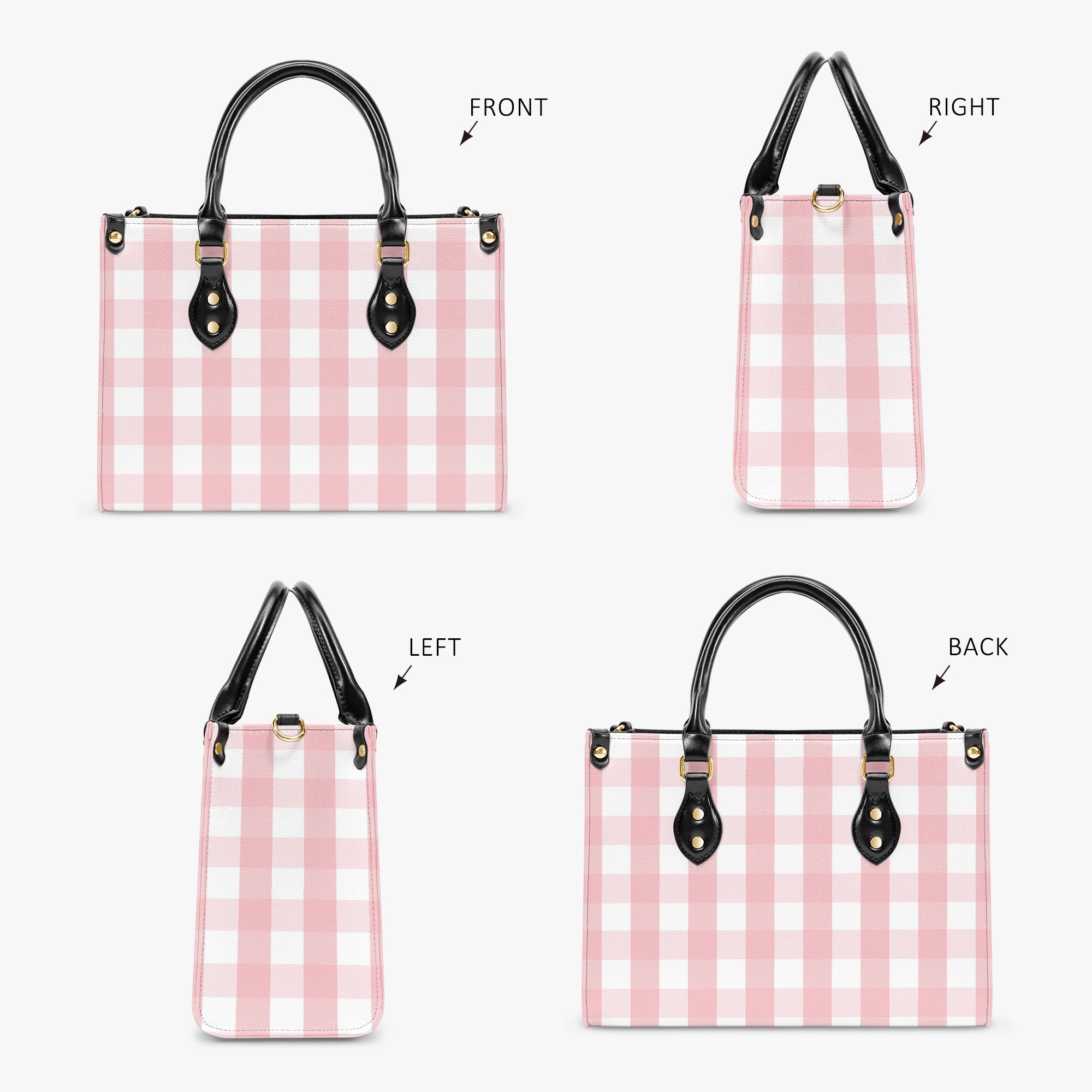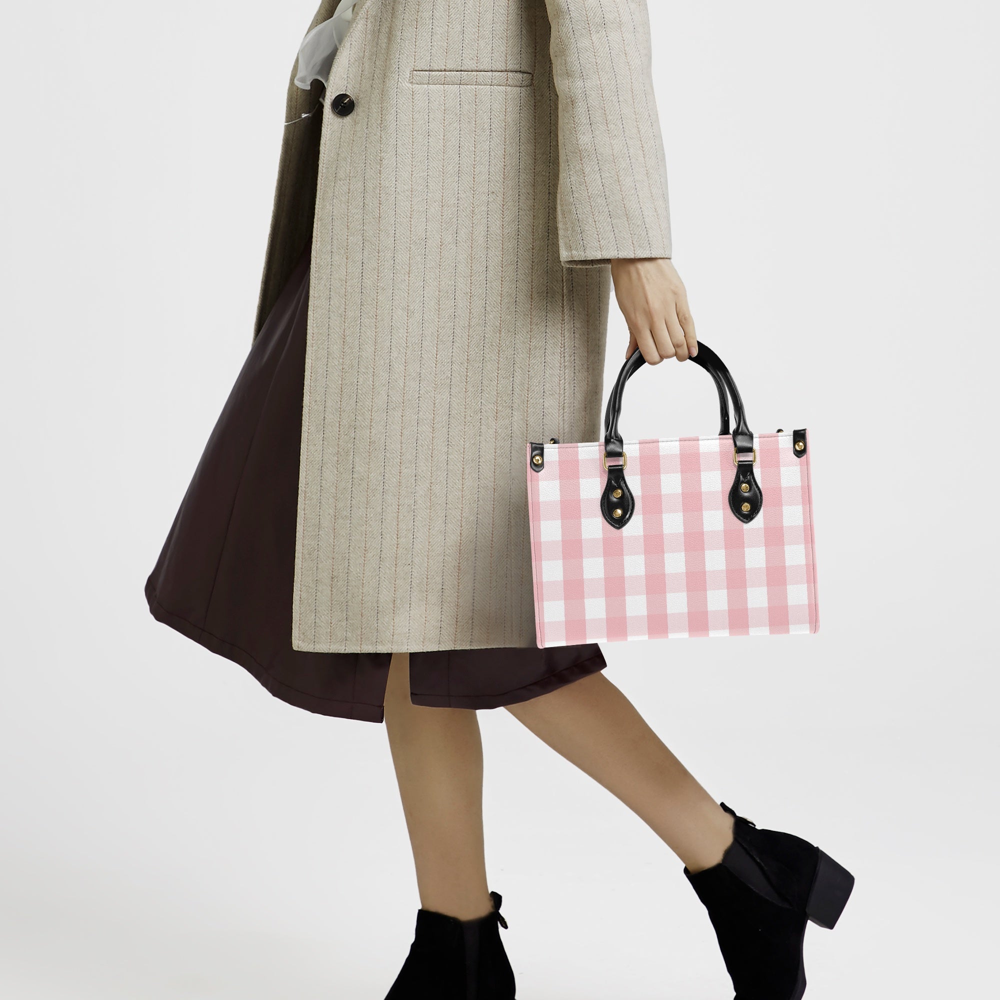 Elevate your collection with this refined Structured Handbag in Easter Gingham Pink, made from premium PU leather for a soft yet durable finish. Its timeless, streamlined design complements any ensemble, transitioning effortlessly from casual to formal settings. Featuring a secure top zipper and a roomy interior, it accommodates all your essentials with ease. Available in two sizes—Small (11.4" L x 5.1" D x 8.3" H) and Medium (13.7" L x 5.8" D x 11.2" H)—this handbag combines elegance and practicality for everyday sophistication.