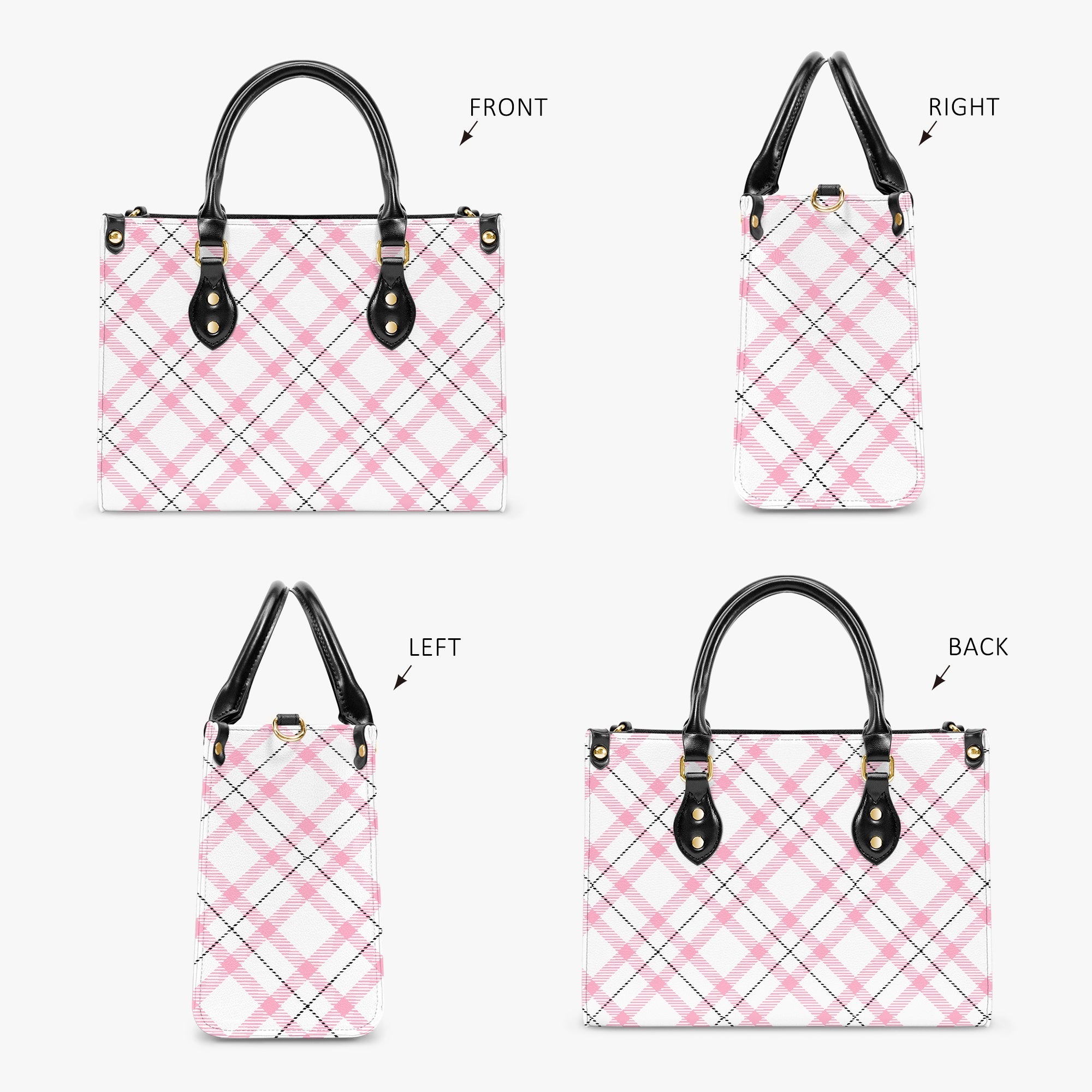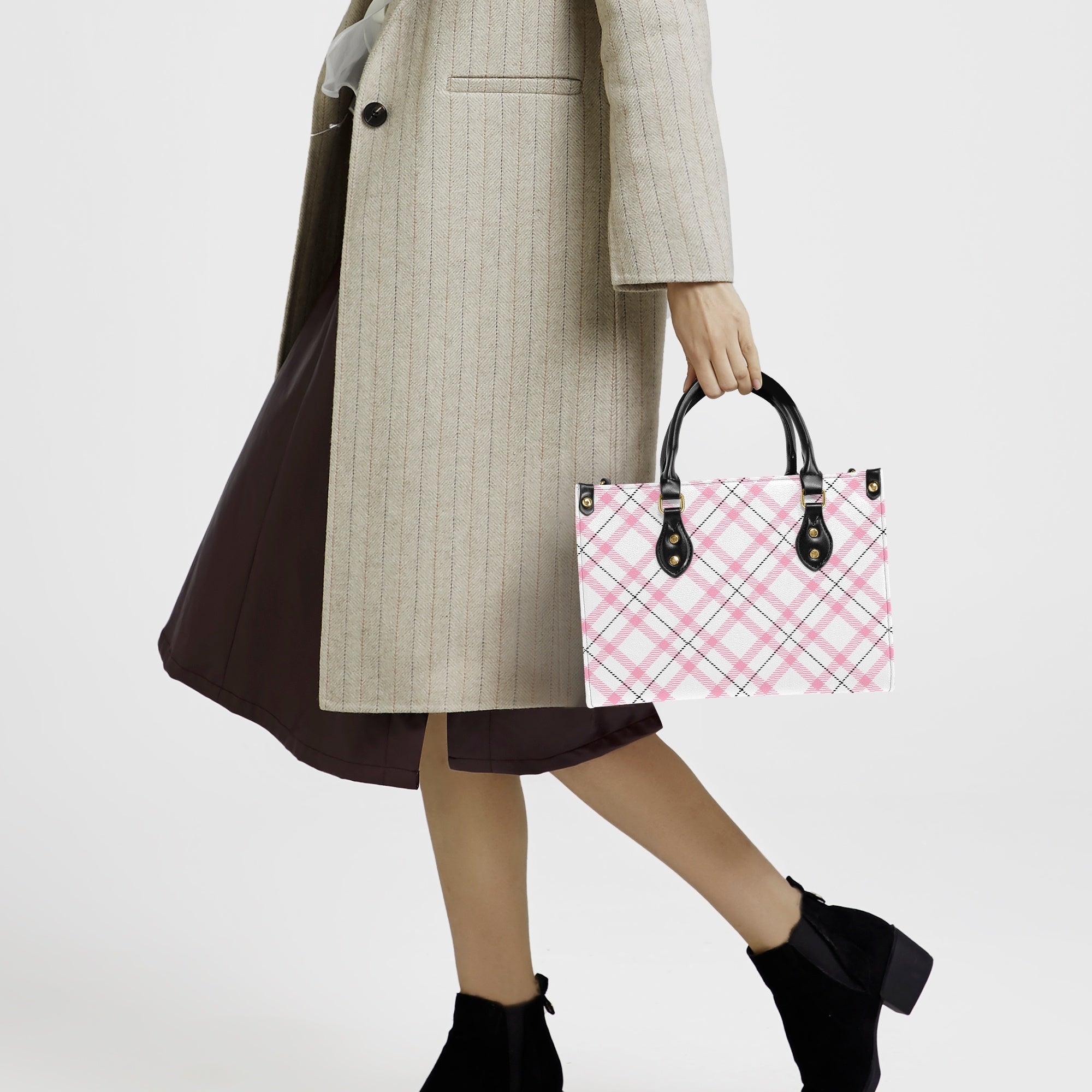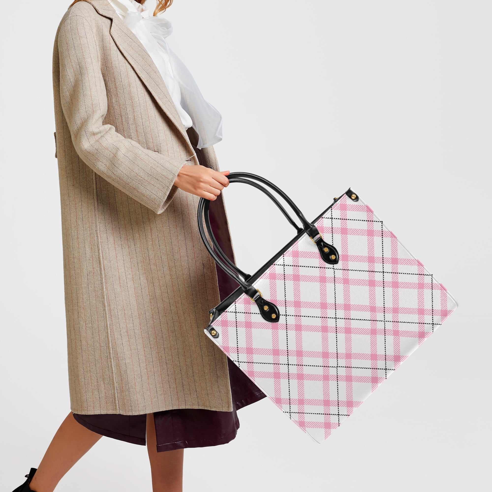 Elegant Classic Tote for Women Pink Plaid