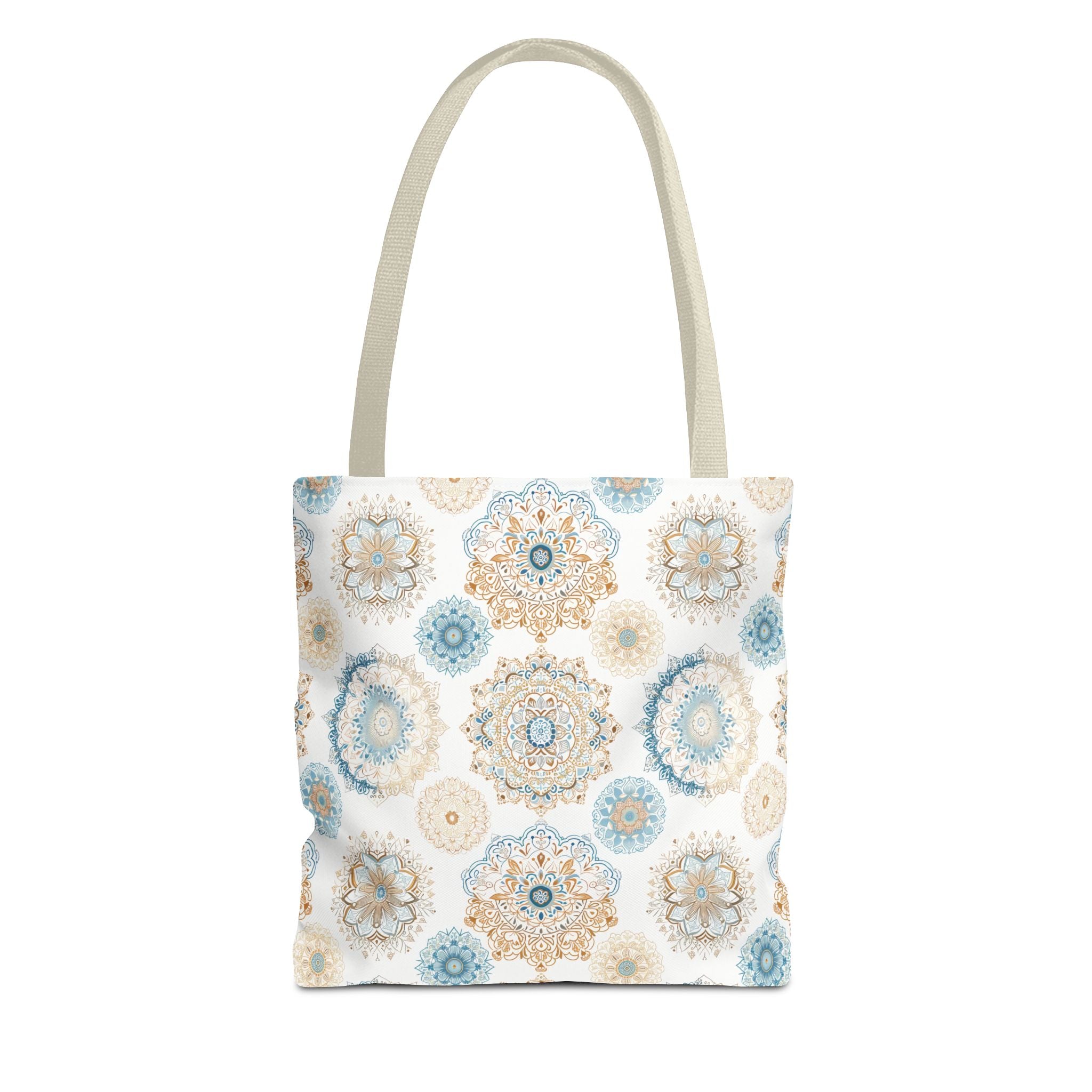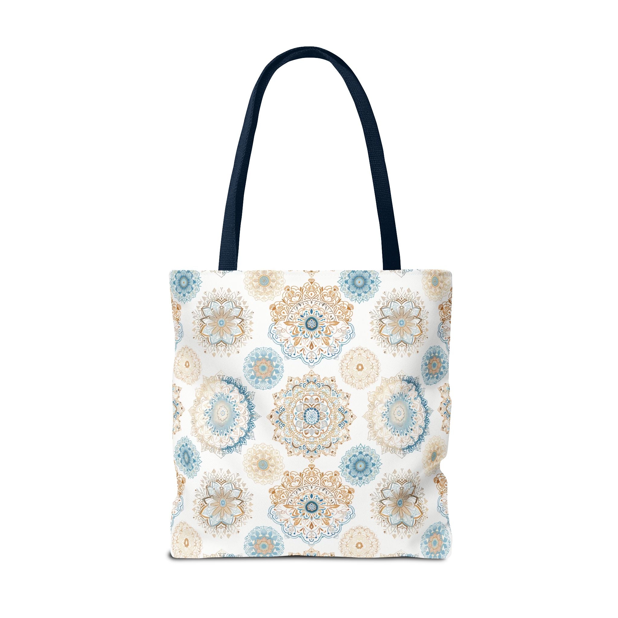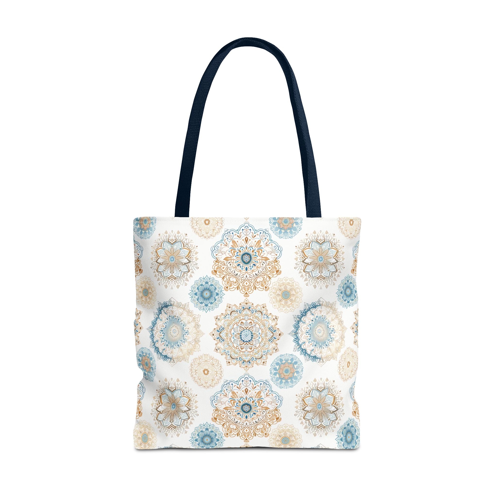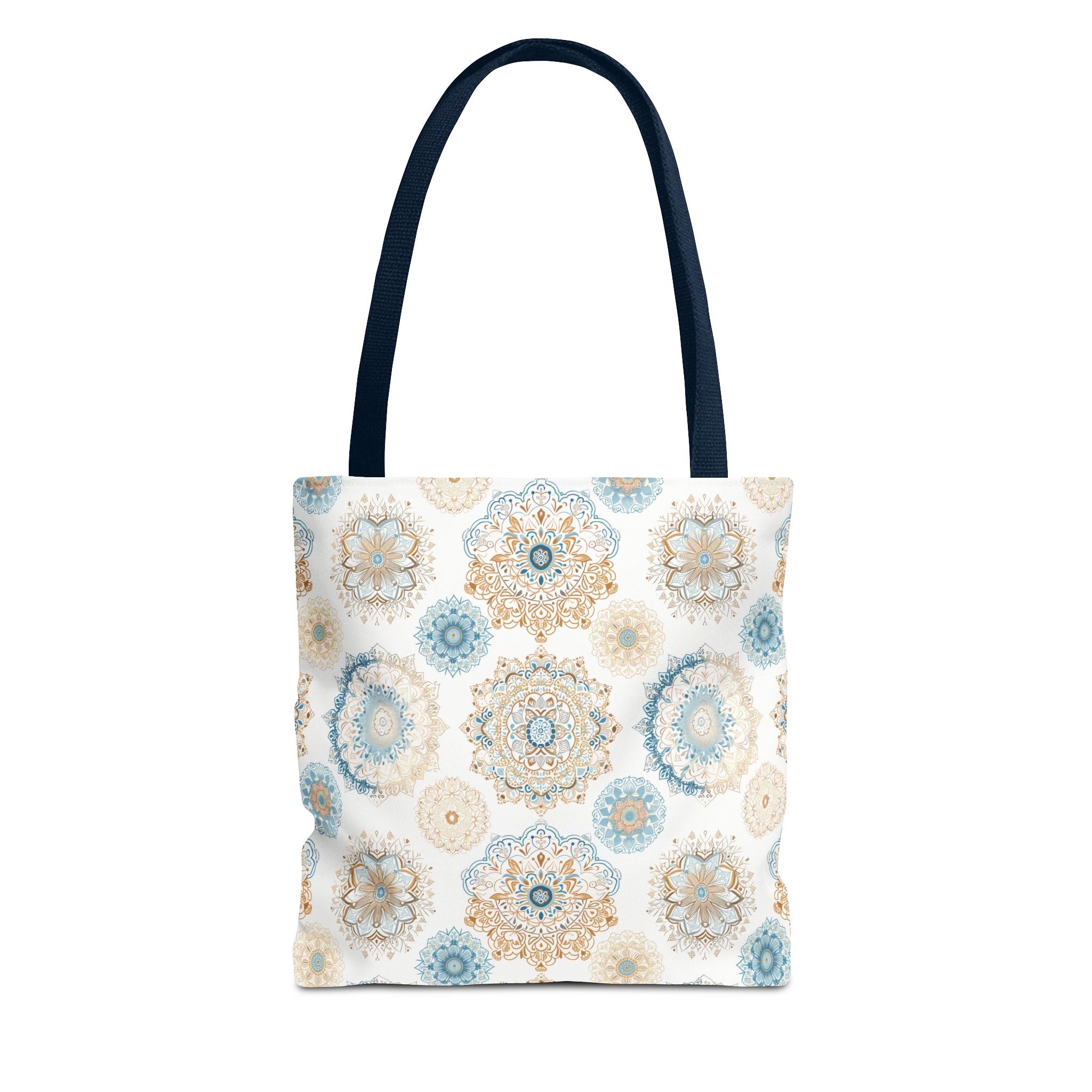 Available in 3 sizes to add both functionality and style, these custom-printed tote bags come with multiple handle colors to match your designs. Made with spun polyester, these bags feature double-stitched seams, cotton webbing straps, and nonwoven laminate lining for high-end durability. Your all-over print is created with dye sublimation for high-end visuals.