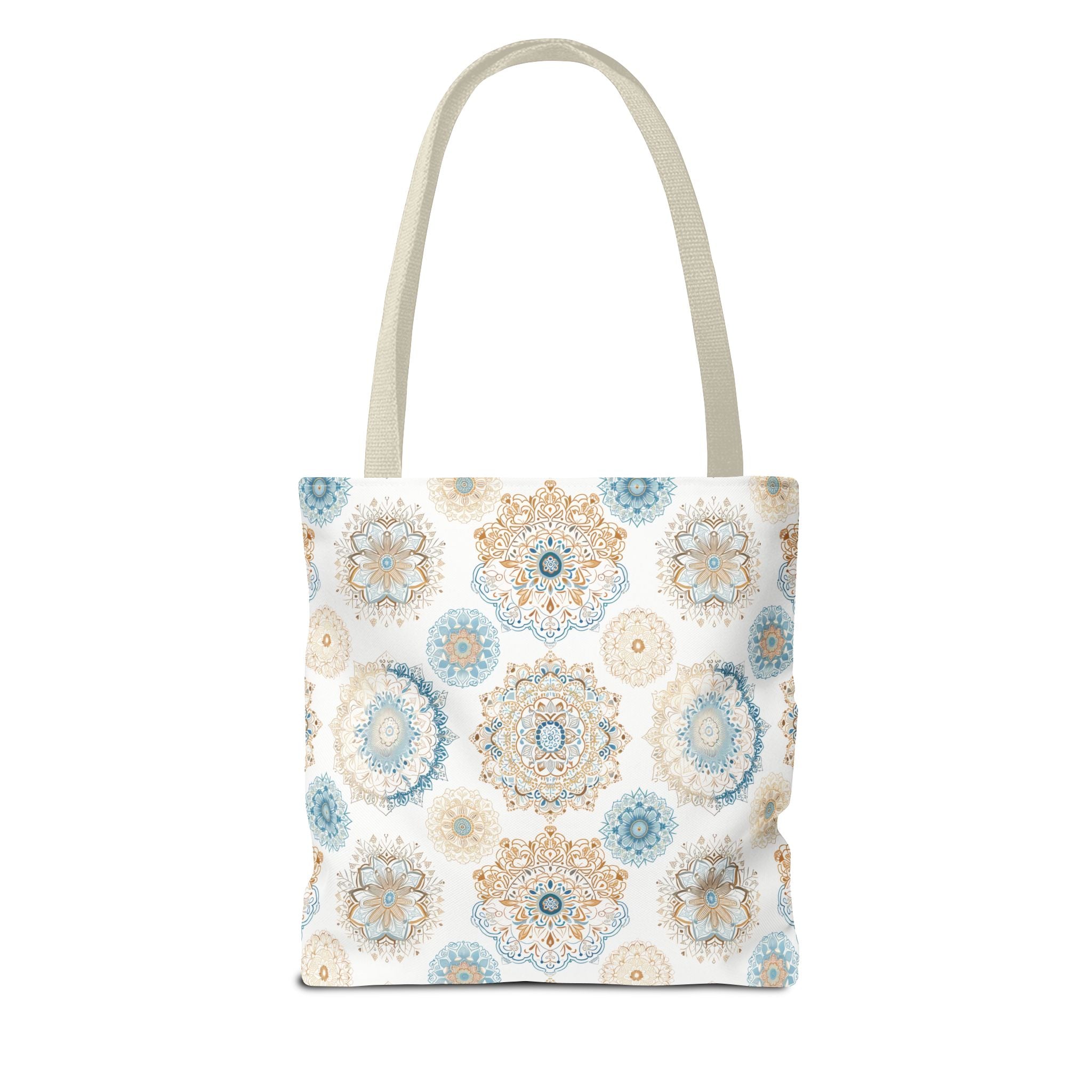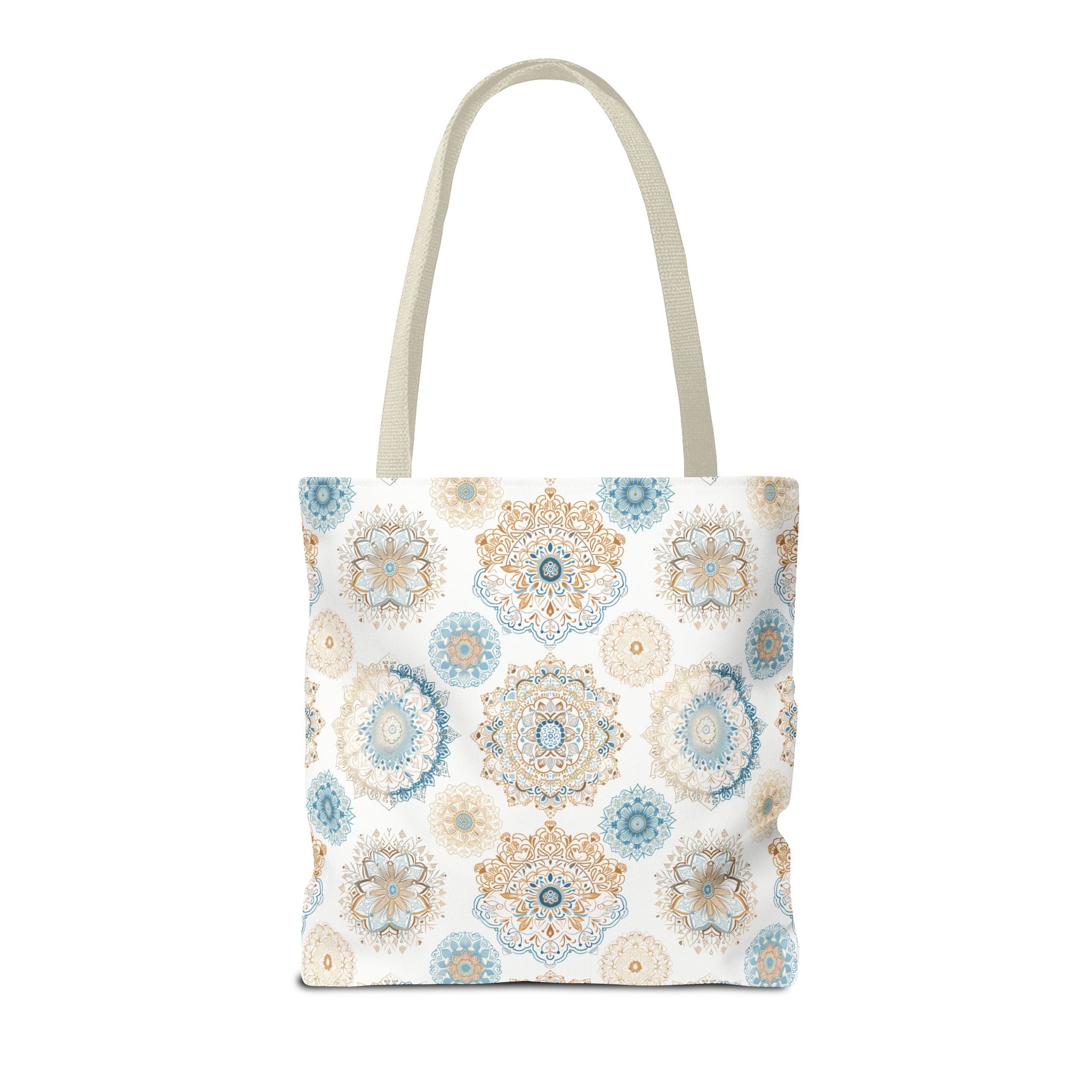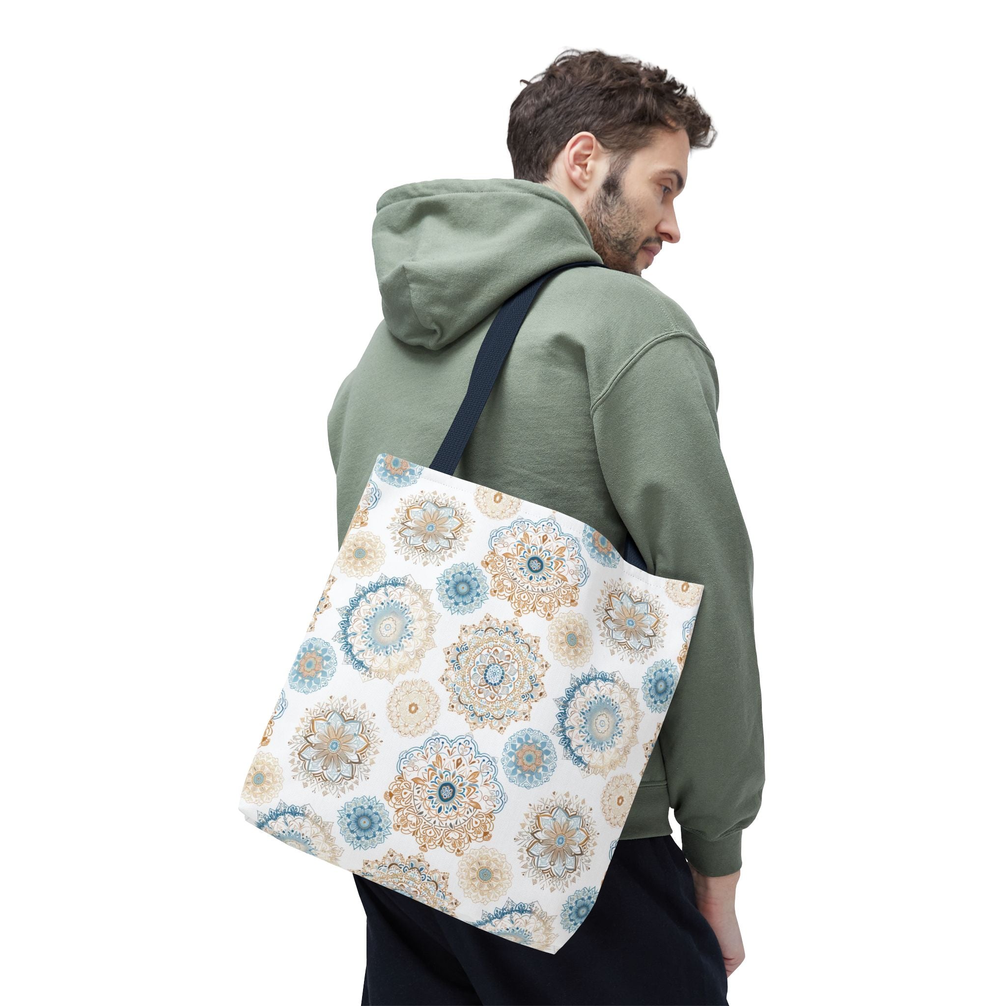 Available in 3 sizes to add both functionality and style, these custom-printed tote bags come with multiple handle colors to match your designs. Made with spun polyester, these bags feature double-stitched seams, cotton webbing straps, and nonwoven laminate lining for high-end durability. Your all-over print is created with dye sublimation for high-end visuals.