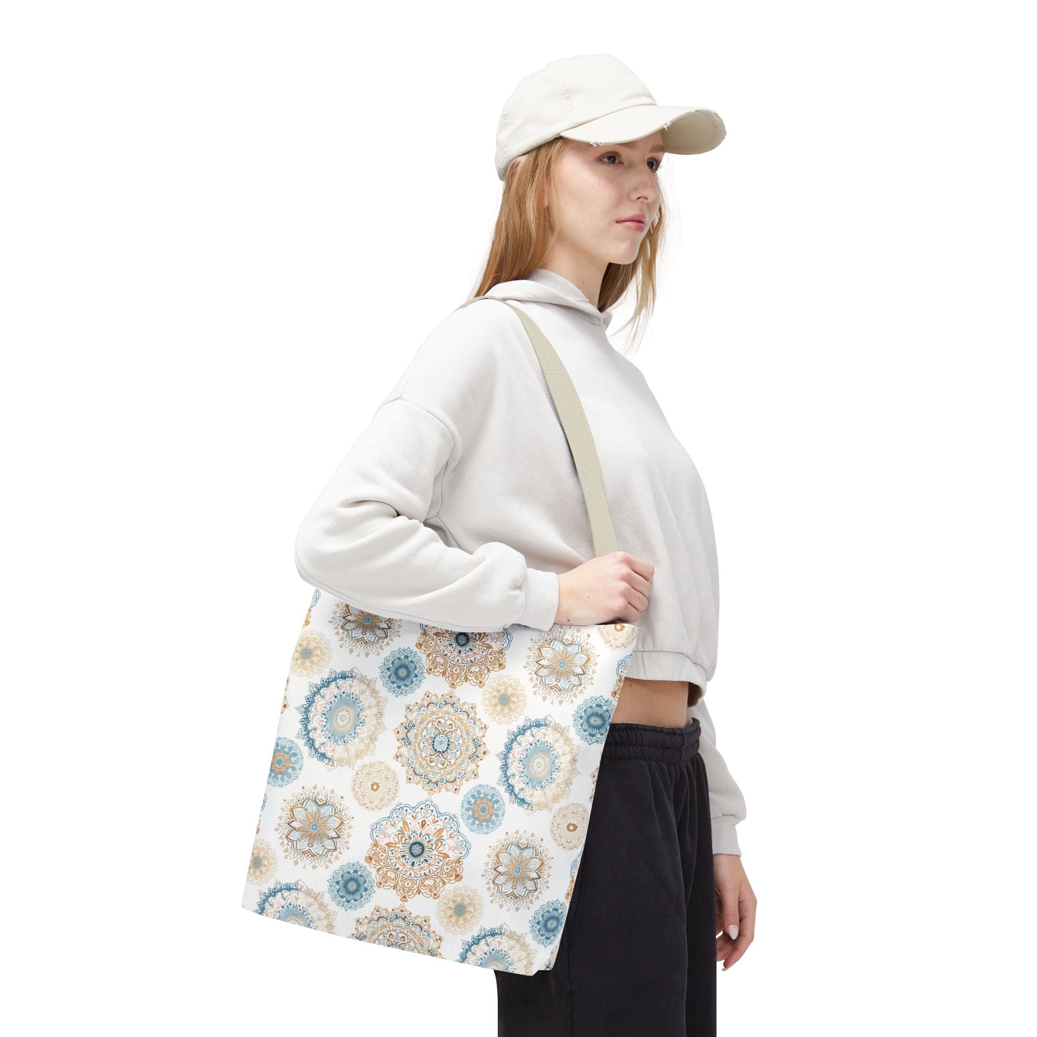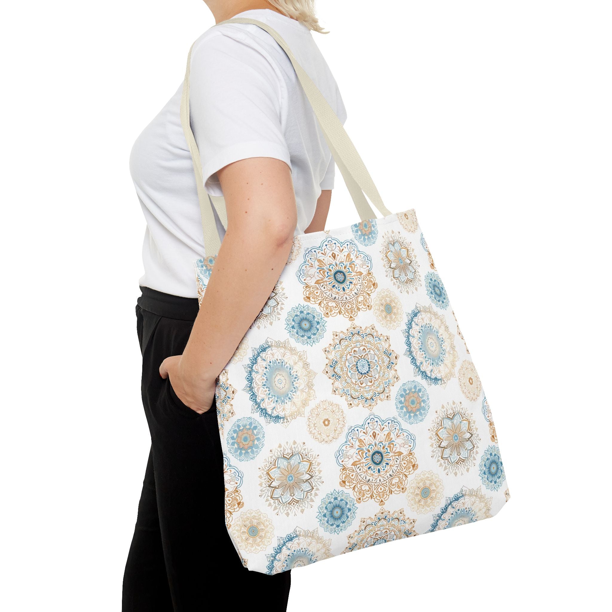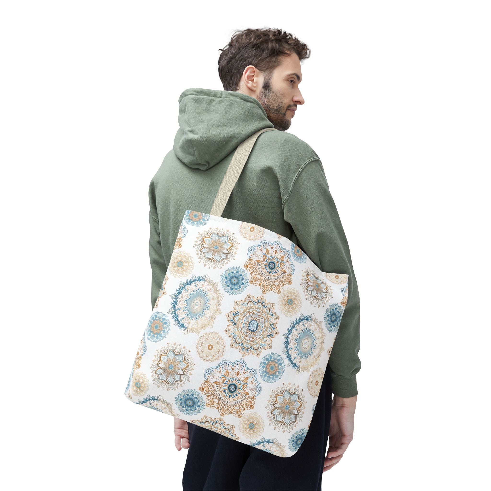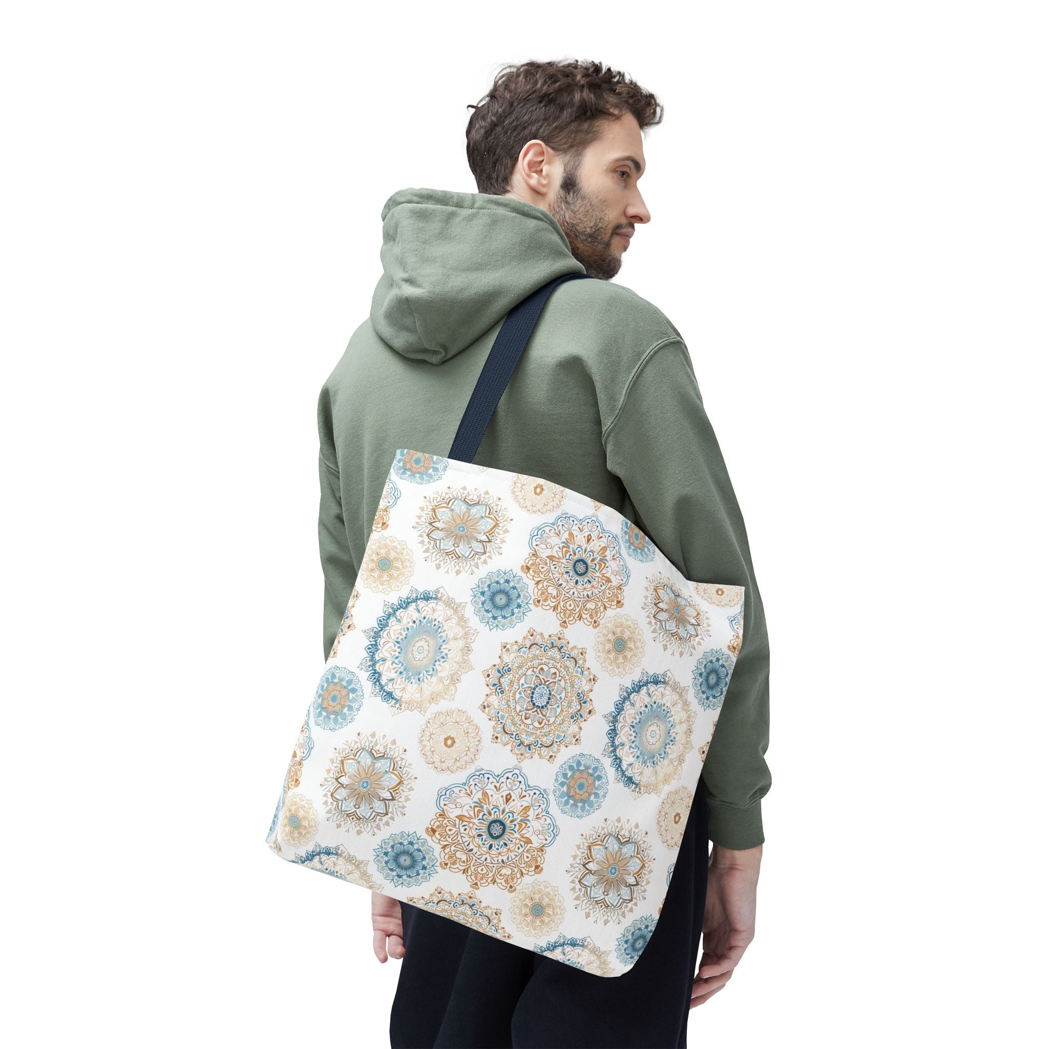 Available in 3 sizes to add both functionality and style, these custom-printed tote bags come with multiple handle colors to match your designs. Made with spun polyester, these bags feature double-stitched seams, cotton webbing straps, and nonwoven laminate lining for high-end durability. Your all-over print is created with dye sublimation for high-end visuals.