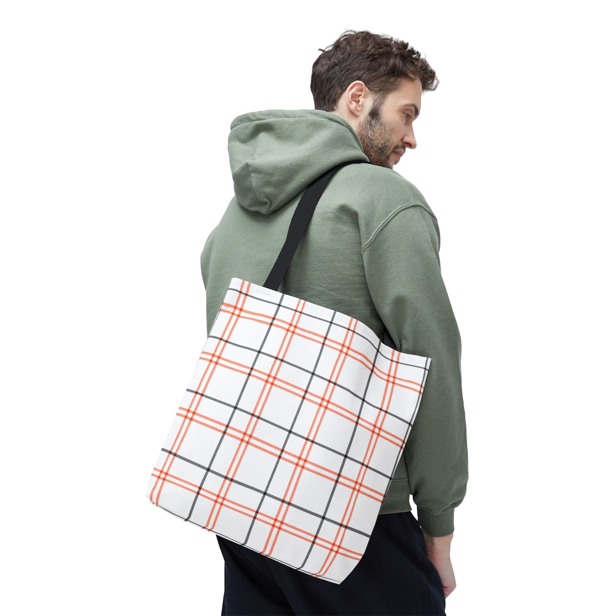 Tote Bag- Fall Tartan Plaid. This tote bag exudes a cozy fall vibe with its tartan plaid design, perfect for carrying essentials on brisk autumn outings. Ideal for those who love fall fashion and want a stylish accessory to match the season. Perfect for holiday shopping, pumpkin patch visits, and Thanksgiving gatherings.